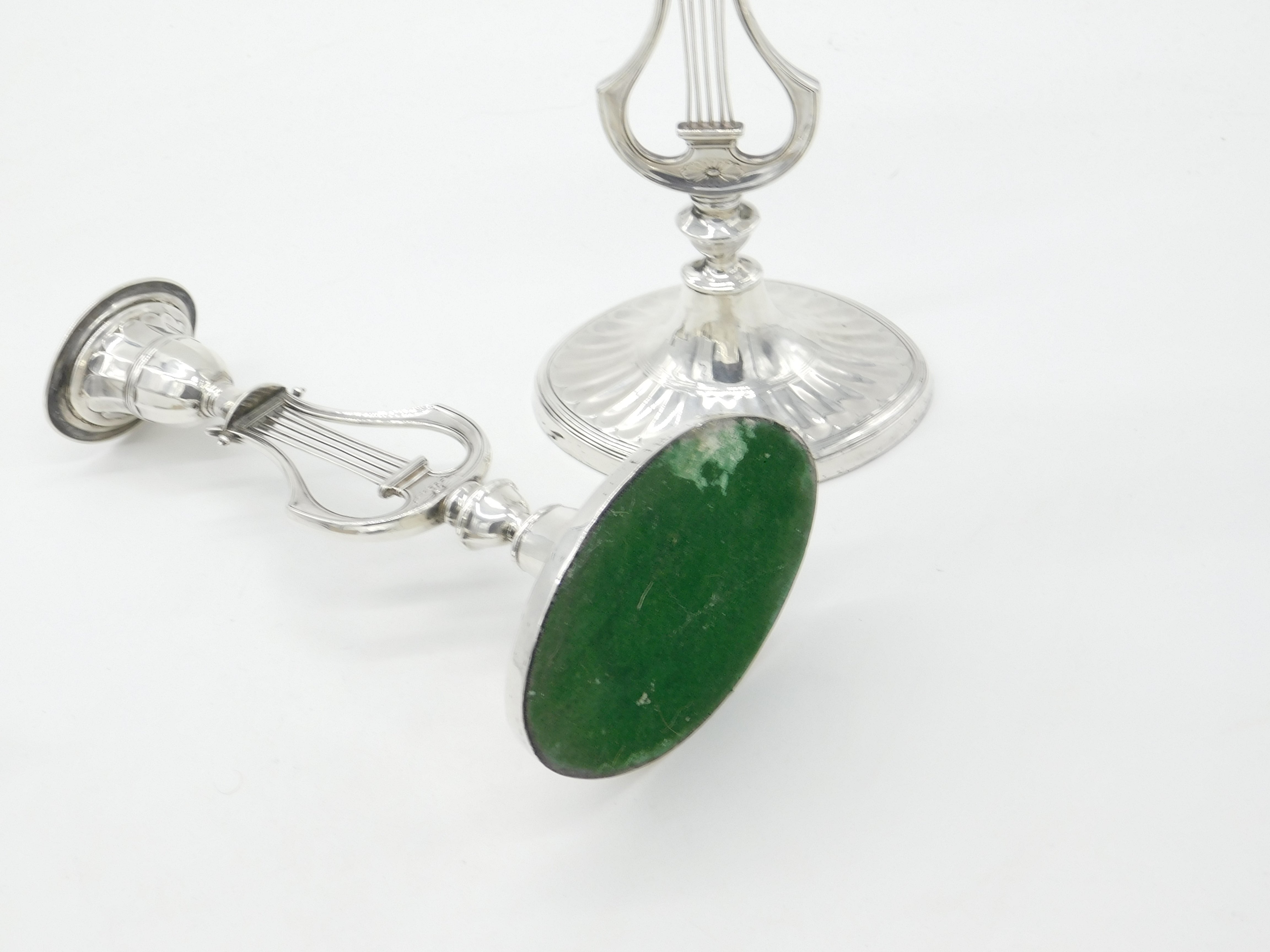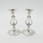 Victorian Pair Sterling Silver Harp Pattern Table Candlesticks 1891 Sheffield