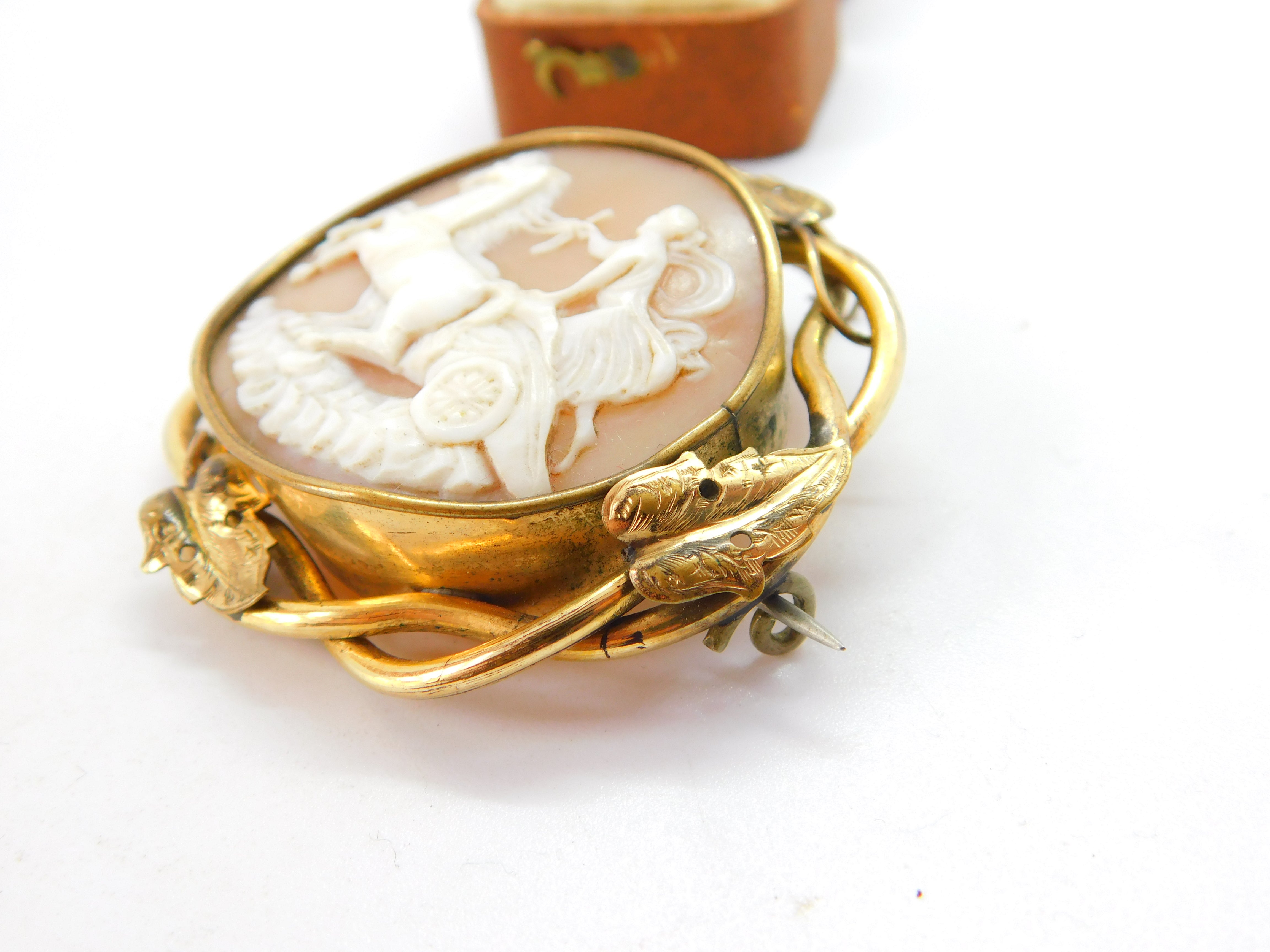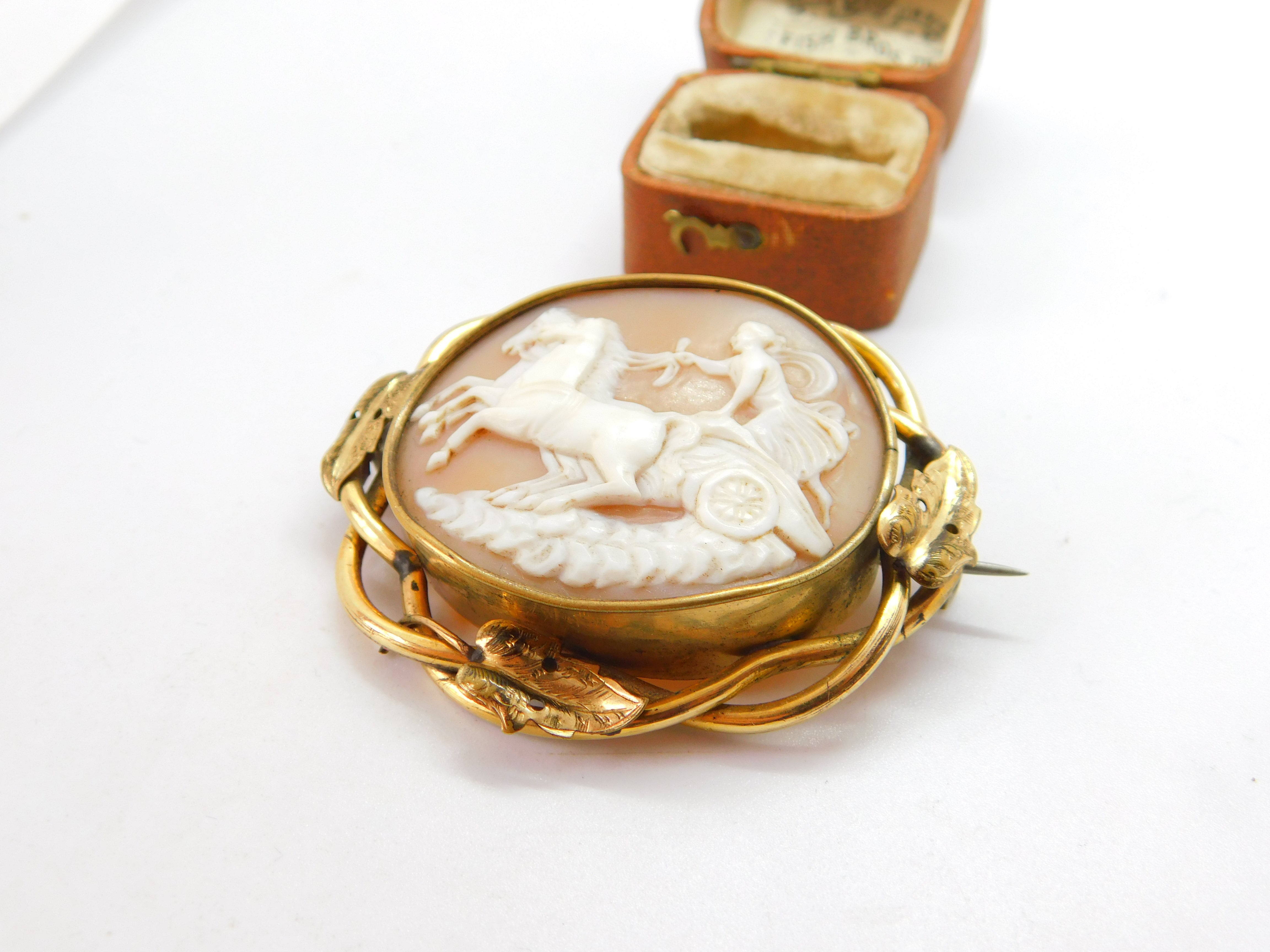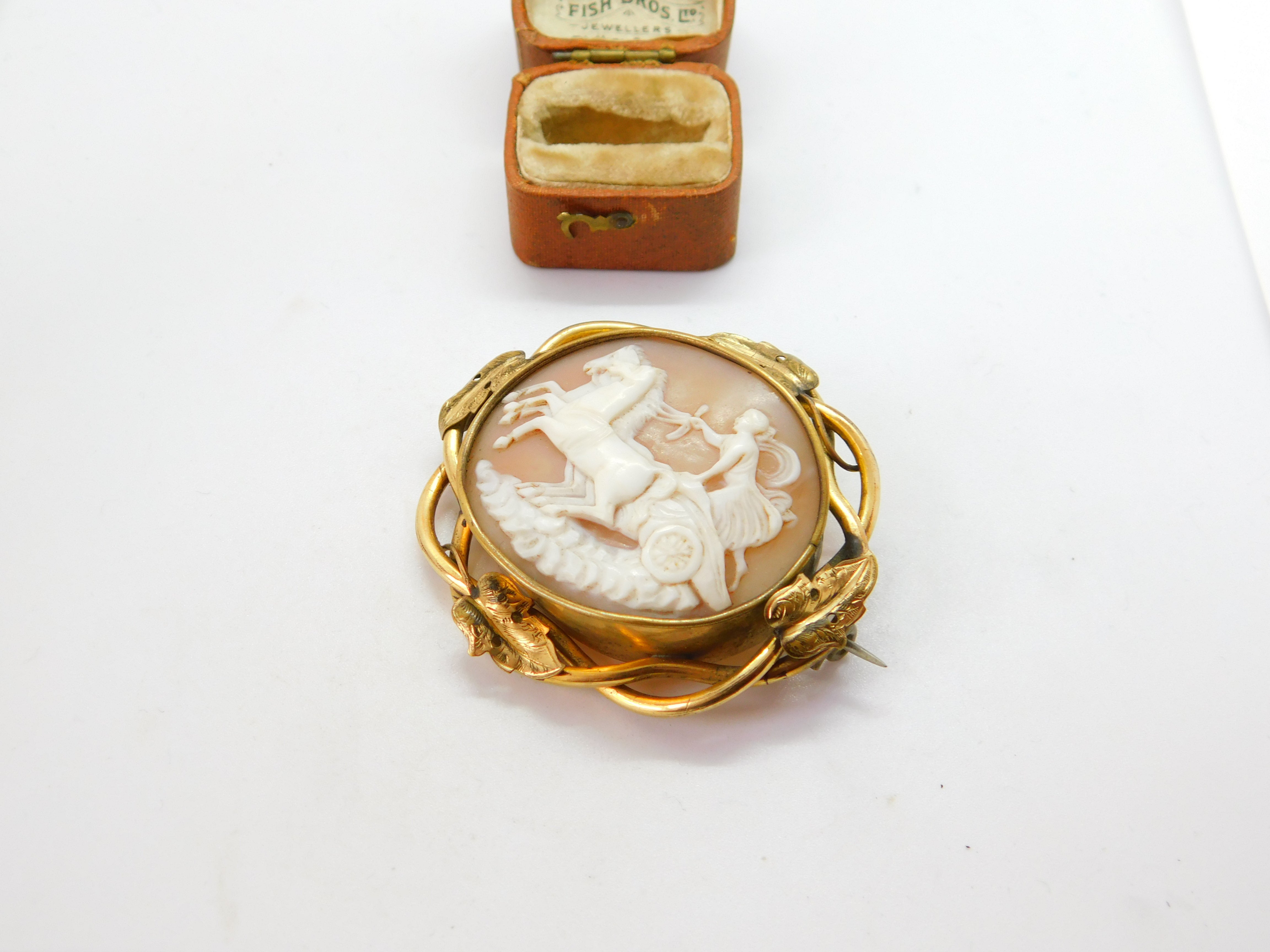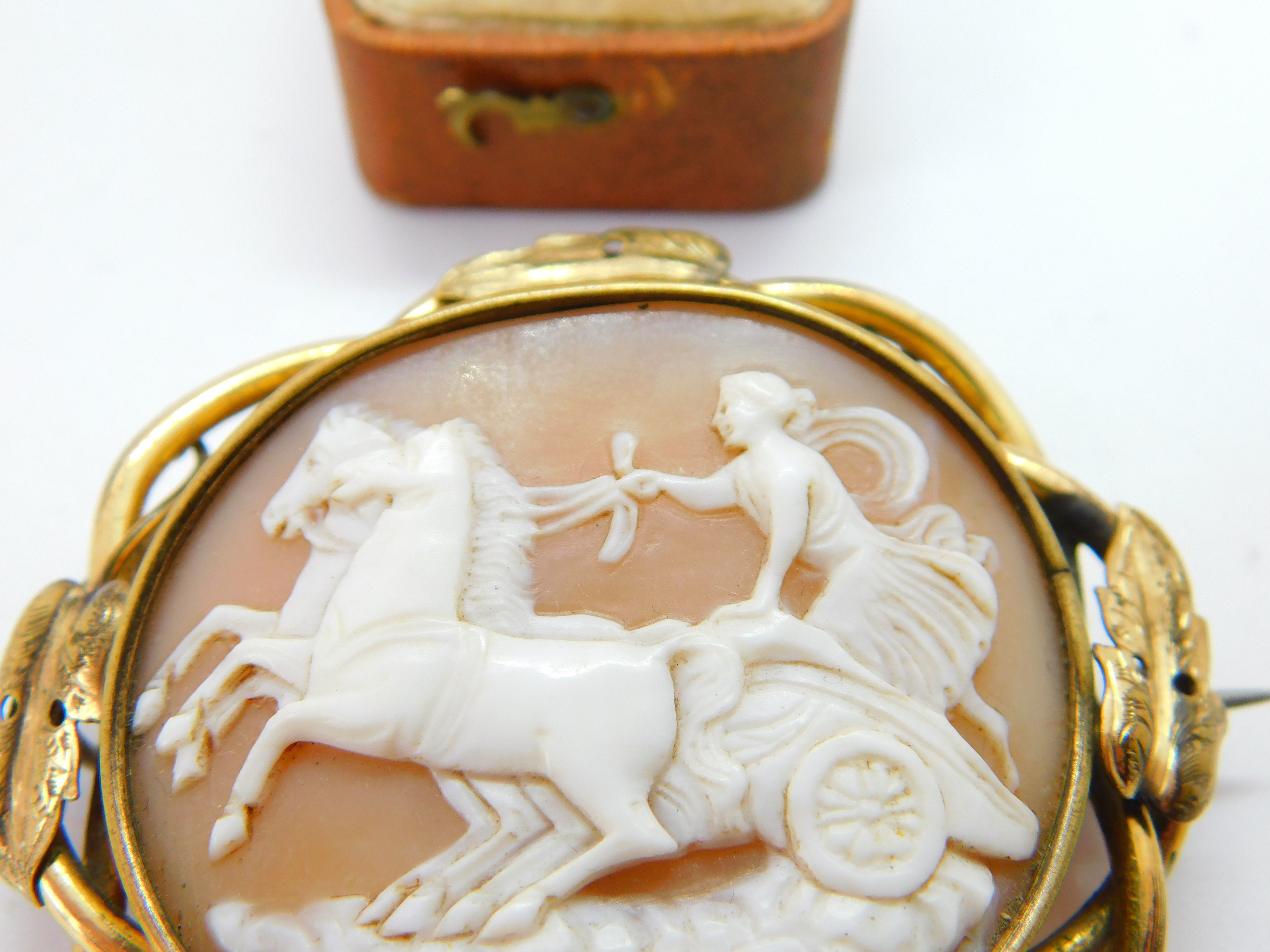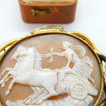 Details: A fantastic and wonderfully designed antique Victorian carved shell cameo depicting the goddess athena riding a chariot framed in acanthus pattern pinchbeck mount c1850. This is a wonderful item that would make a perfect gift or addition to any collection. The BOX pictured is for PRESENTATION ONLY and is NOT included in the listings but used to frame the pictures unless specifically stated otherwise.