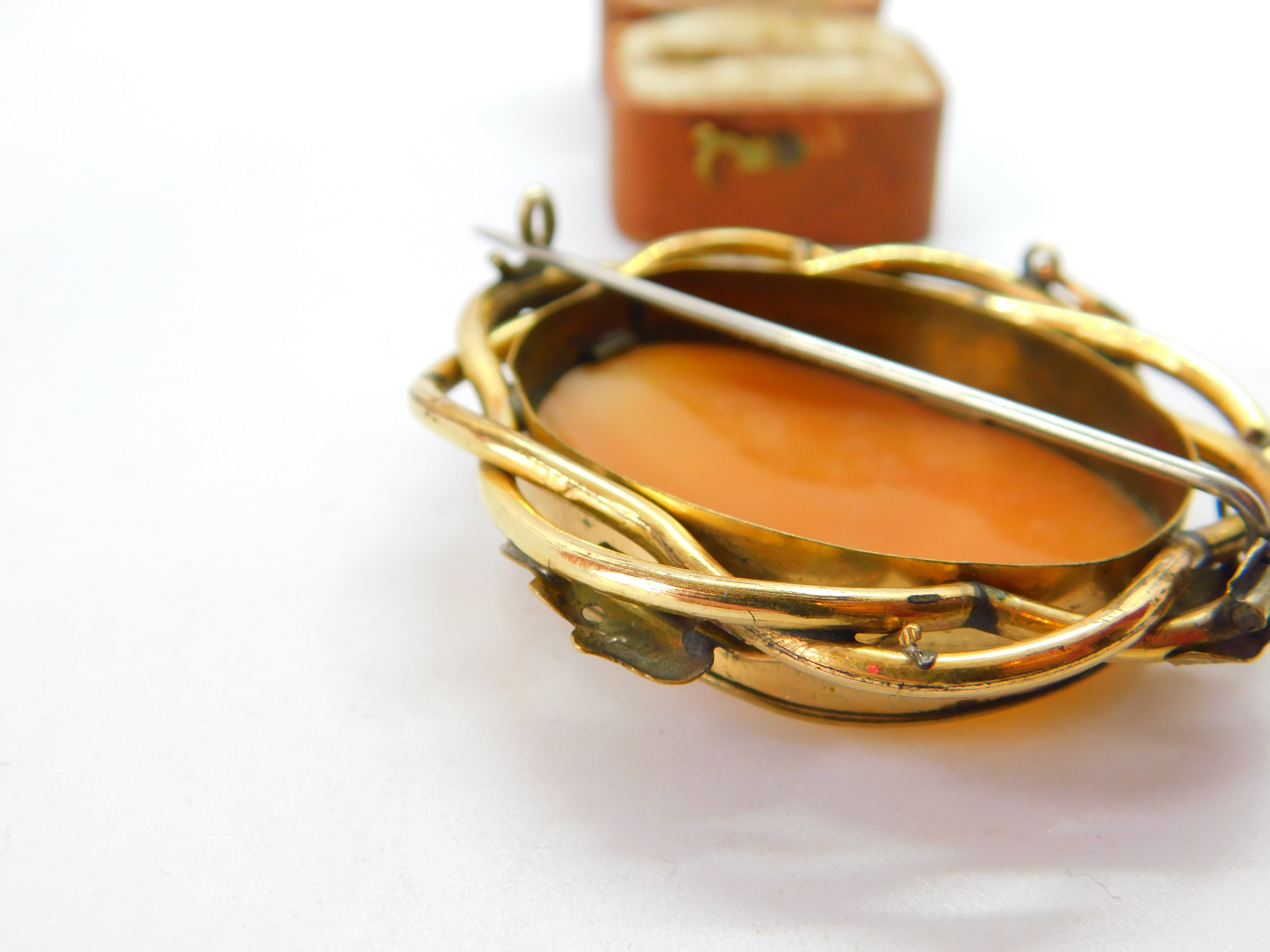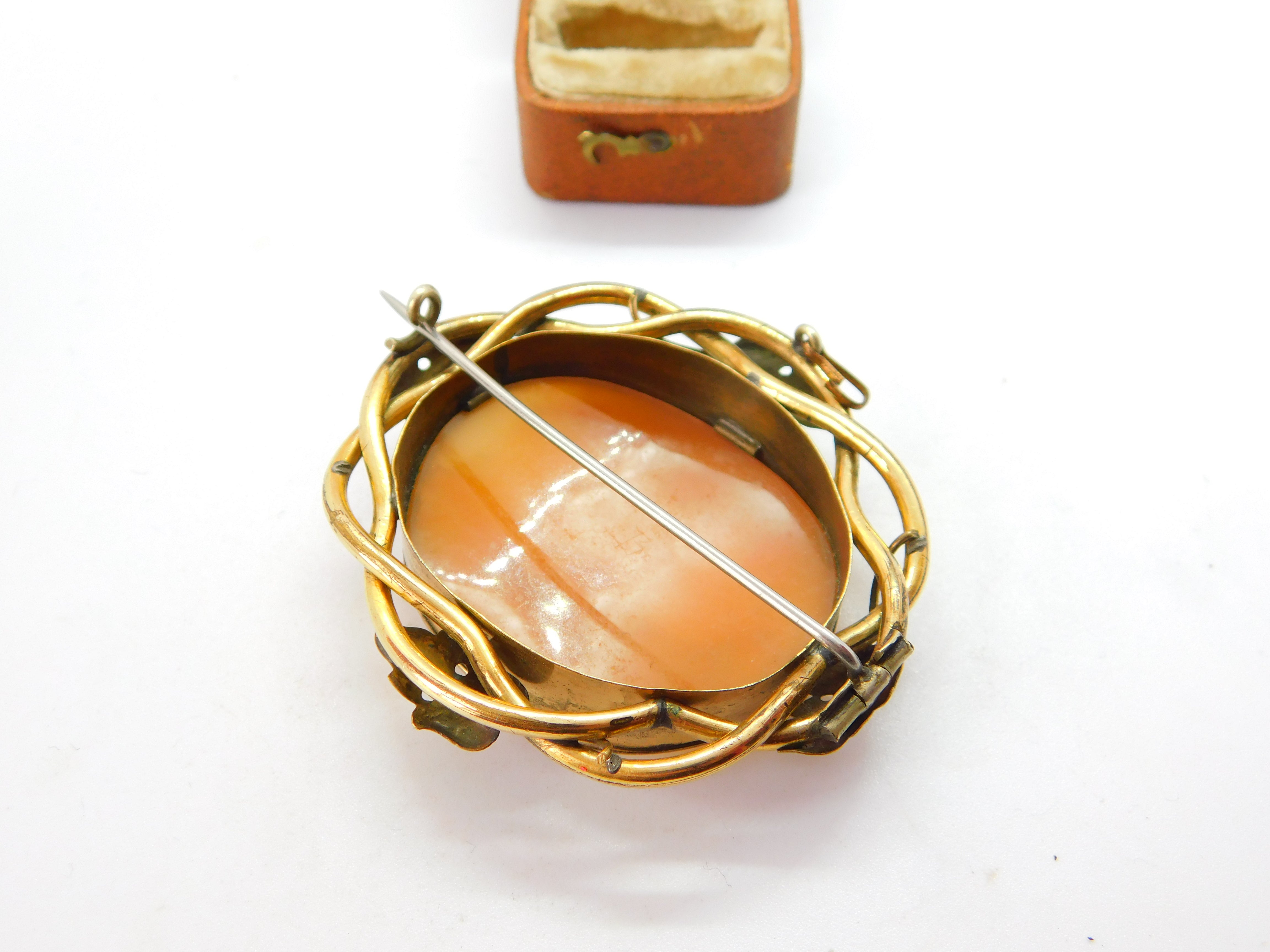 Victorian Pinchbeck Acanthus Framed Carved Goddess Athena Cameo Brooch c1850