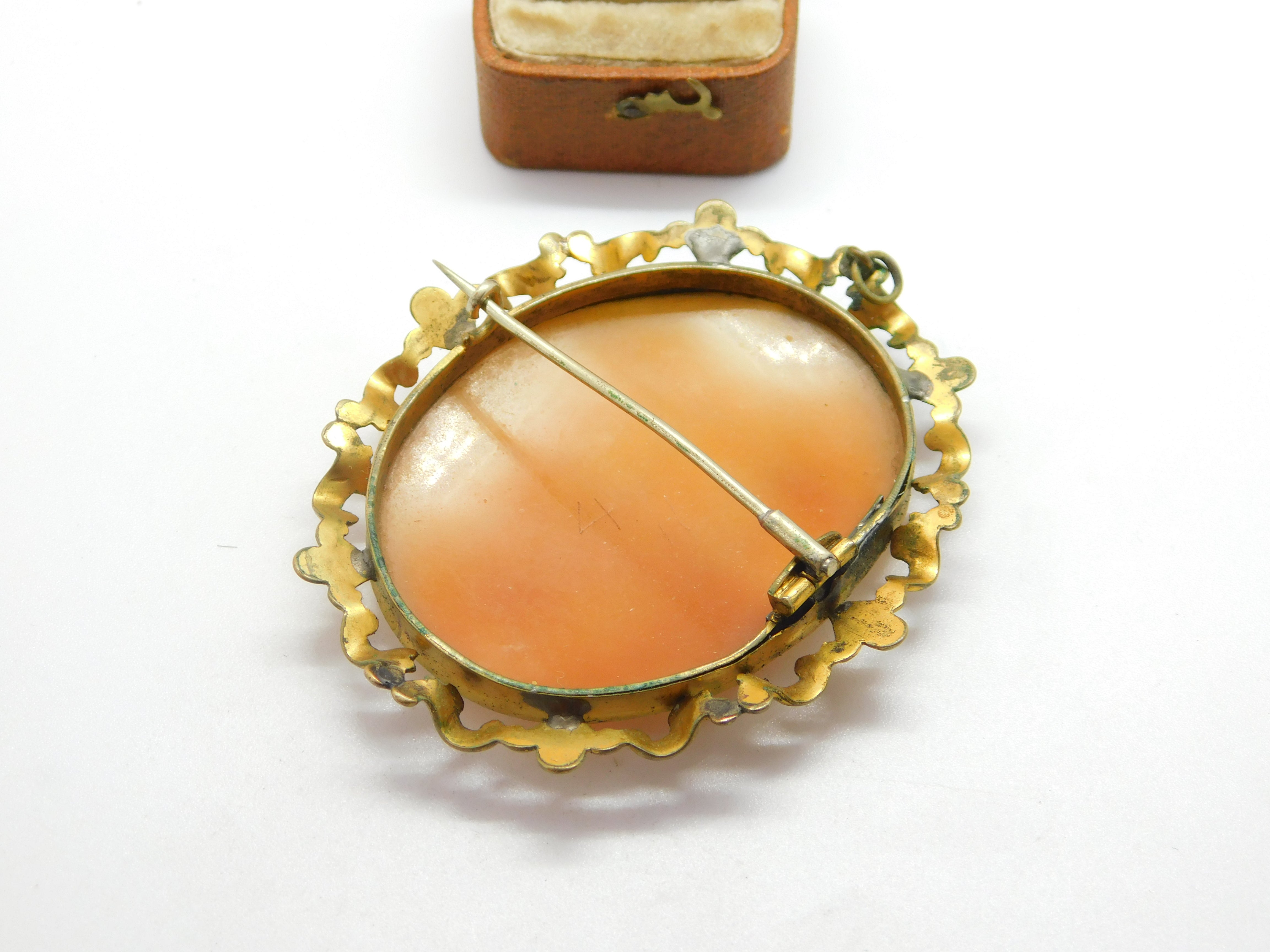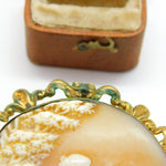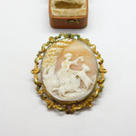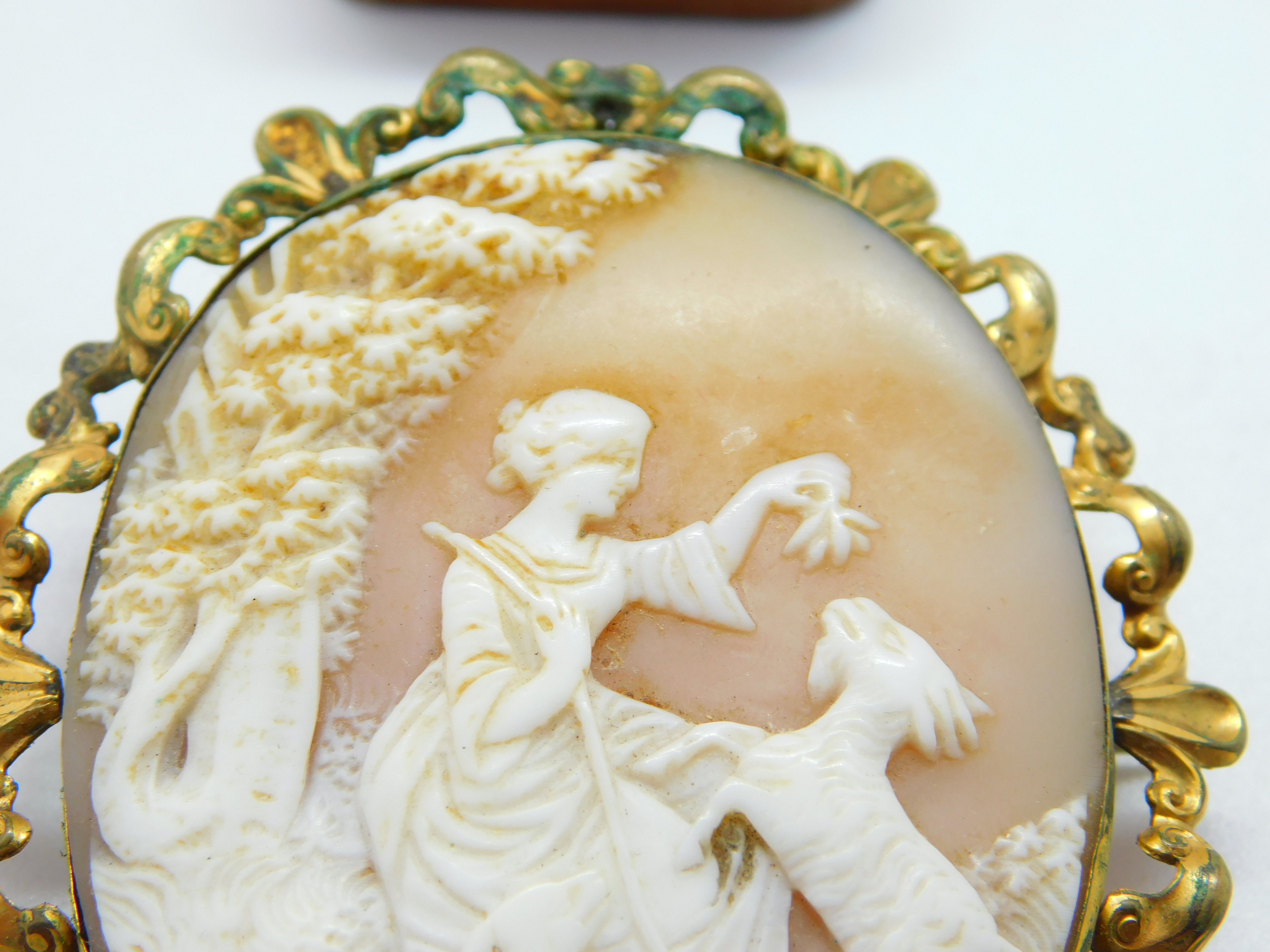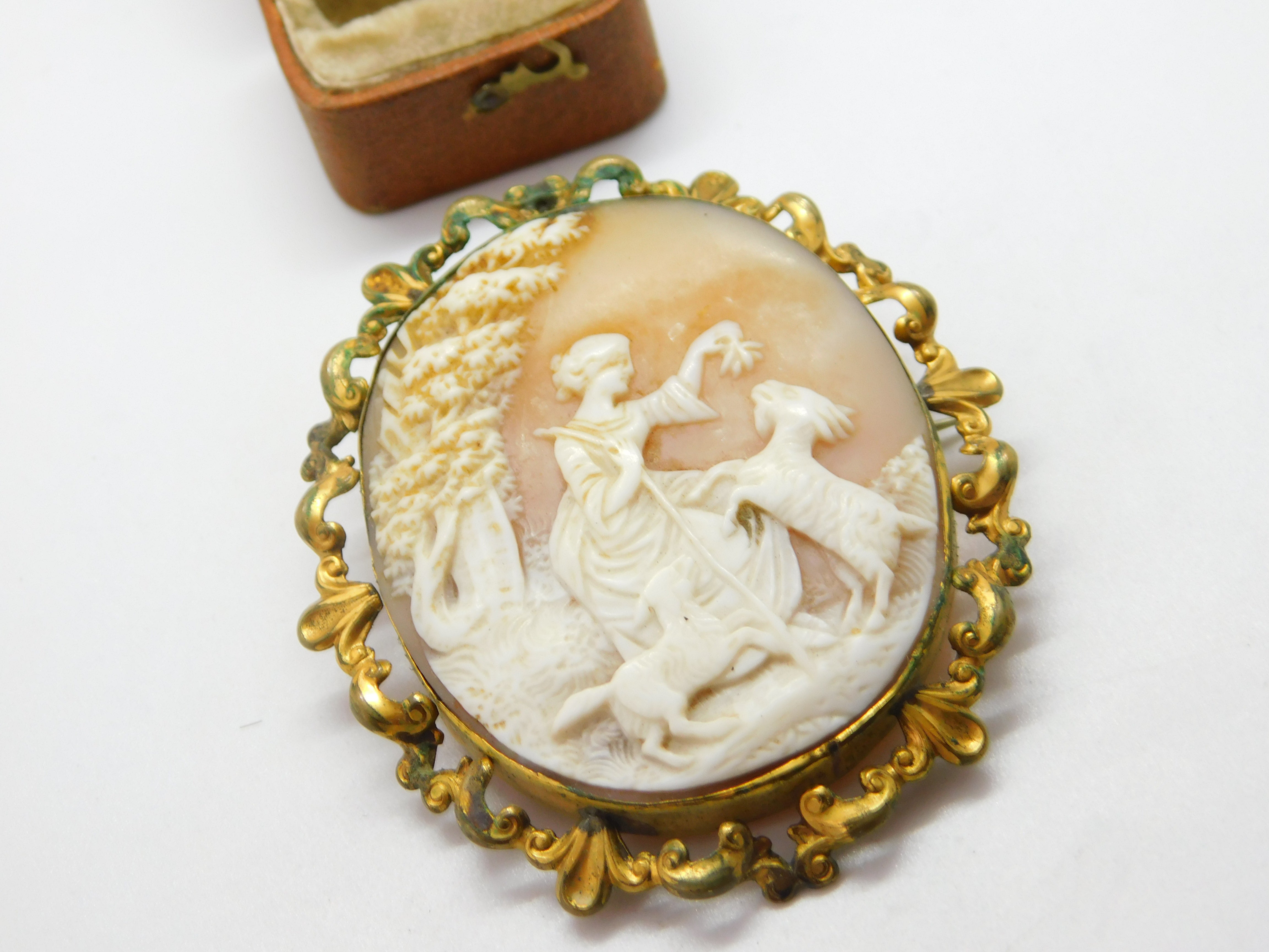 Victorian Pinchbeck Carved Cameo Brooch Lady Feeding Goats c1850 Antique