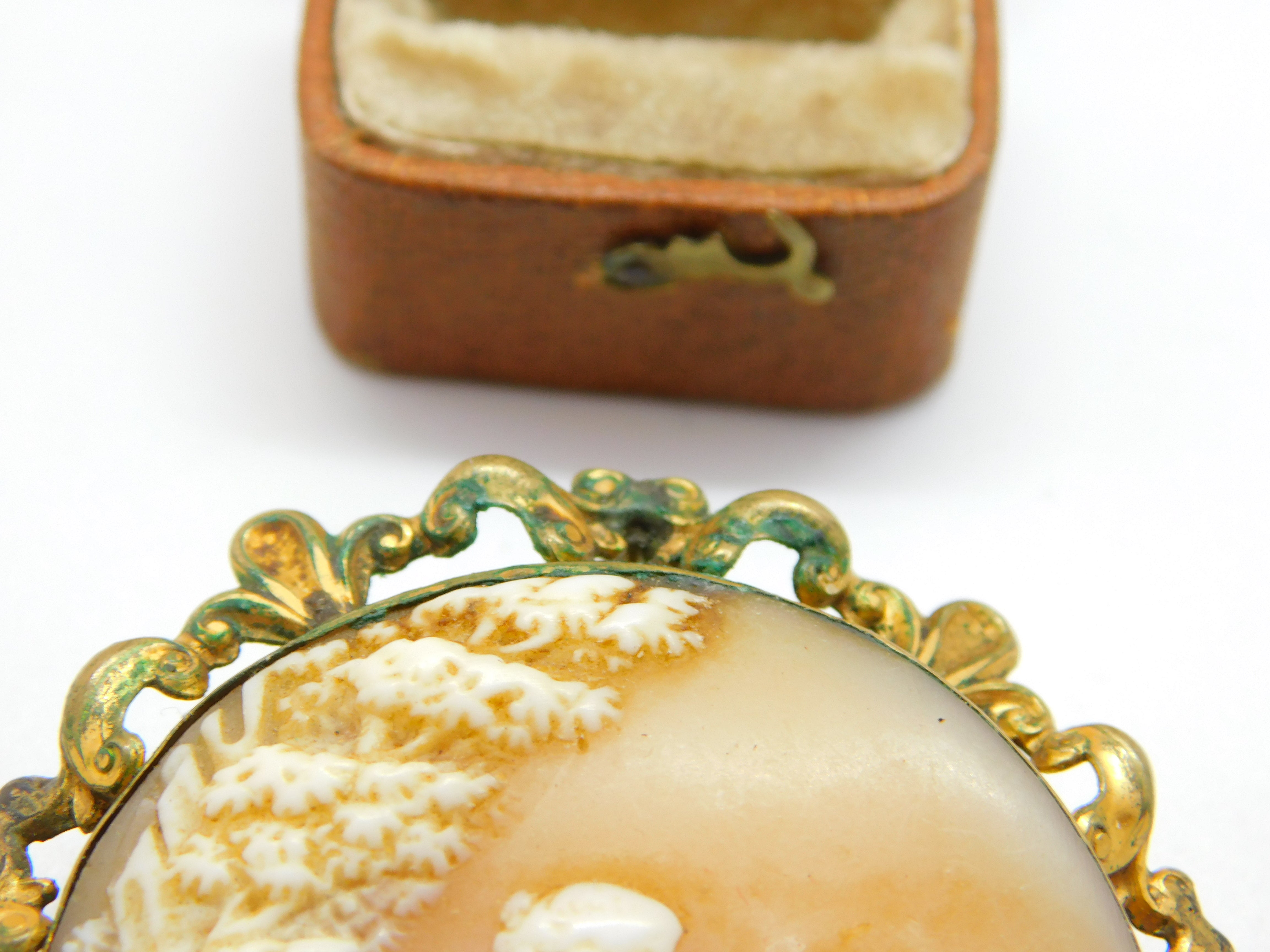 Details: A fantastic and wonderfully designed antique Victorian large pinchbeck mounted brooch set with superb carved cameo depciting a young lady feeding goats c1850. Wearing to the mount with a bit of tarnishing please note. This is a wonderful item that would make a perfect gift or addition to any collection. The BOX pictured is for PRESENTATION ONLY and is NOT included in the listings but used to frame the pictures unless specifically stated otherwise.