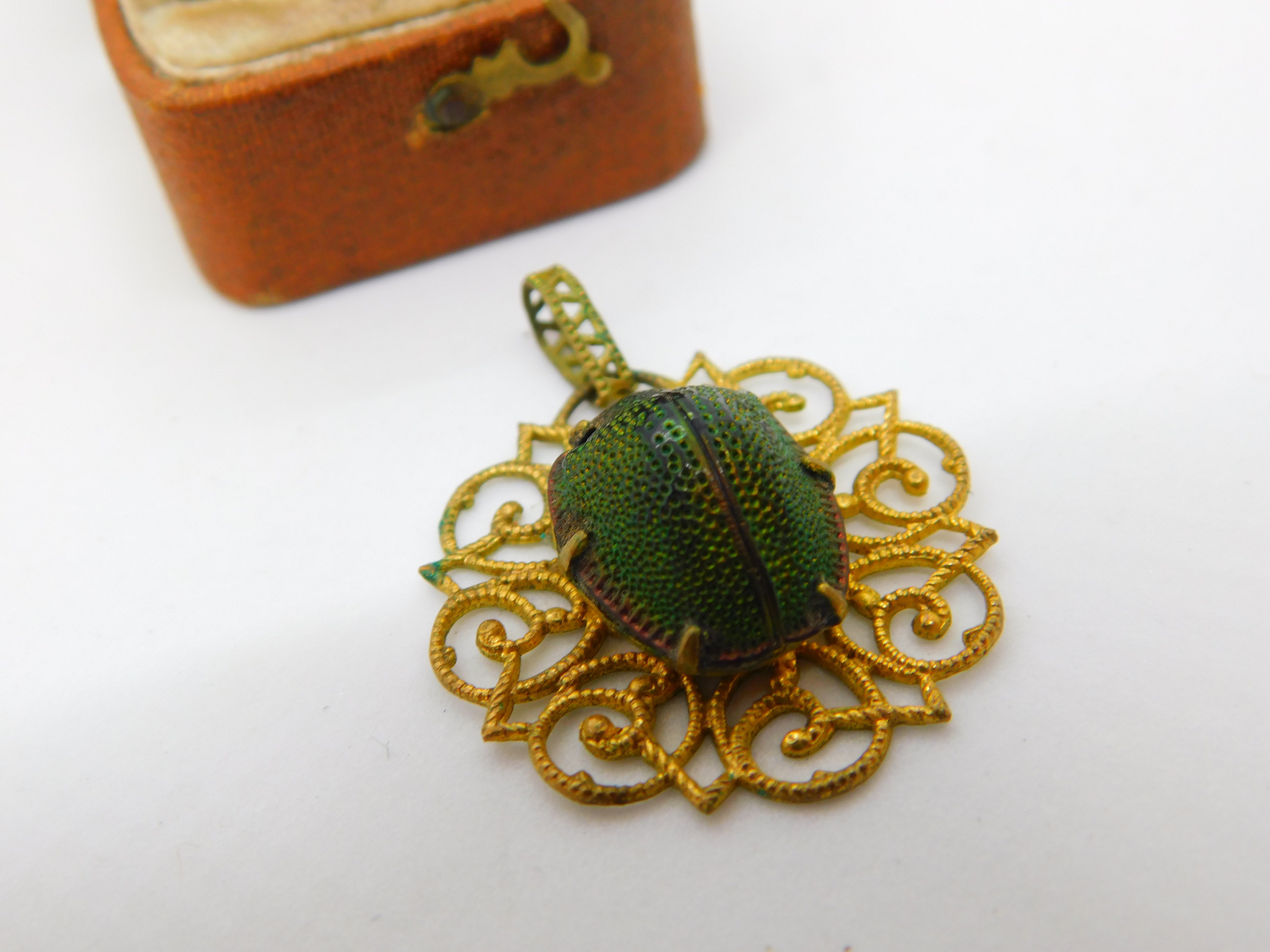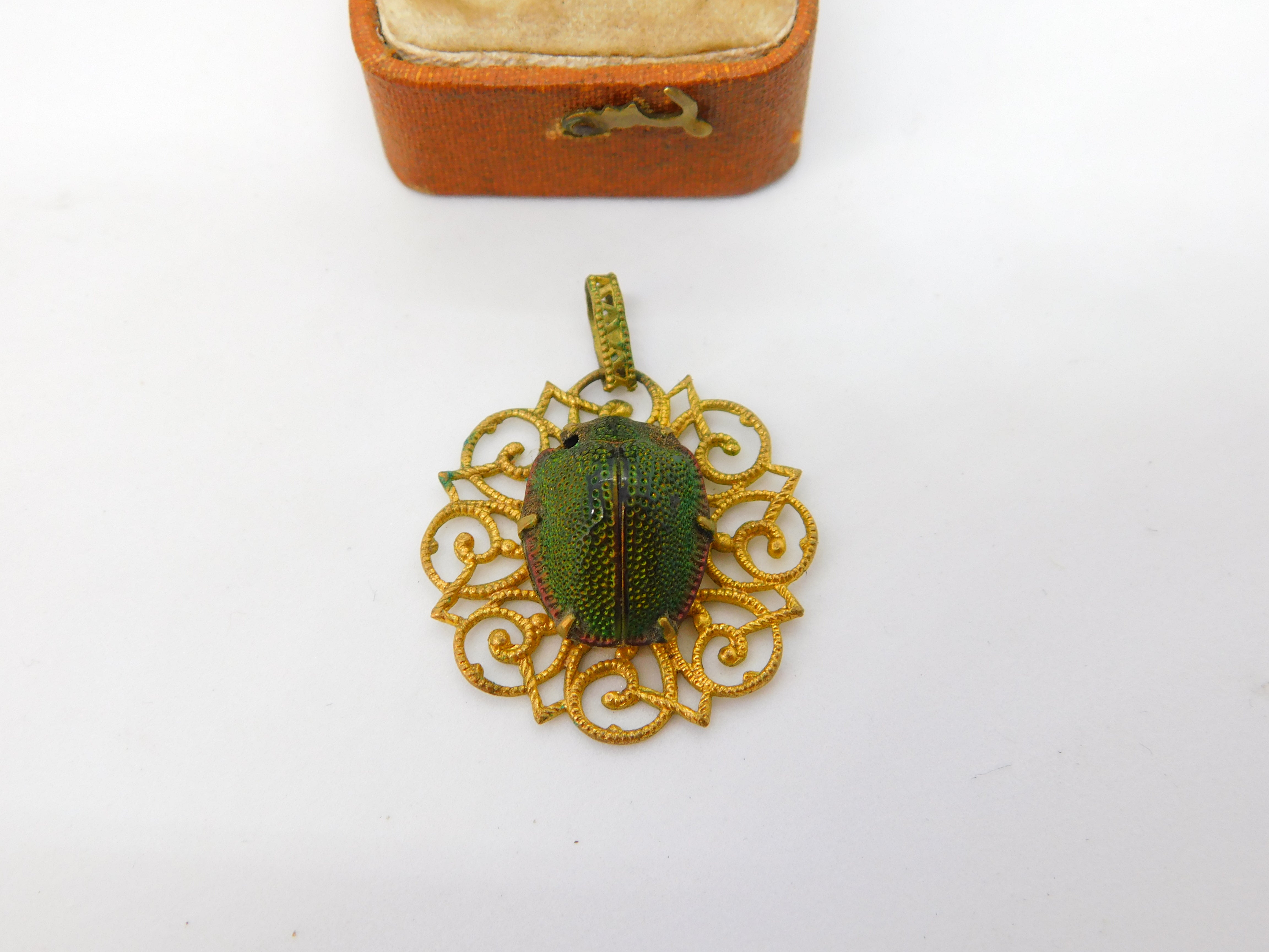 Victorian Pinchbeck Egyptian Revival Scarab Beetle Drop Pendant c1850 Antique