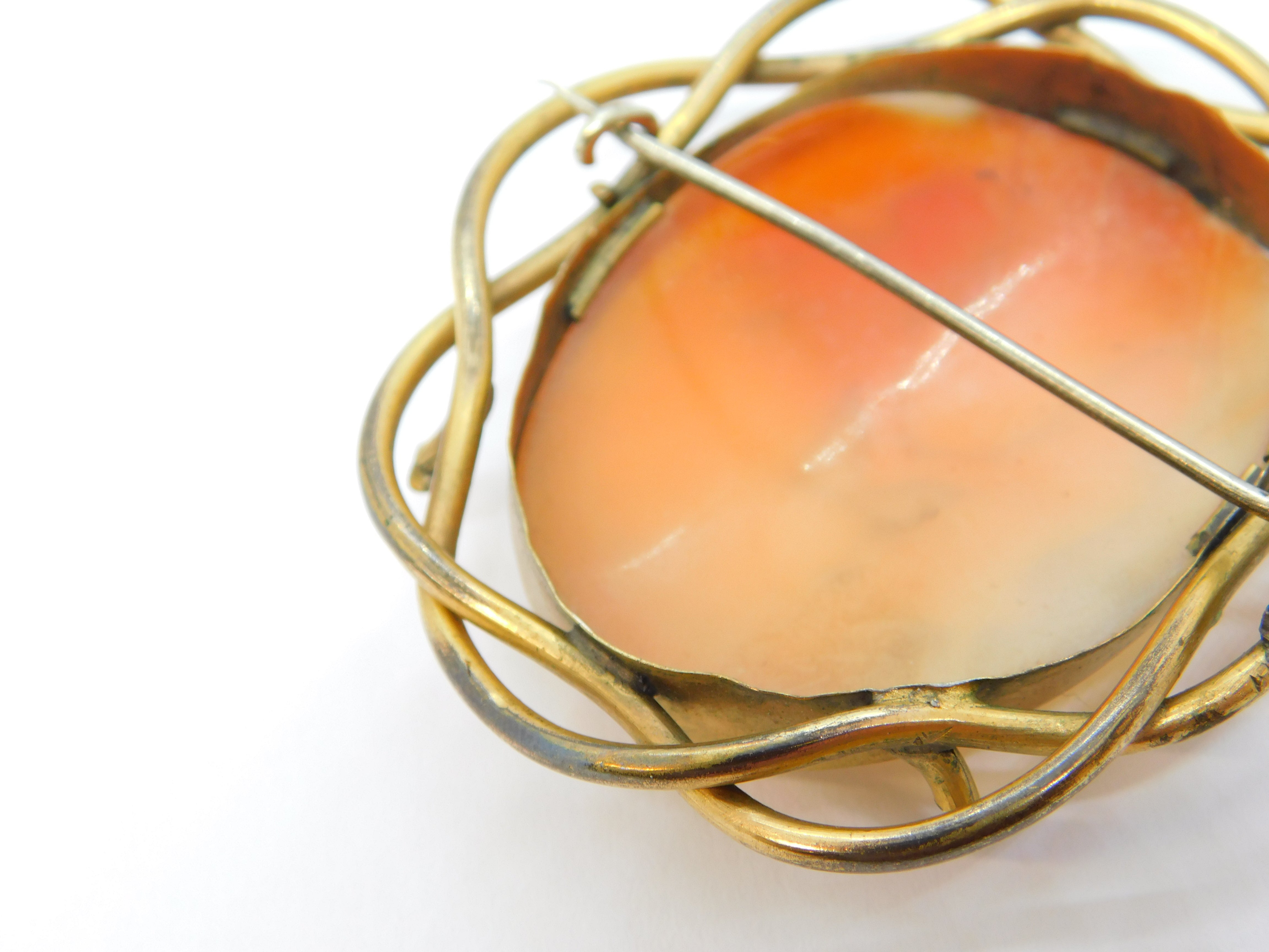 Victorian Pinchbeck Mounted Carved Shell Cameo Ancient Classical Brooch Antique c1880