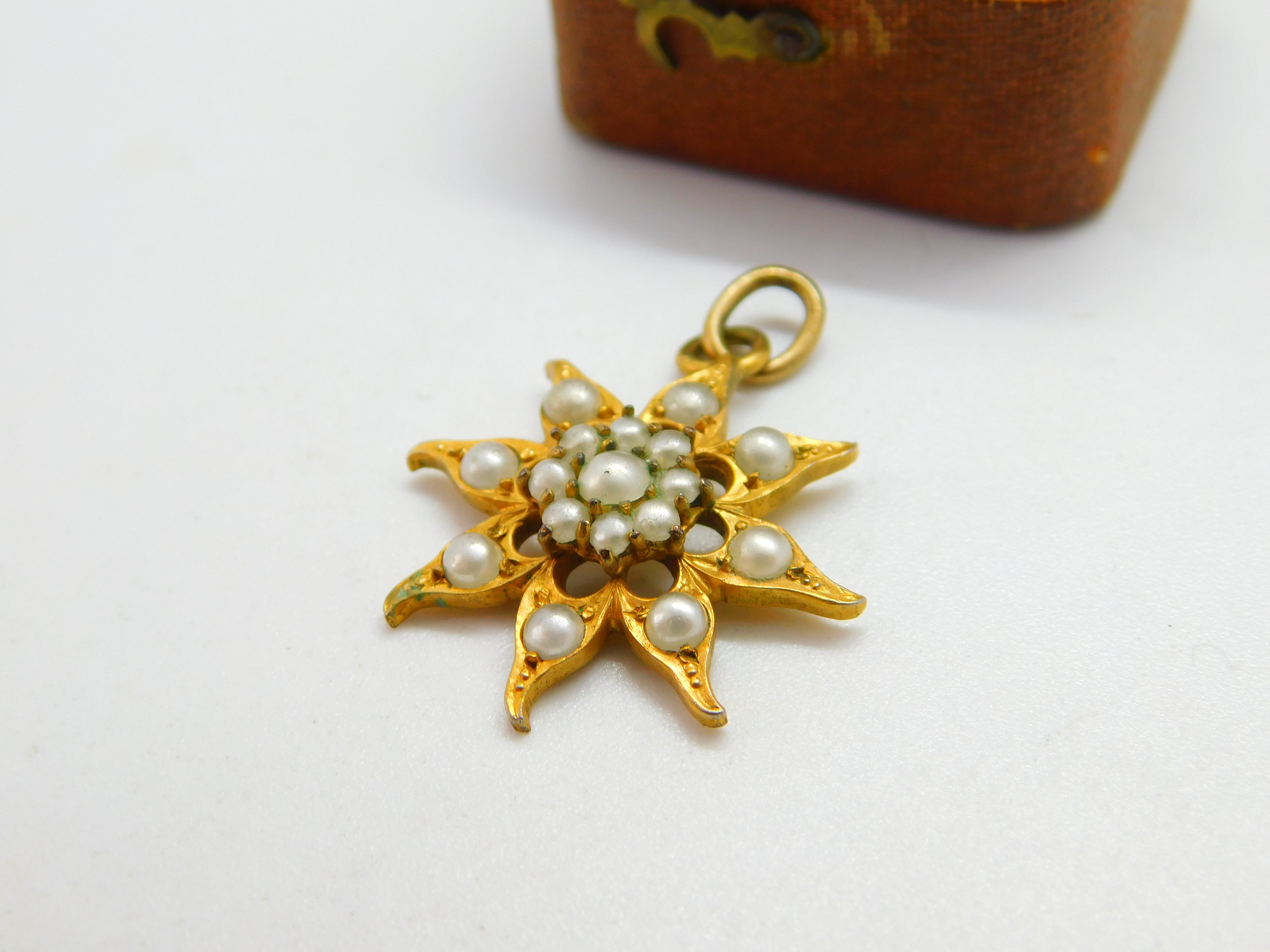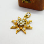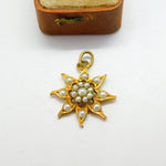 Victorian Pinchbeck & Pearl Set Starburst Drop Pendant c1890 Antique
