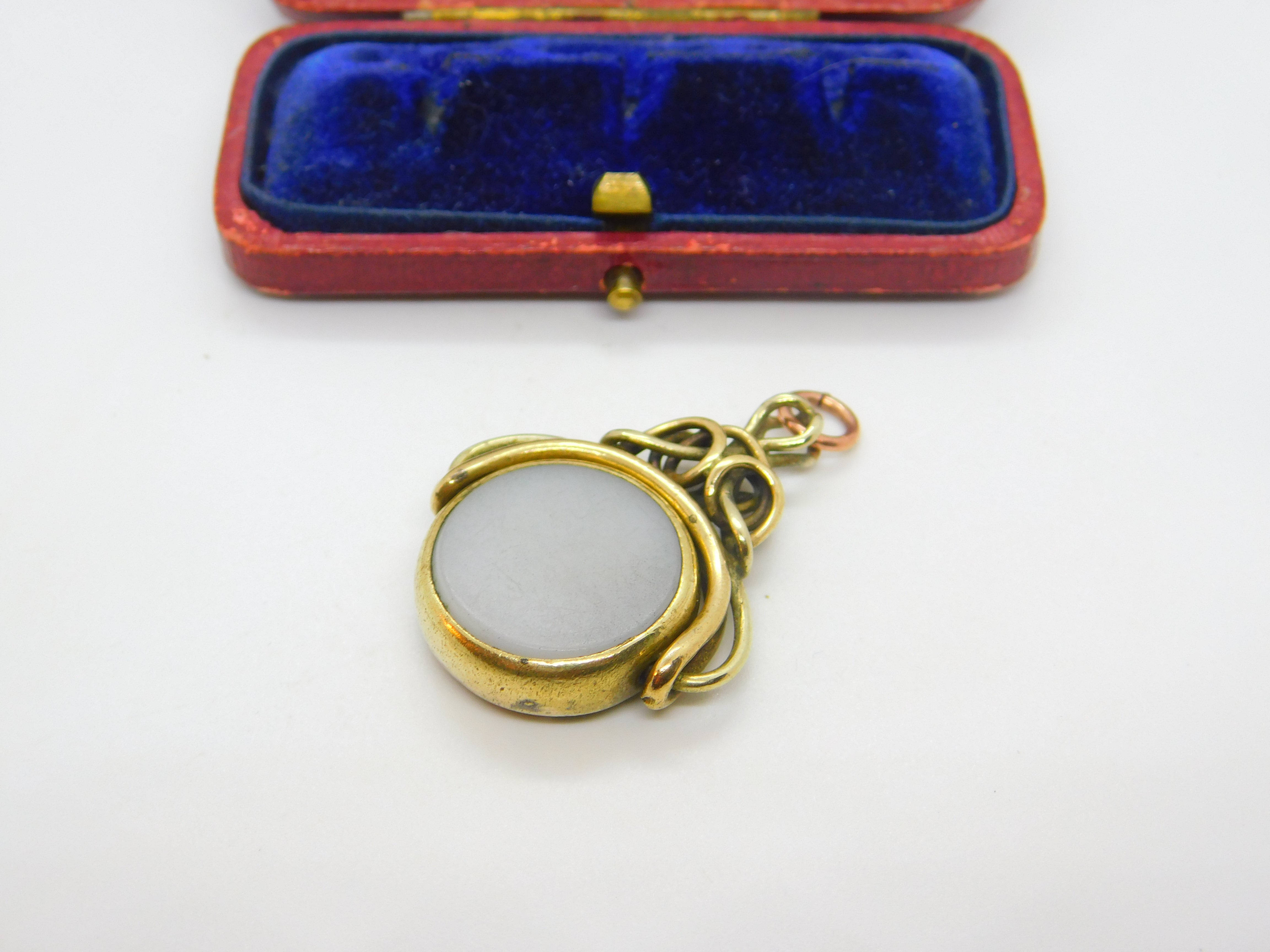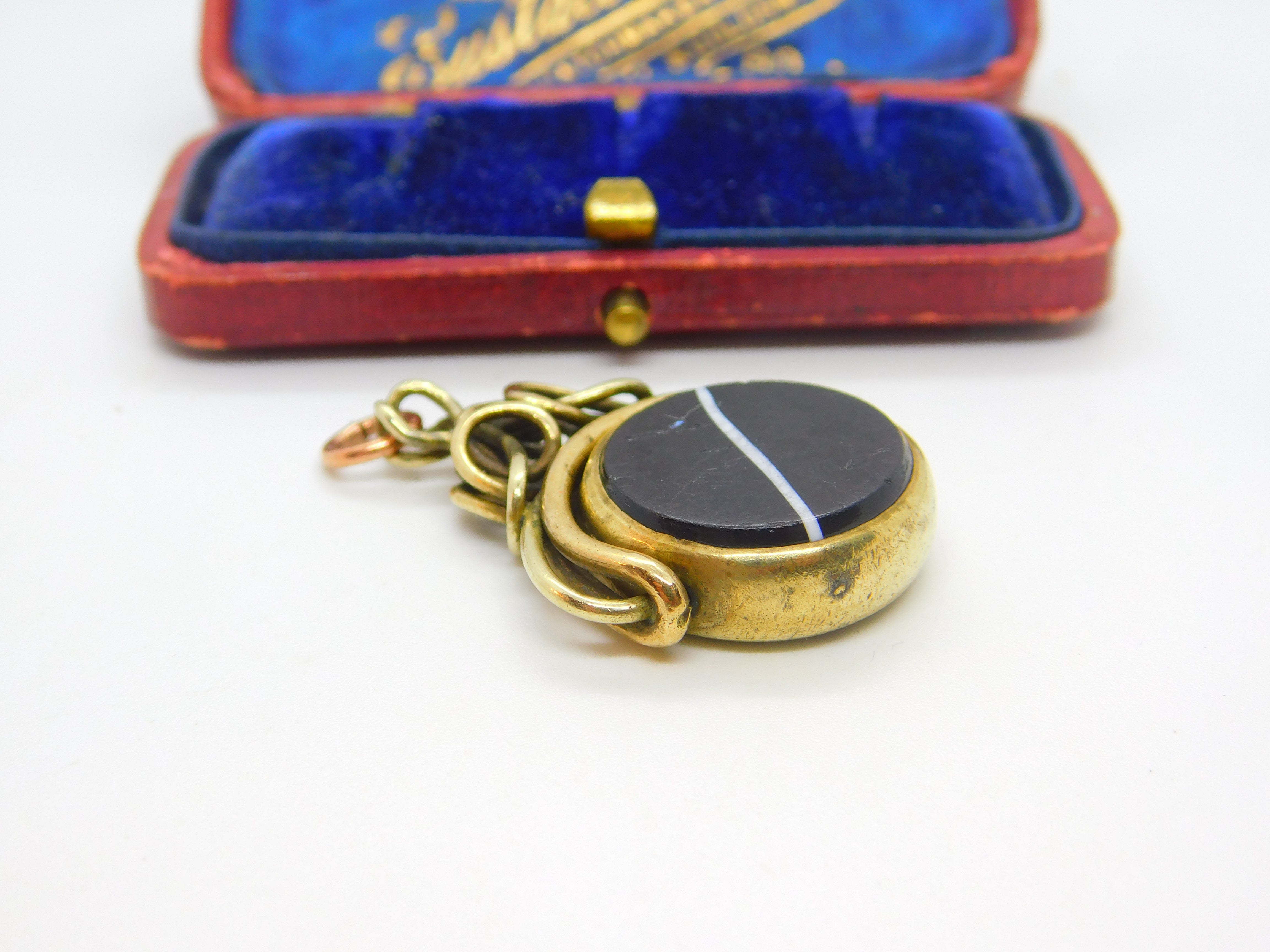 Victorian Rolled Gold, Banded Agate & Sardonyx Spinning Fob Pendant c1850