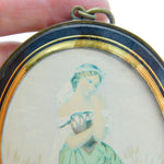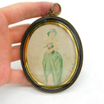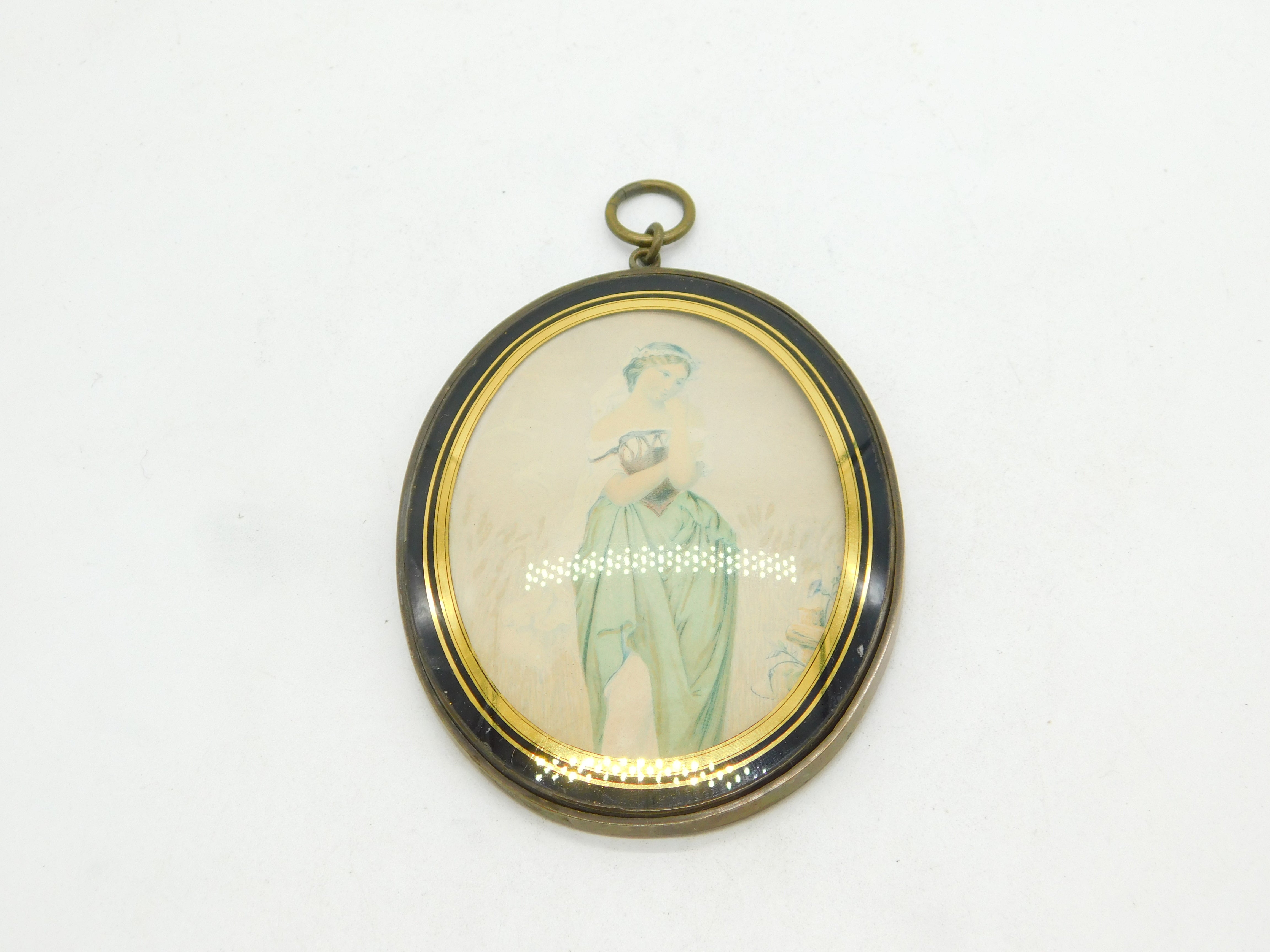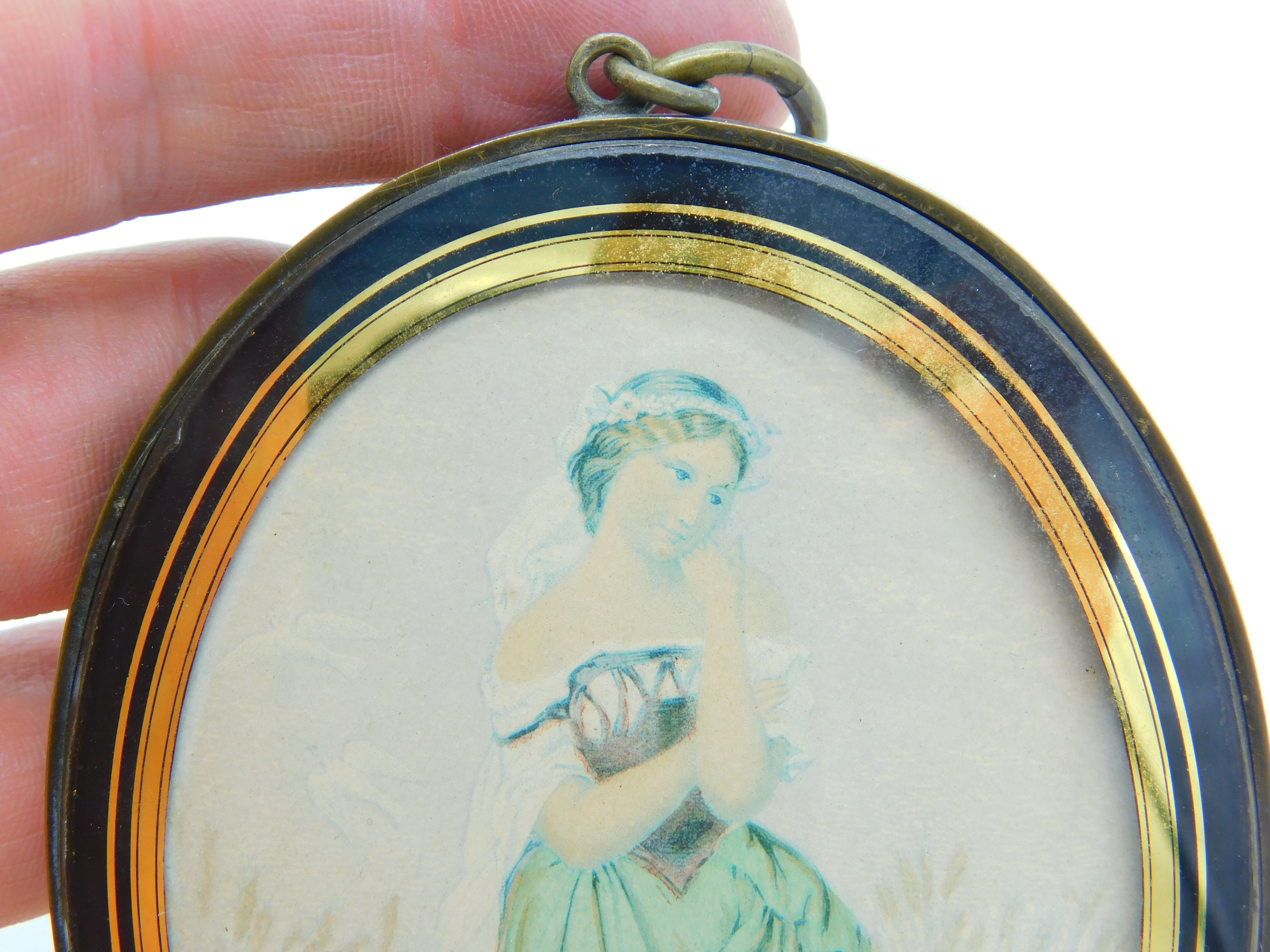 Victorian Rolled Gold Black Enamel Mourning Watercolour on Card 1841 Antique
