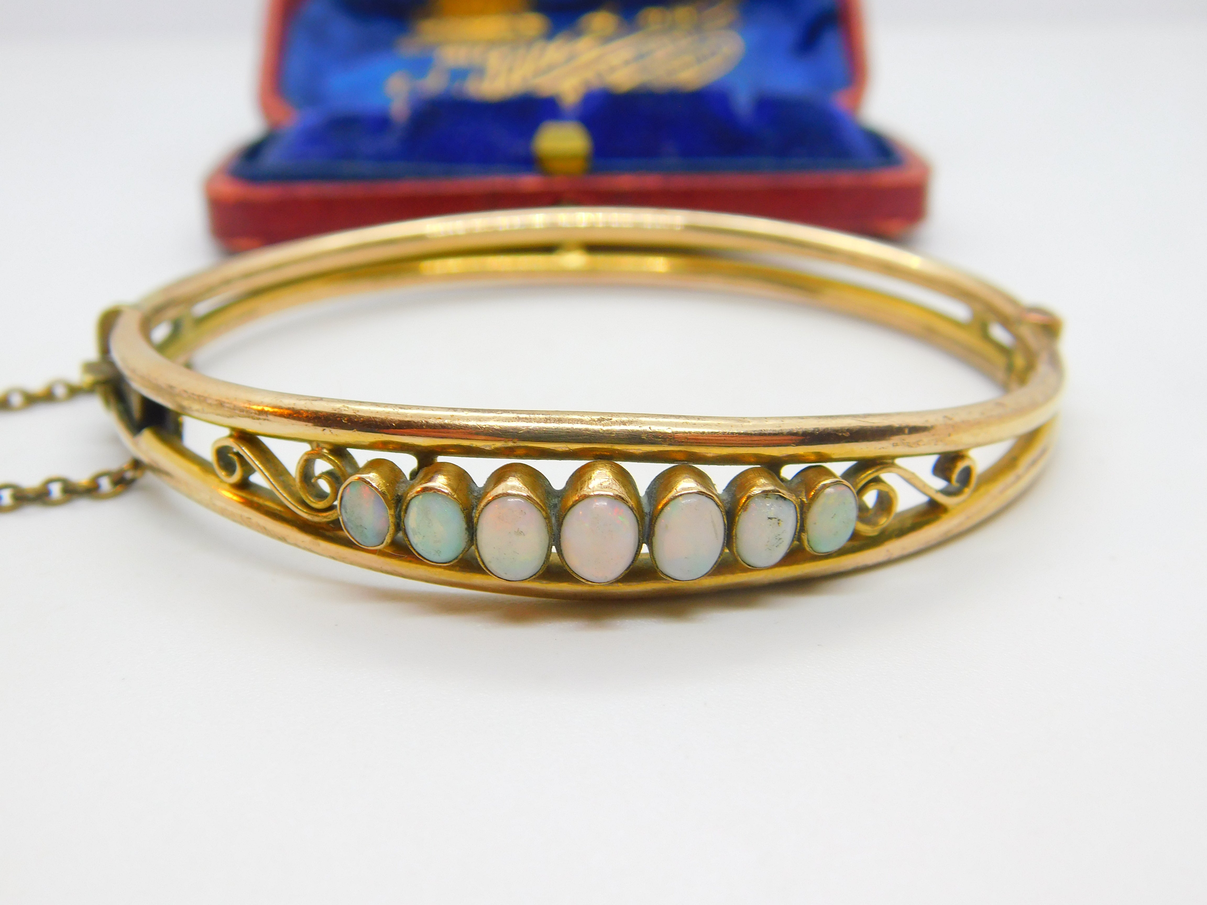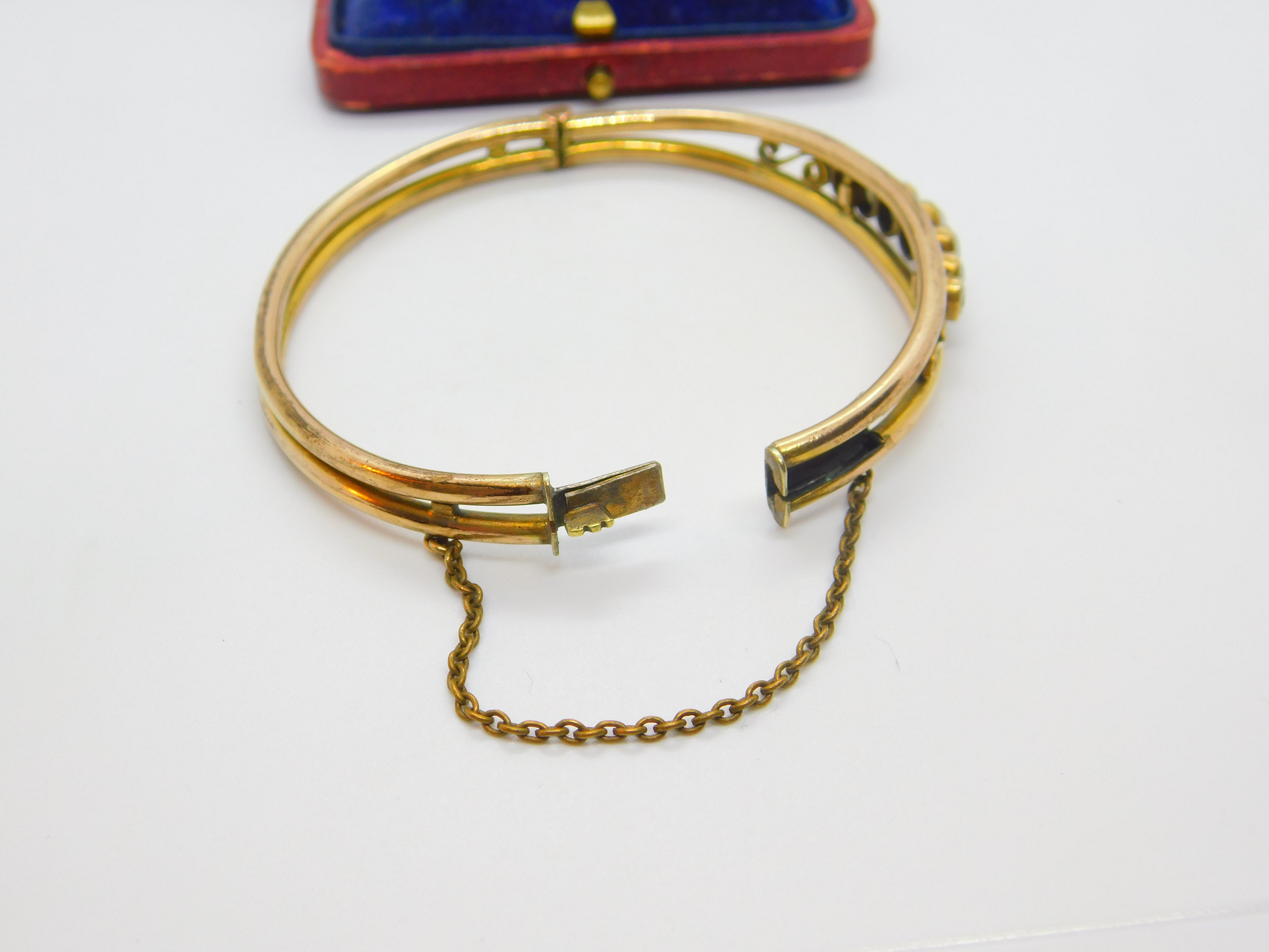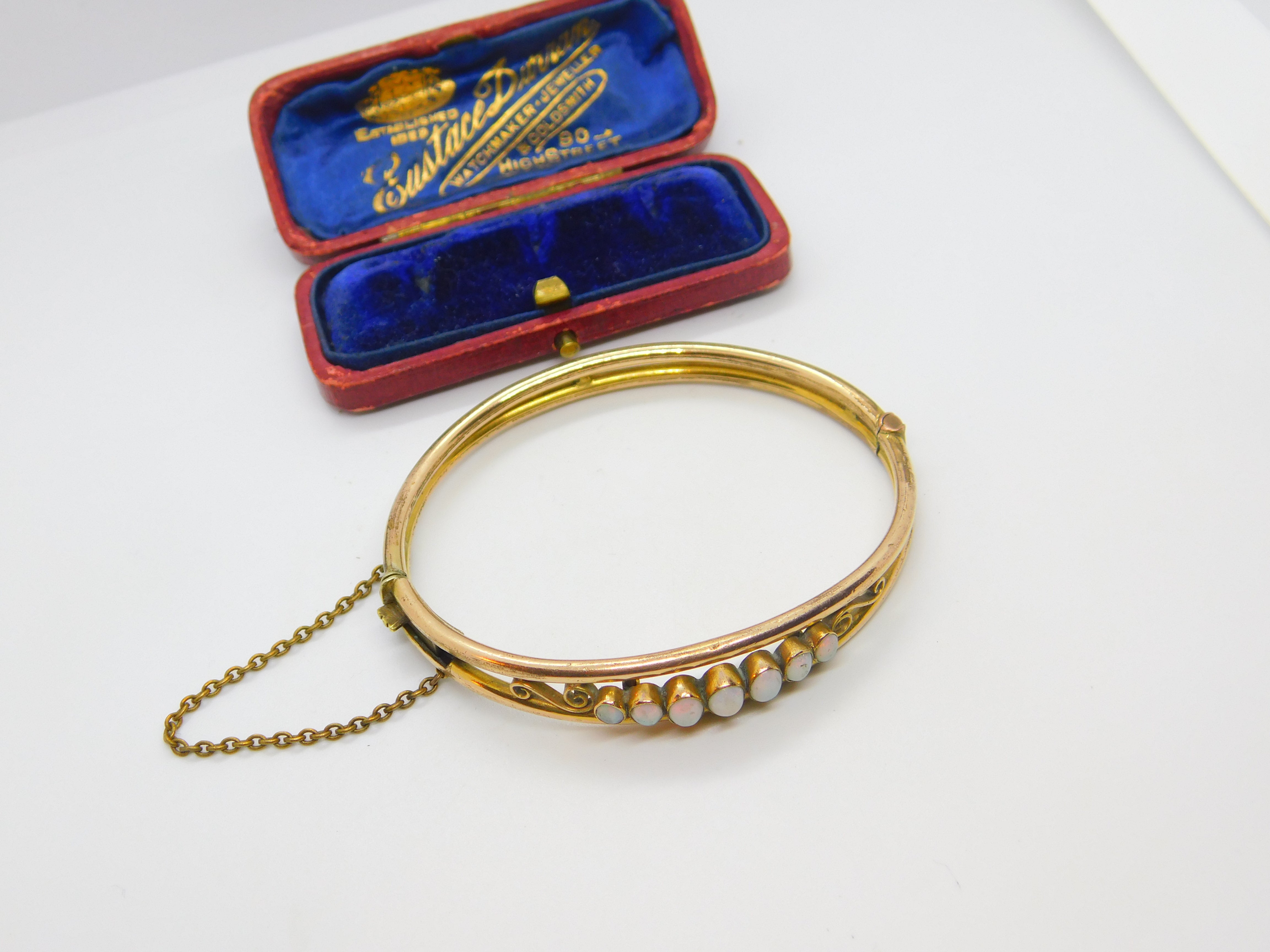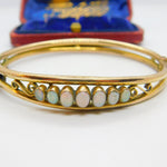 Victorian Rolled Gold & Cabochon Fire Opal Set Bangle Bracelet c1880 Antique