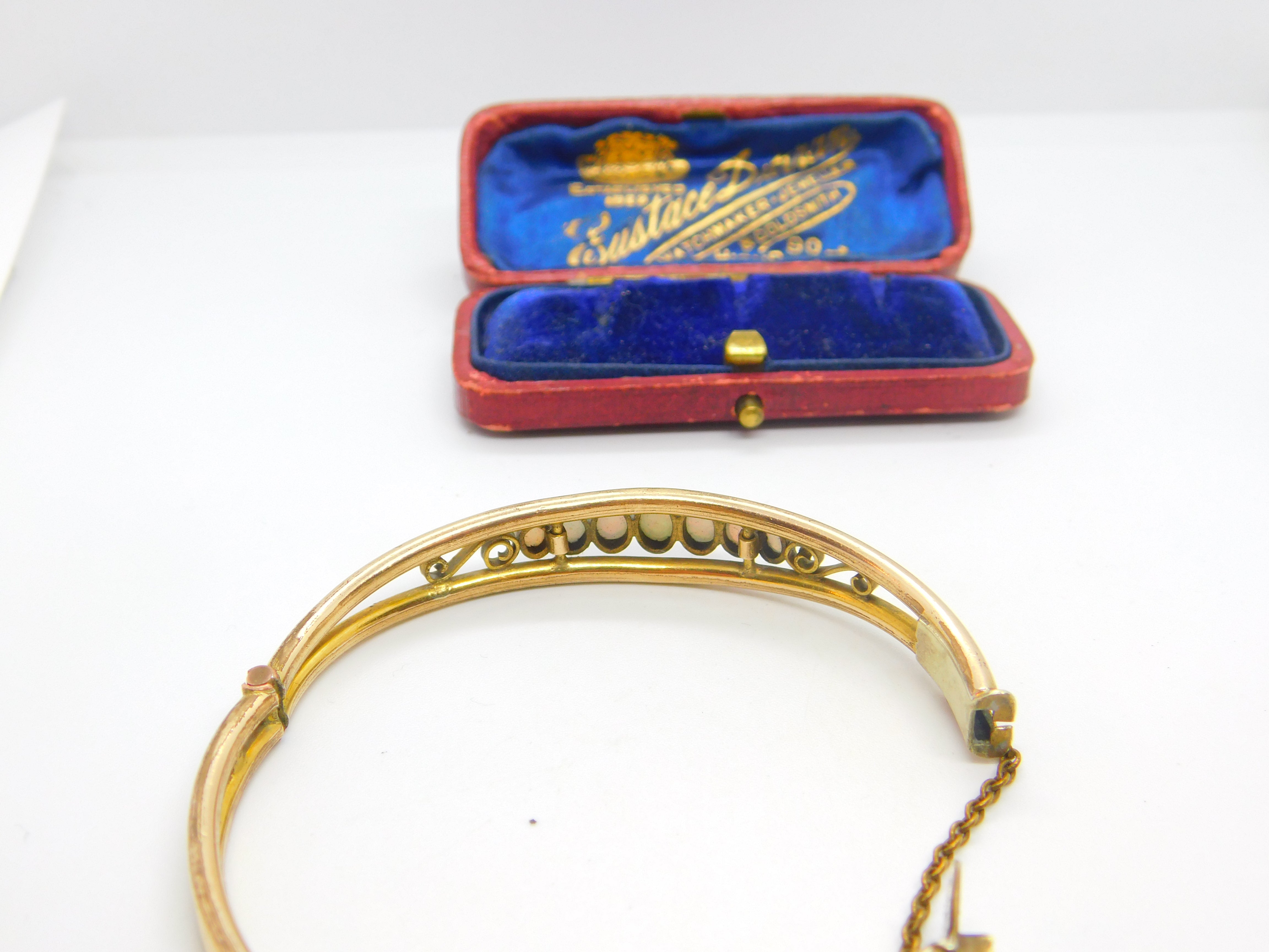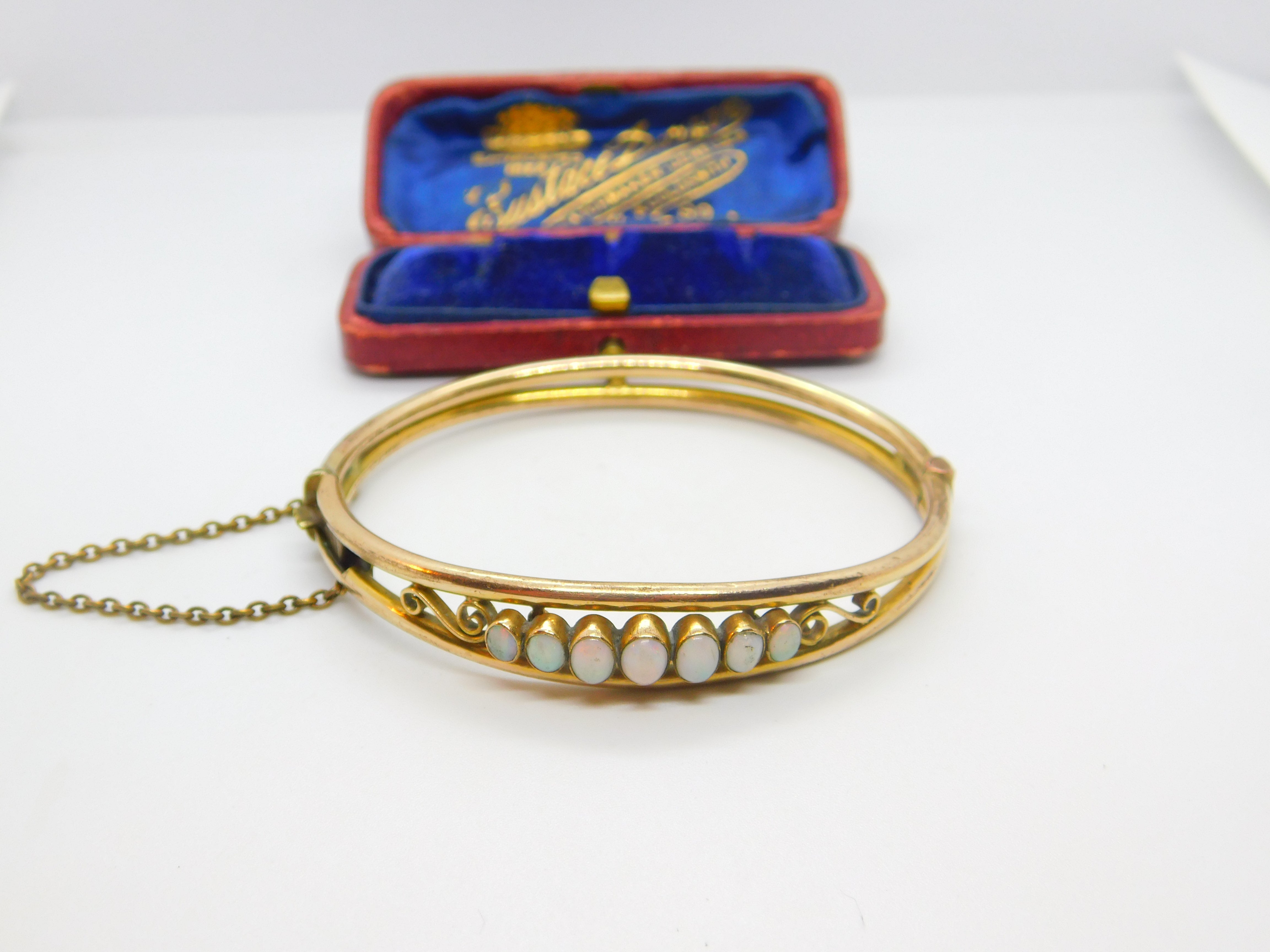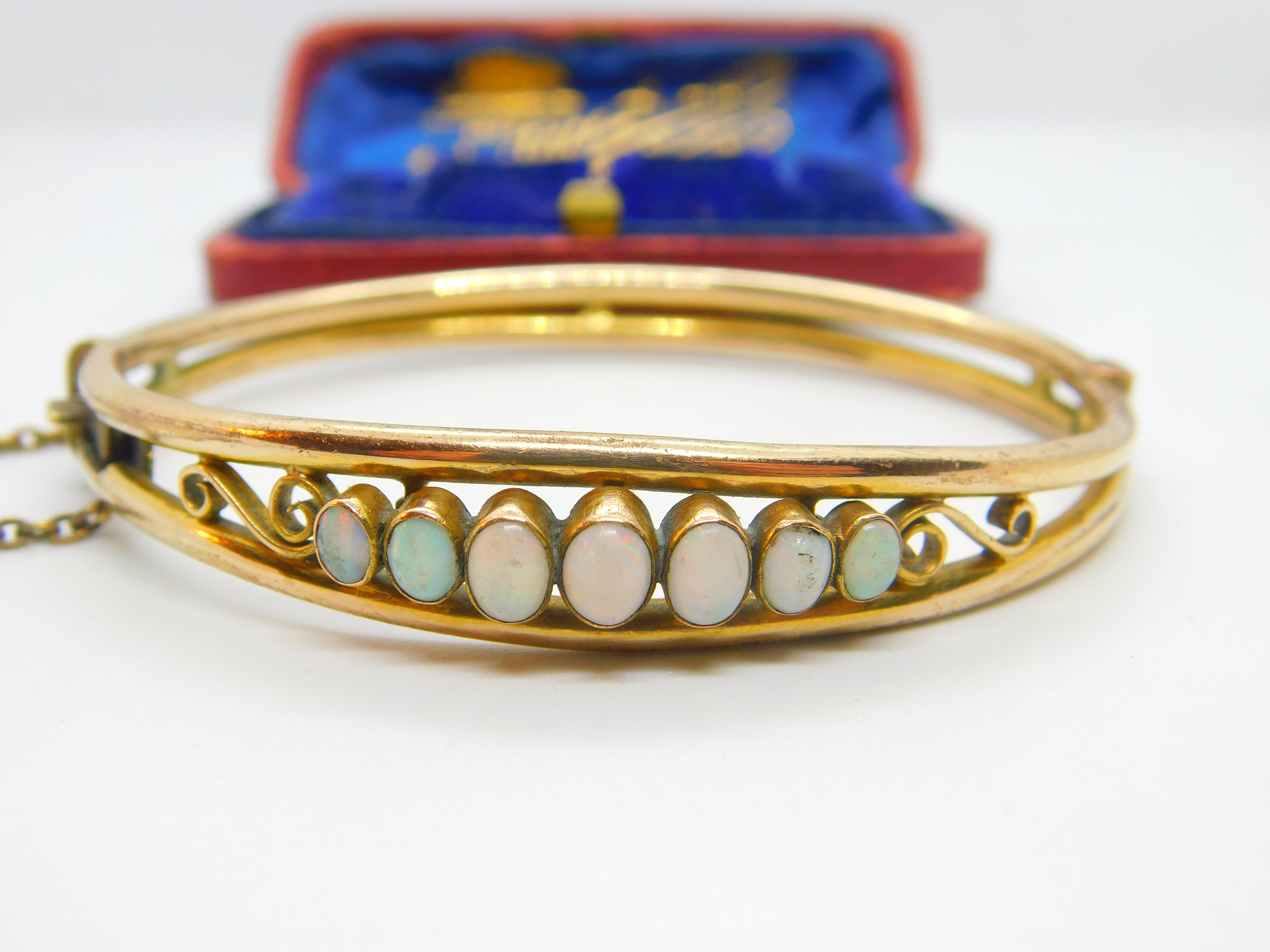 Victorian Rolled Gold & Cabochon Fire Opal Set Bangle Bracelet c1880 Antique