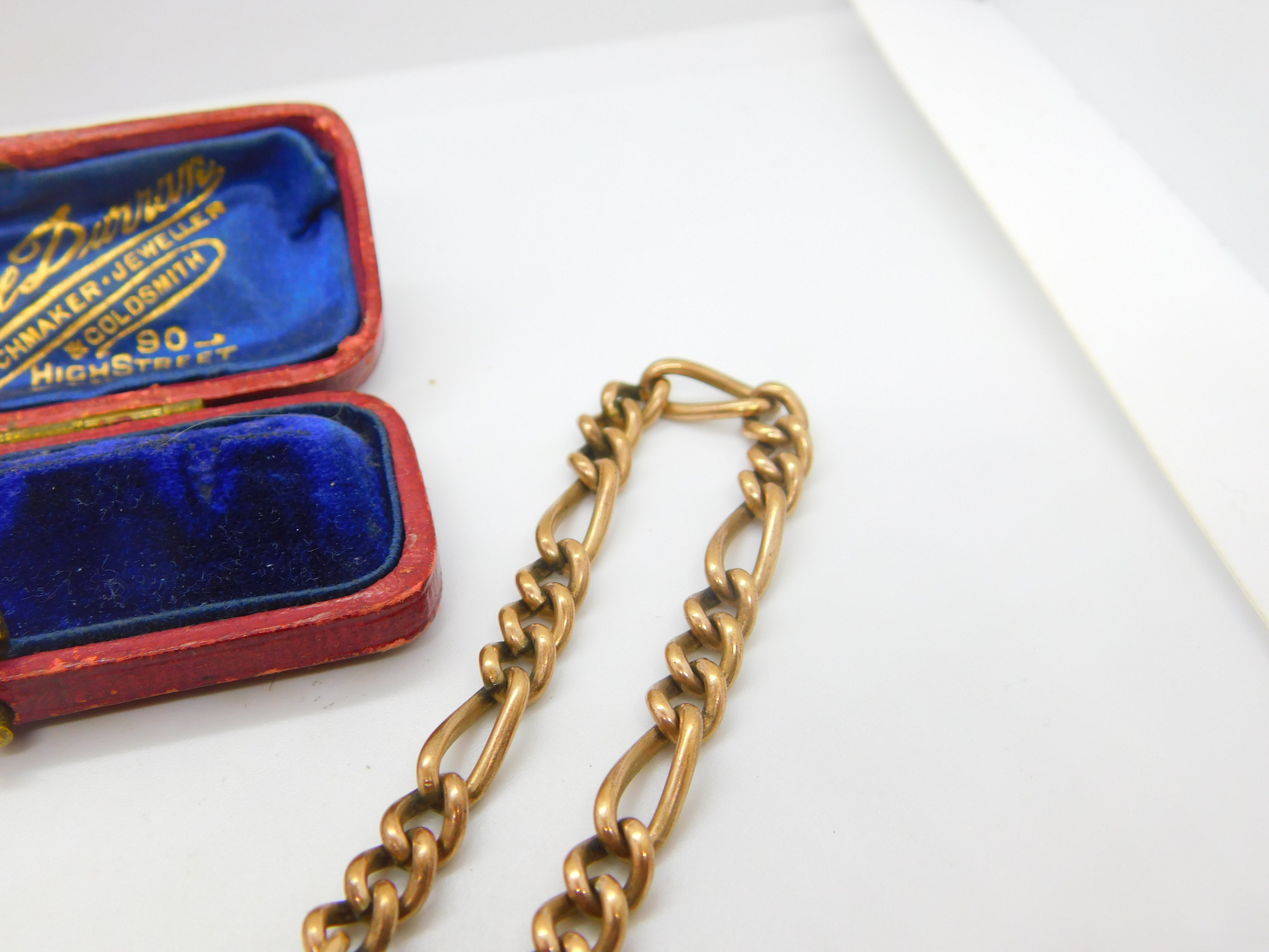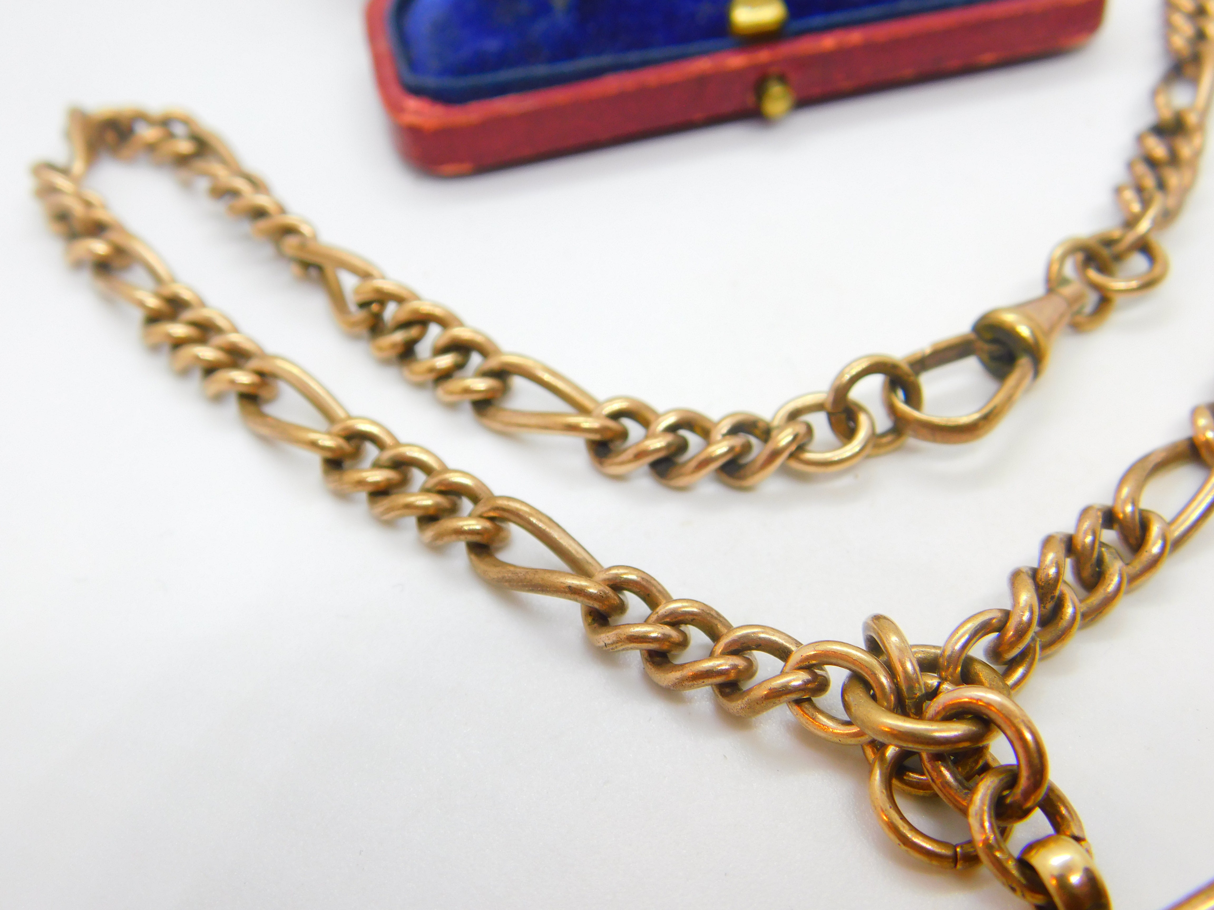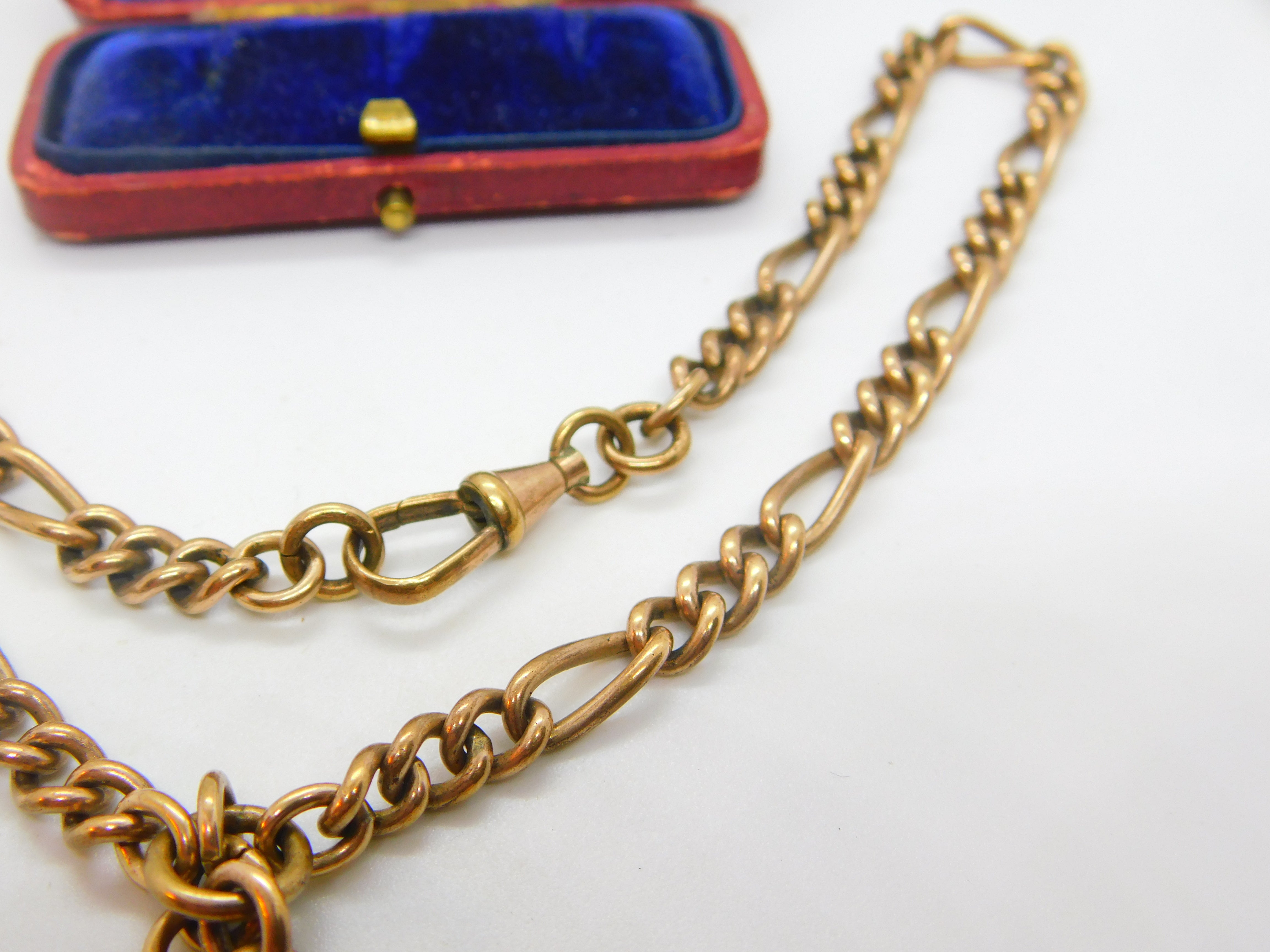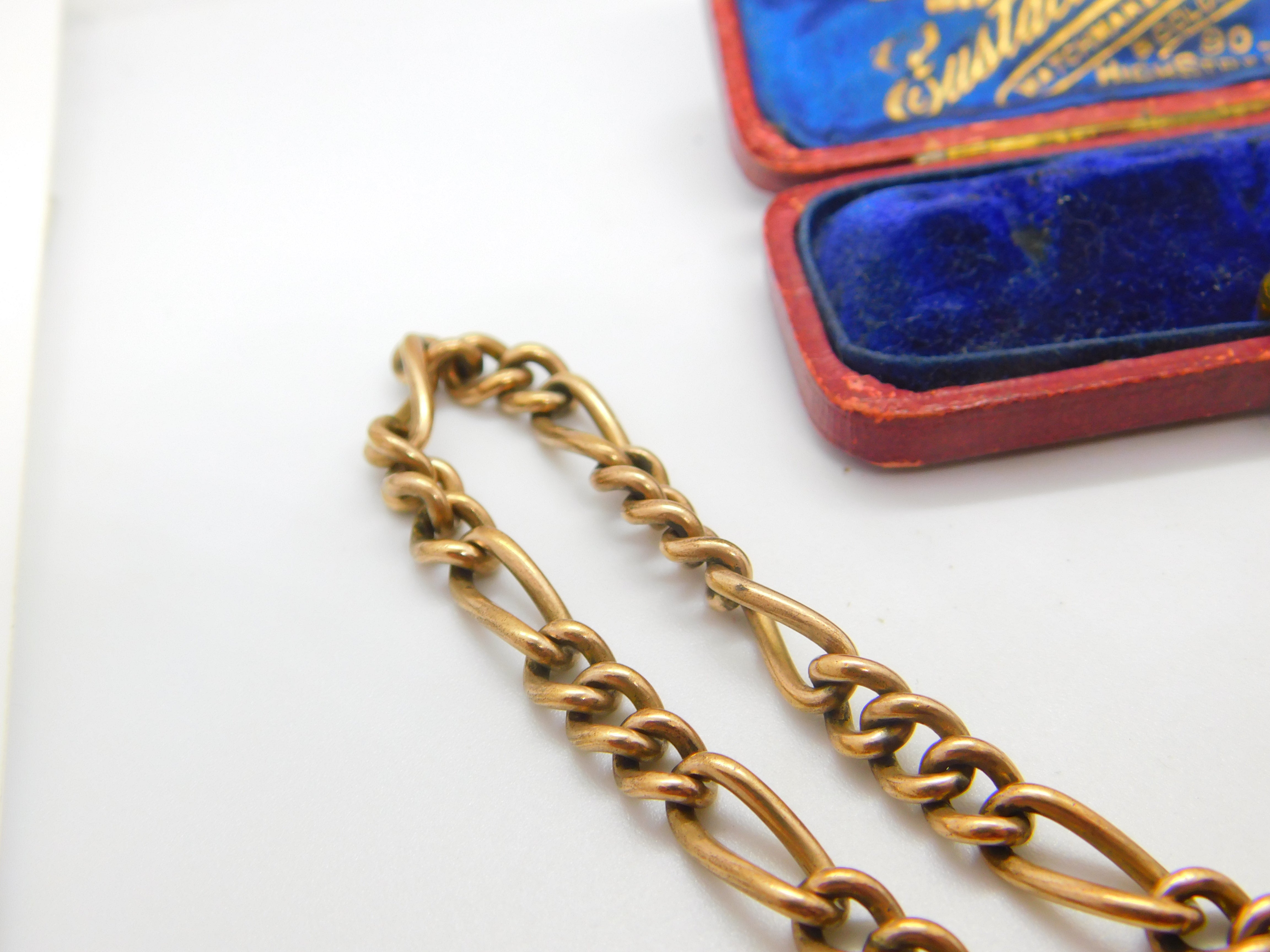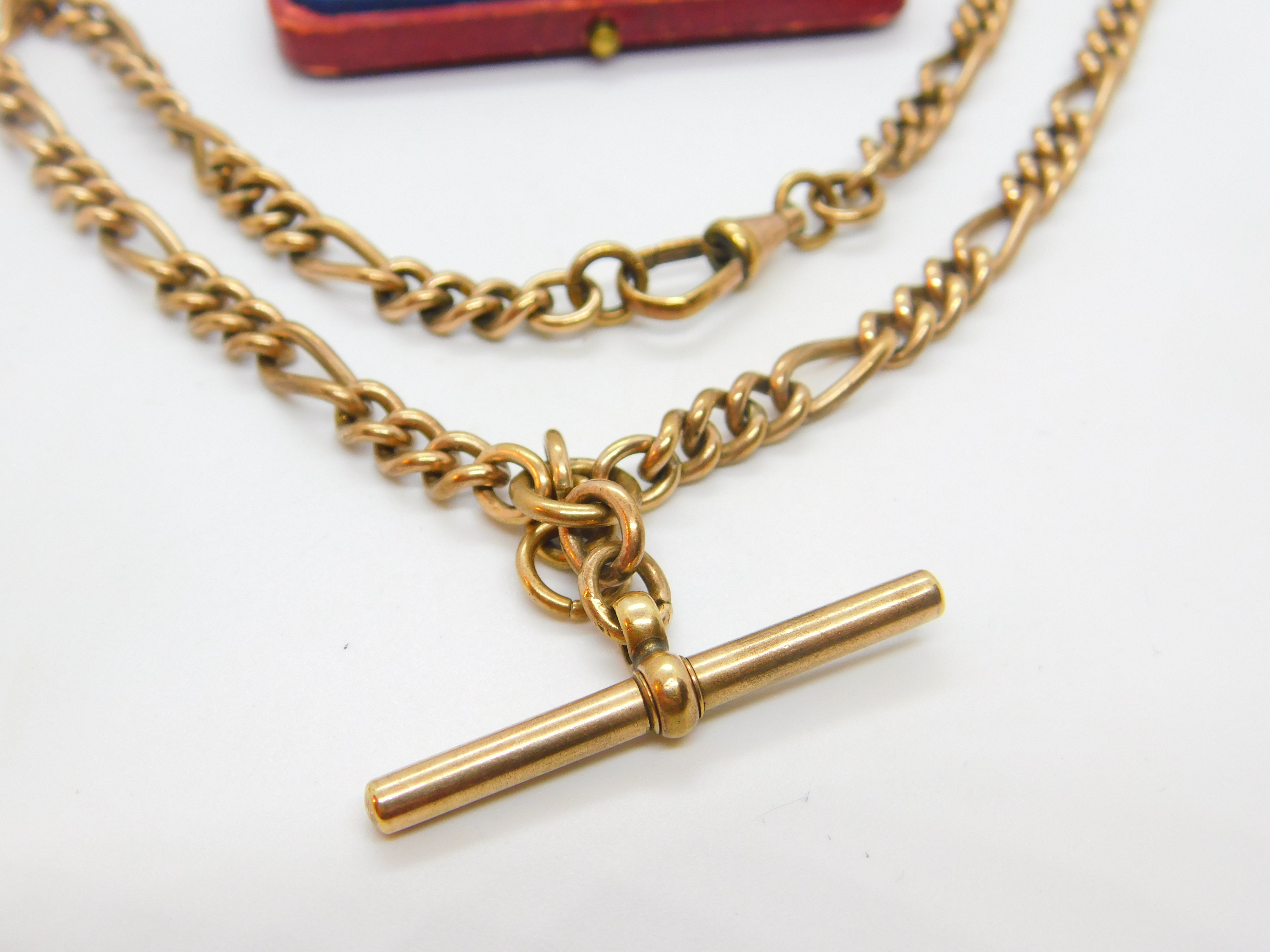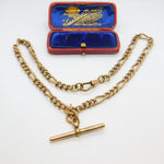 Victorian Rolled Gold Figaro Link Albert Watch Chain Necklace with T-Bar c1860