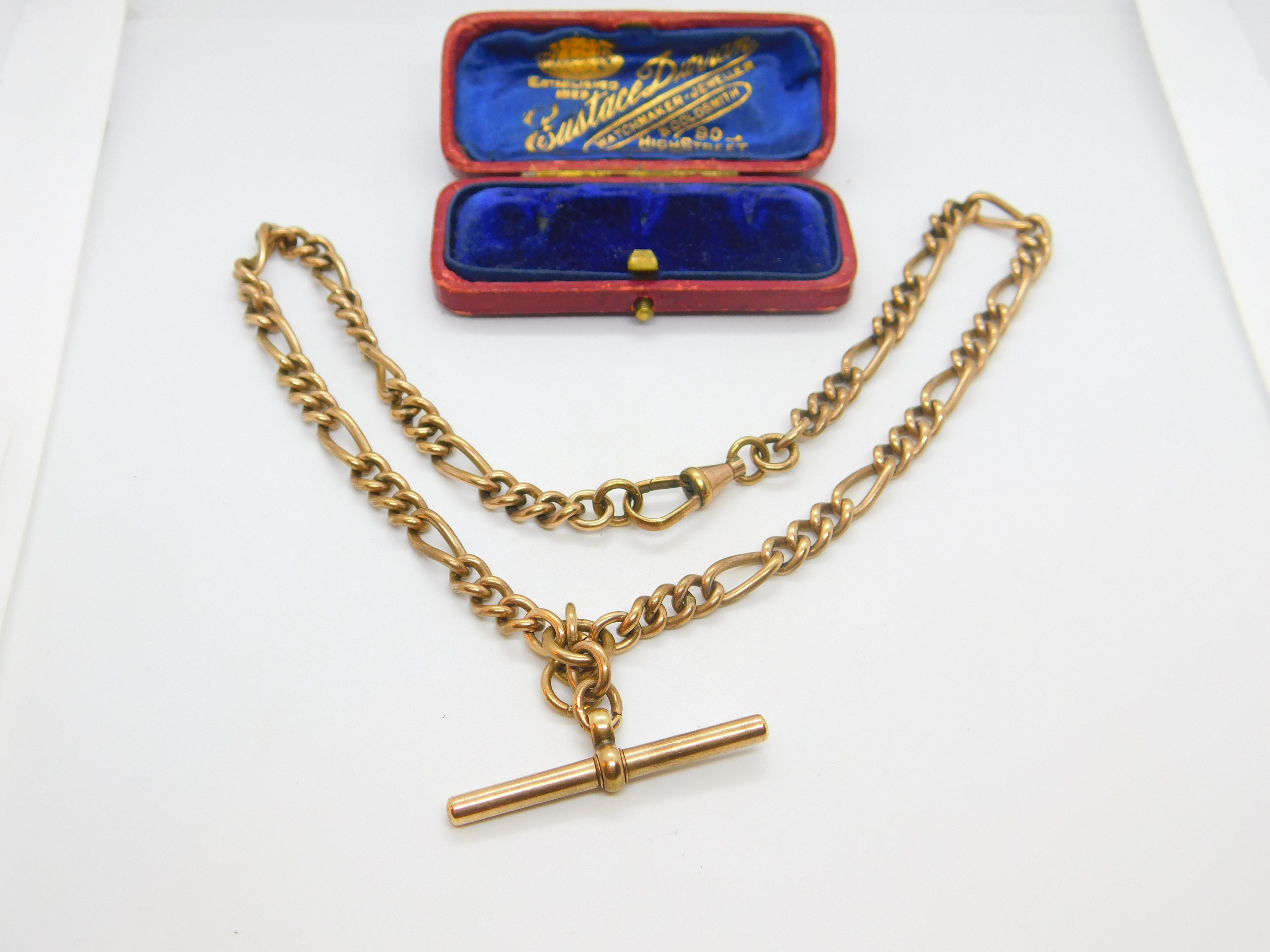 Details: A fantastic and wonderfully designed antique Victorian rolled rose gold figaro link albert watch chain with t-bar attatched c1860. This is a wonderful item that would make a perfect gift or addition to any collection. The BOX pictured is for PRESENTATION ONLY and is NOT included in the listings but used to frame the pictures unless specifically stated otherwise.