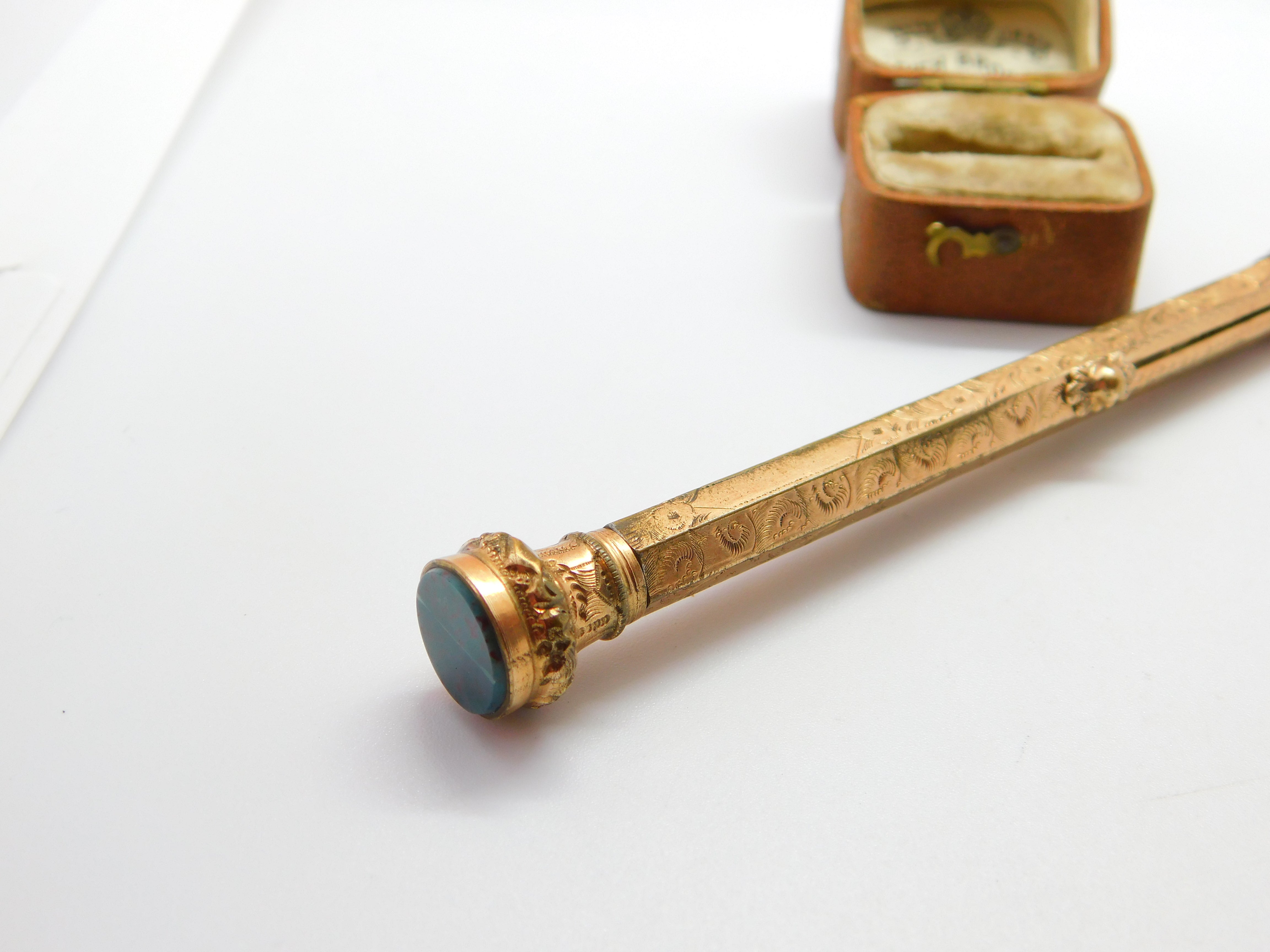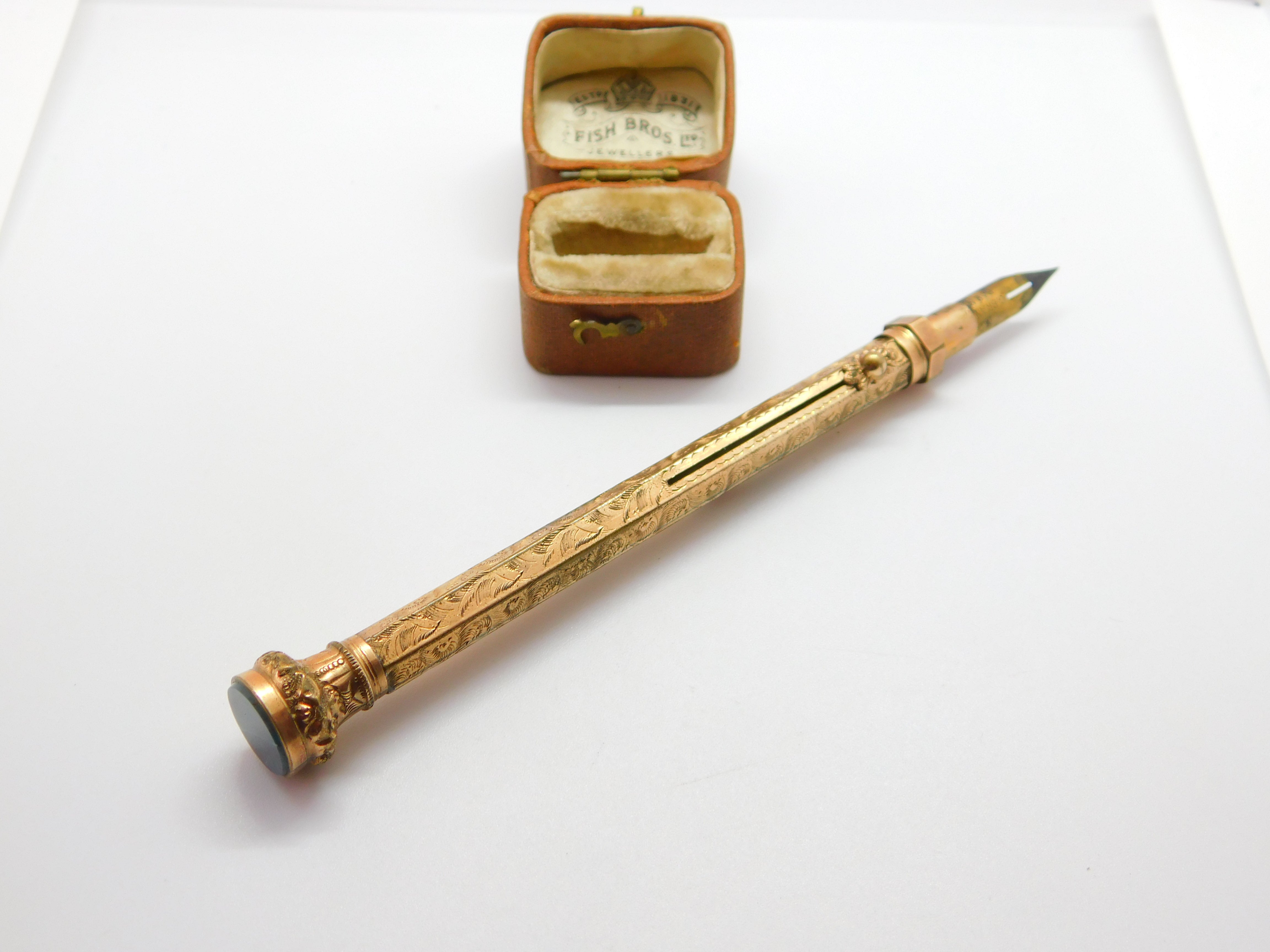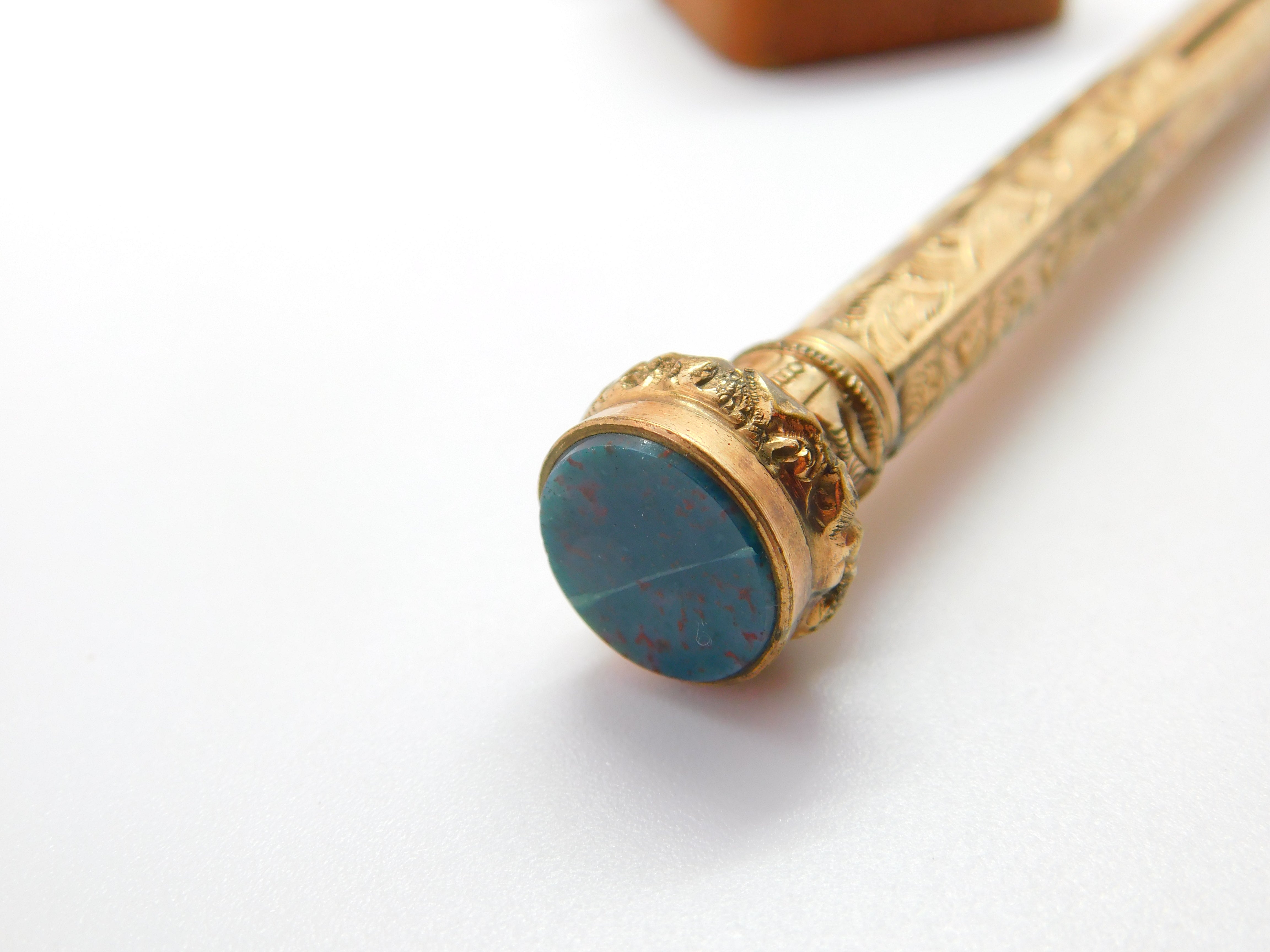 Victorian Rolled Gold Fountain Pen & Propelling Pencil-in-One Bloodstone Antique