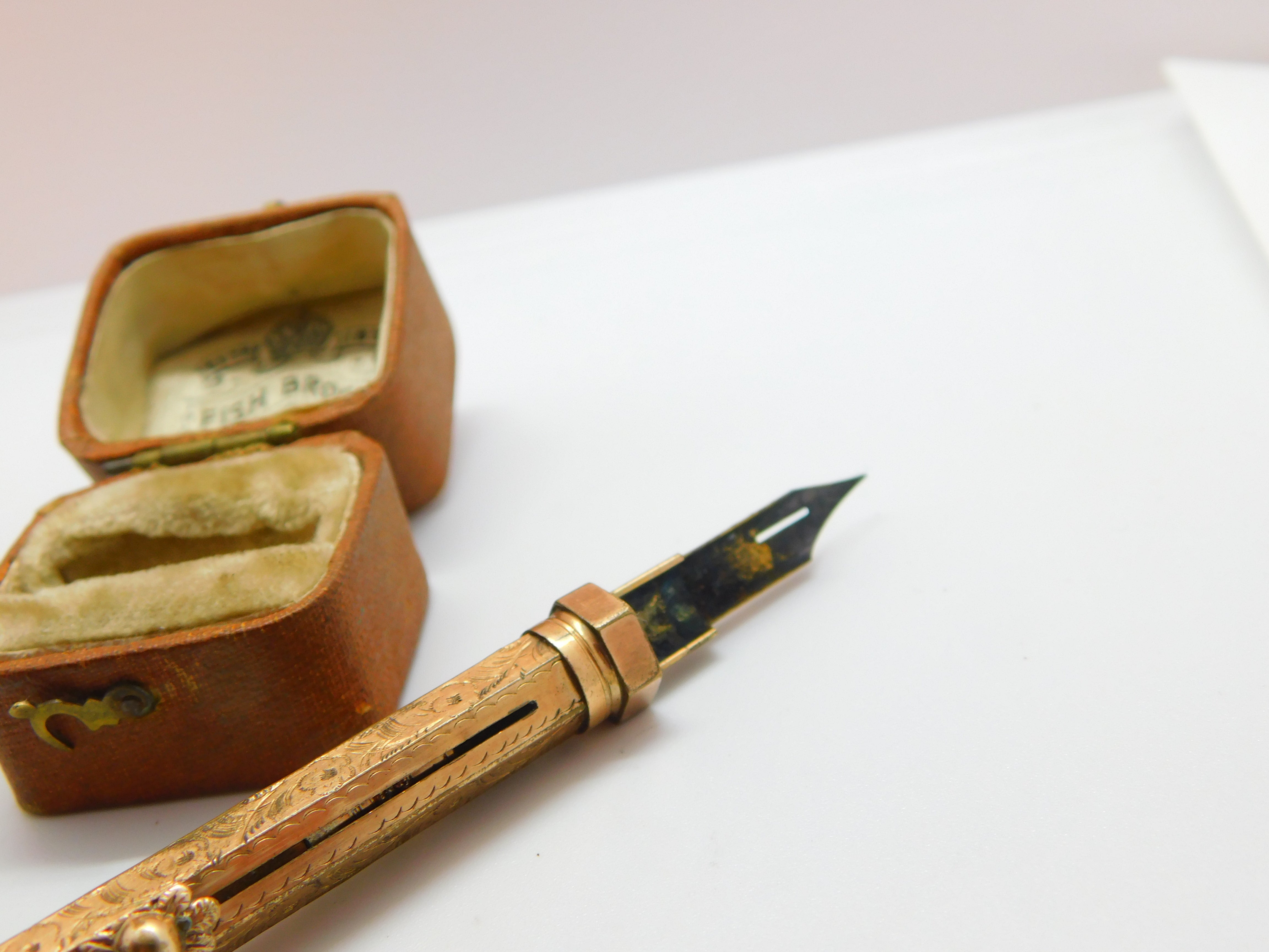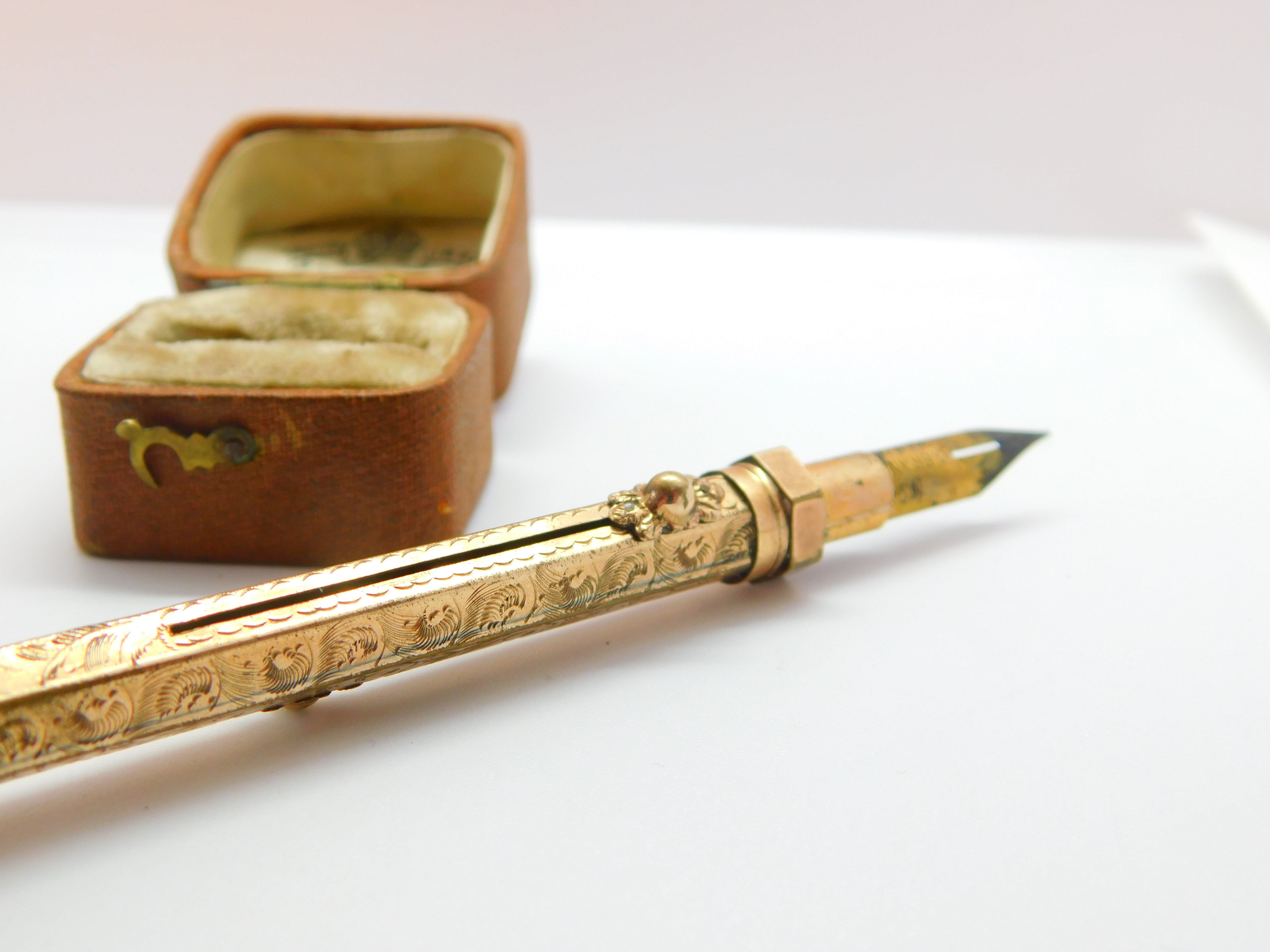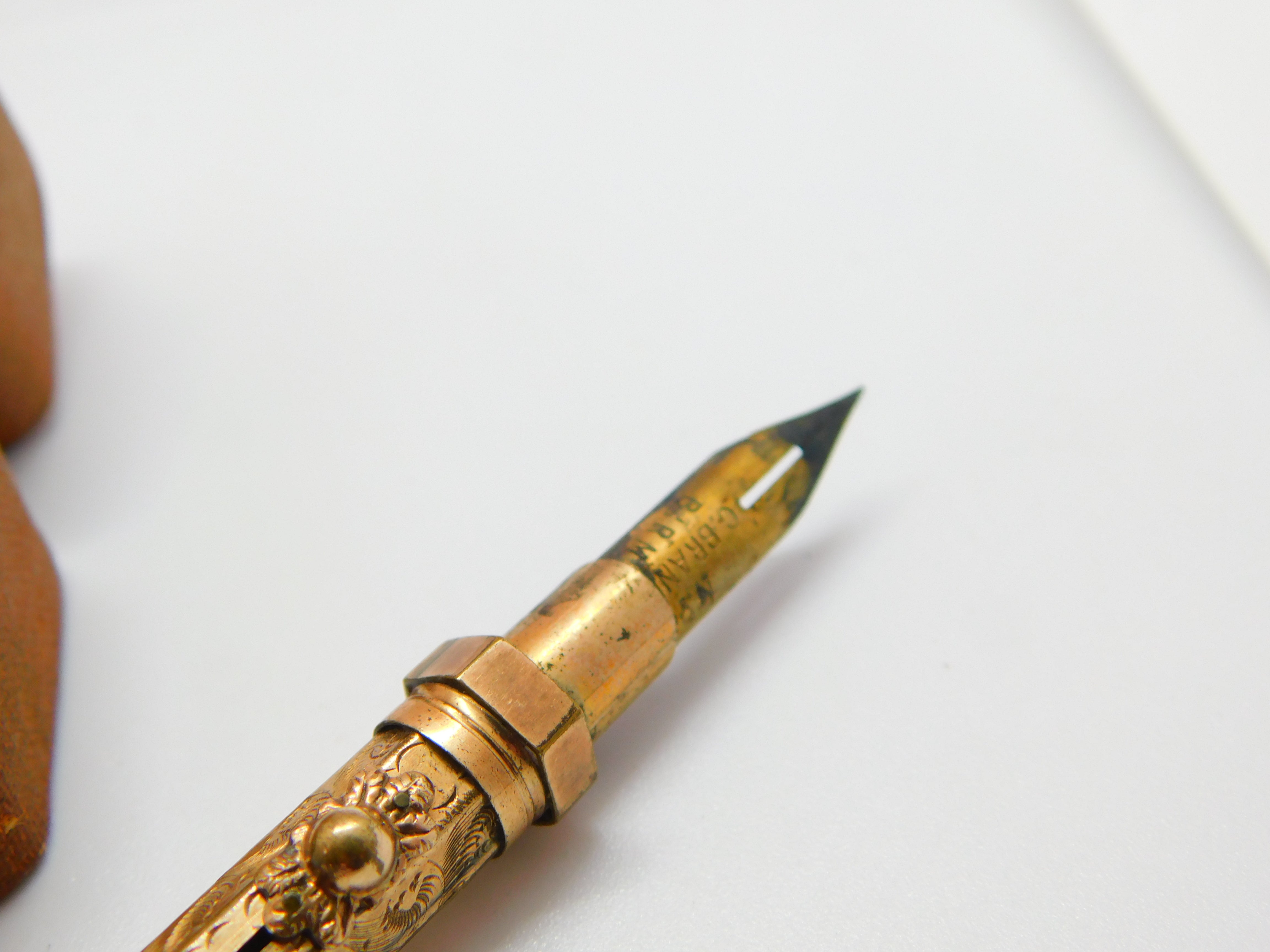 Victorian Rolled Gold Fountain Pen & Propelling Pencil-in-One Bloodstone Antique