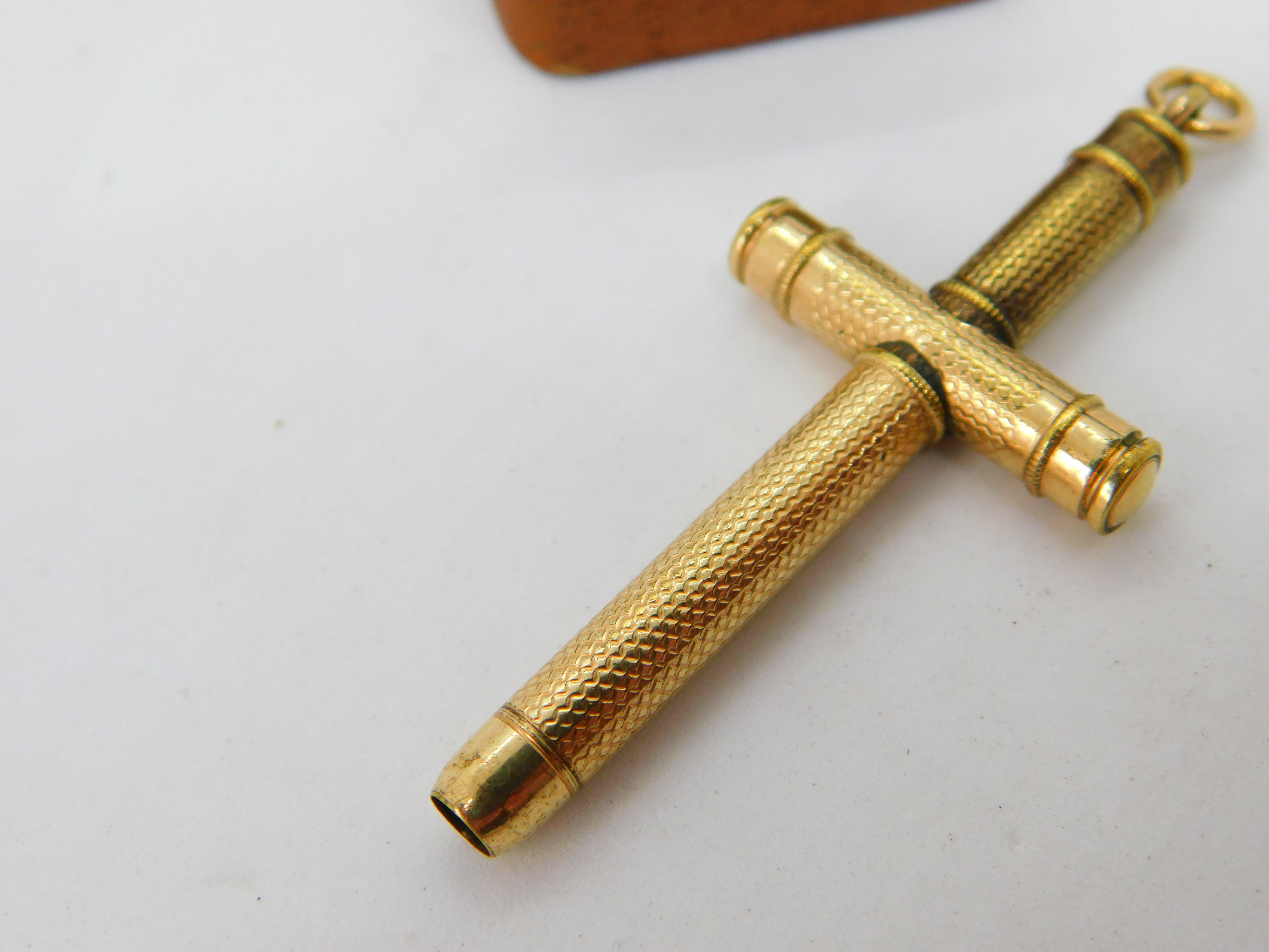 Victorian Rolled Gold Sword Shape Propelling Pencil Fob Pendant Antique c1880