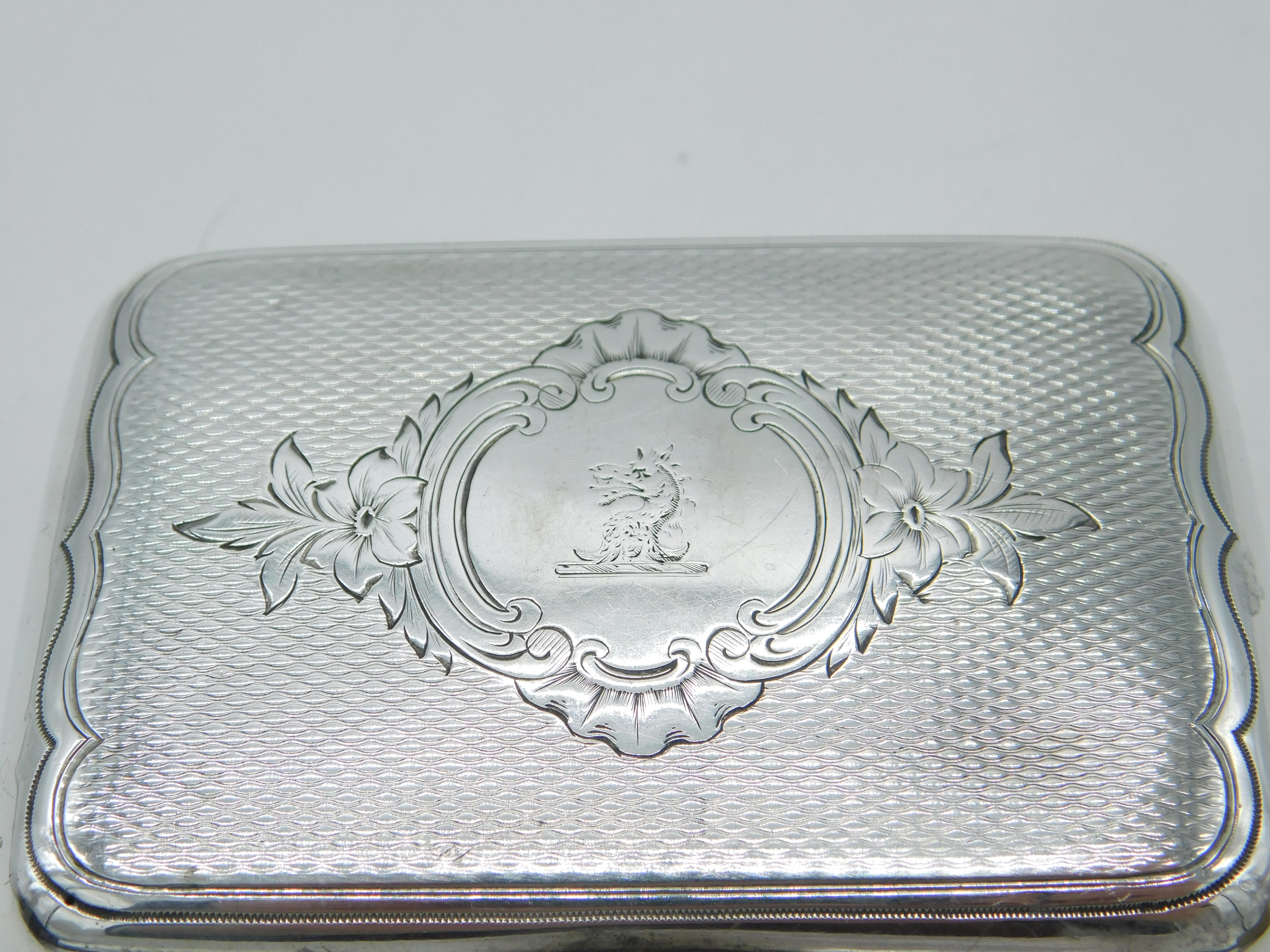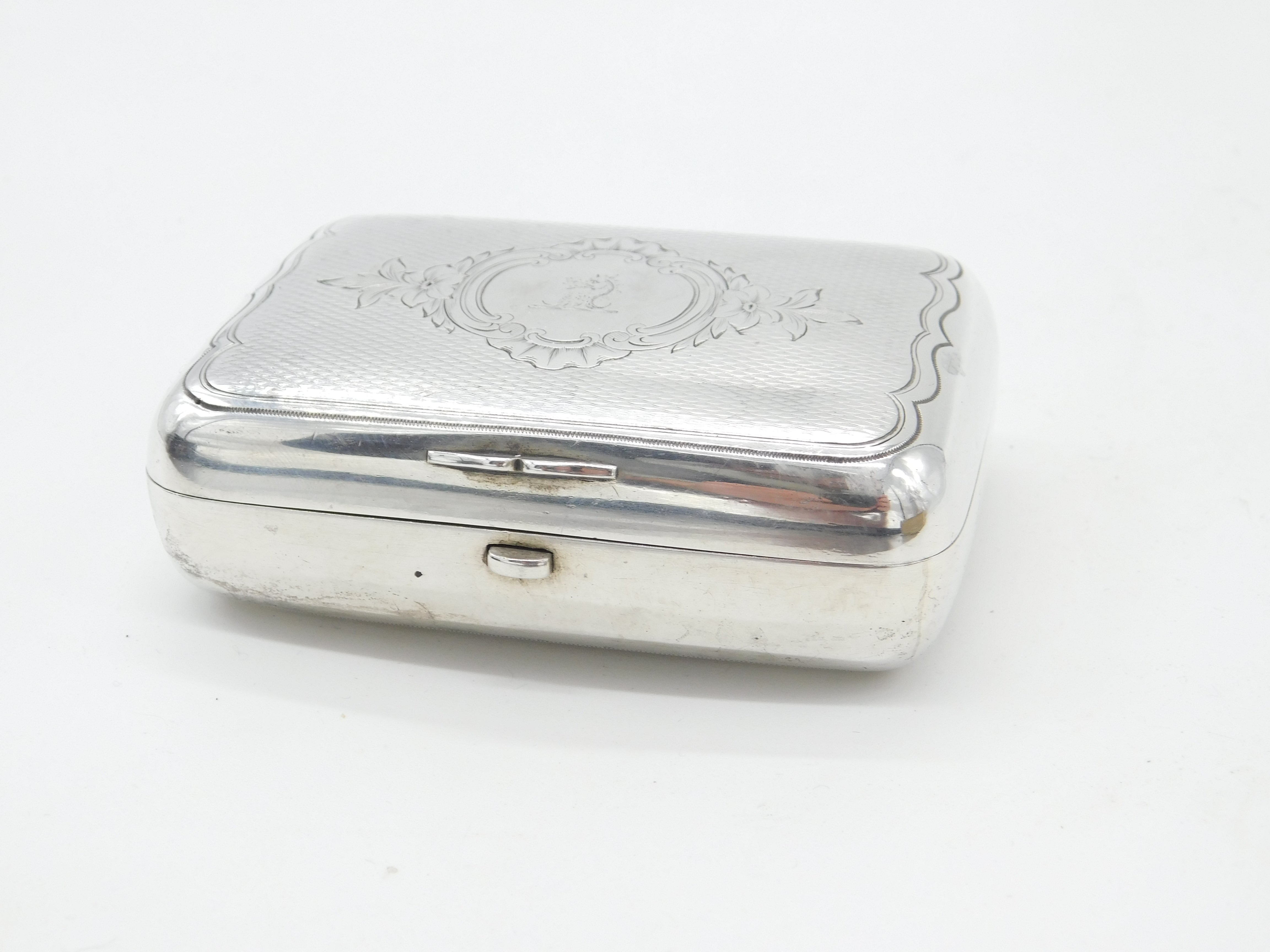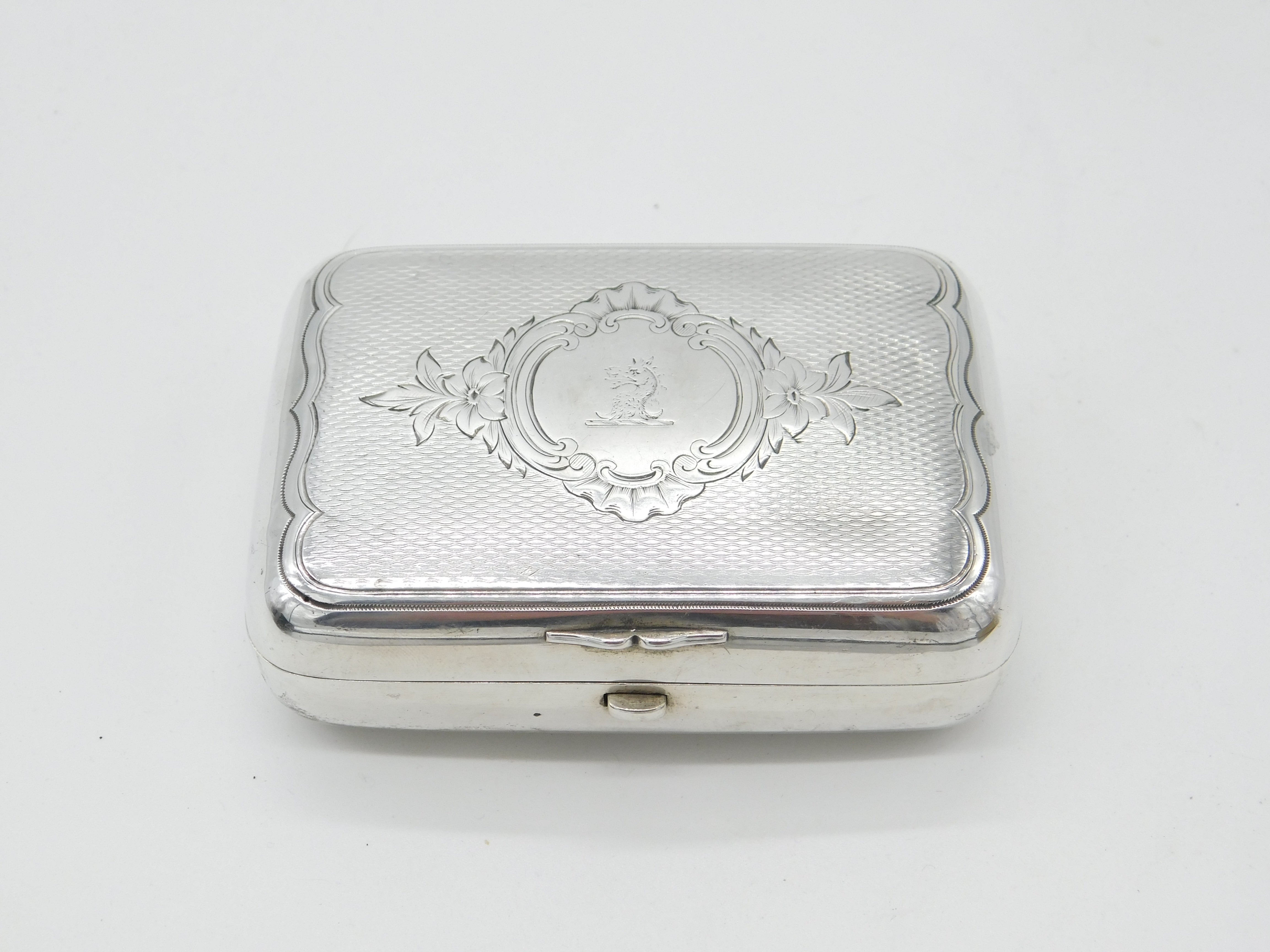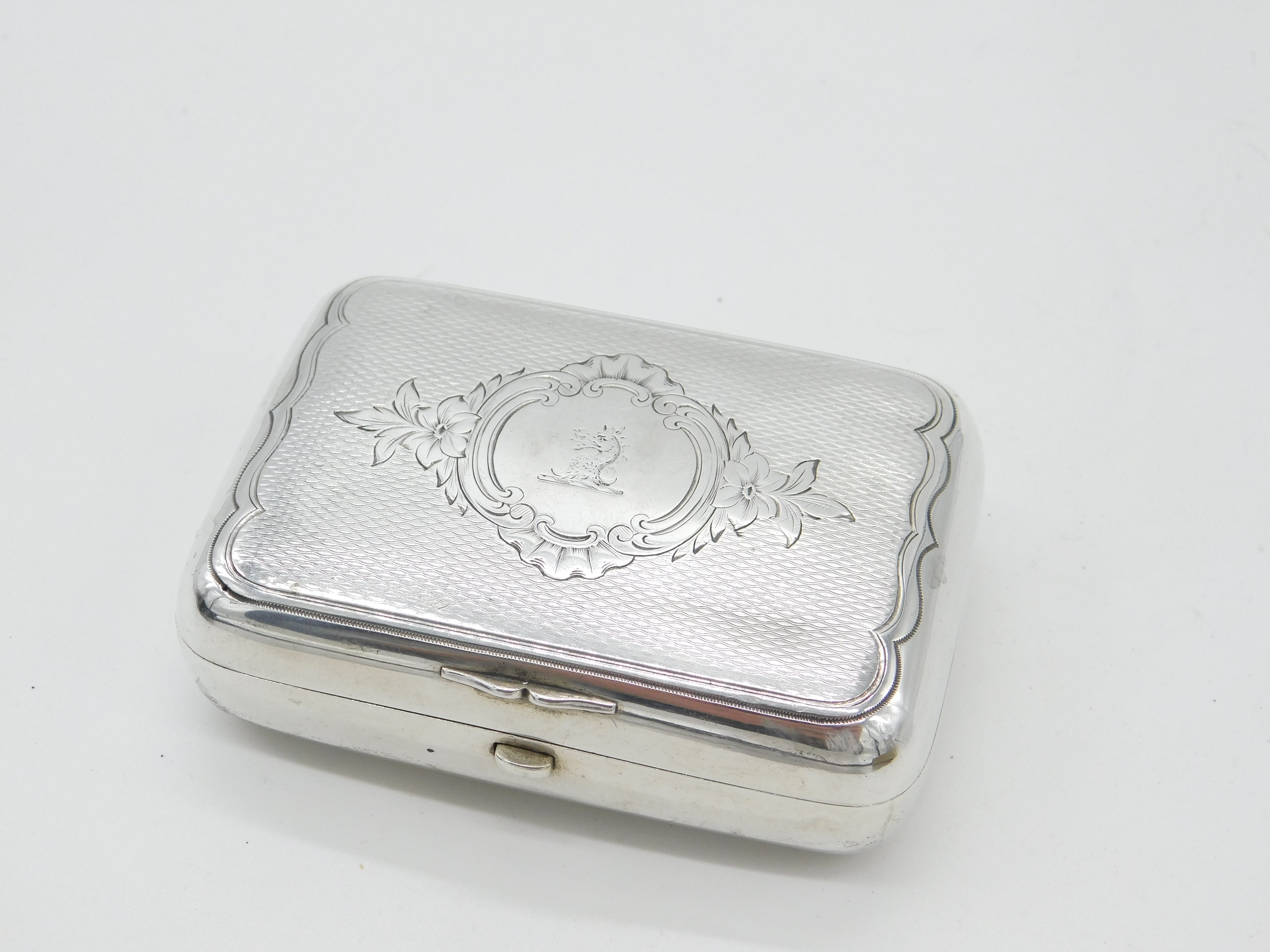 Victorian Russian Sterling Silver Cigar Box Dragon Crest Antique Moscow c1860