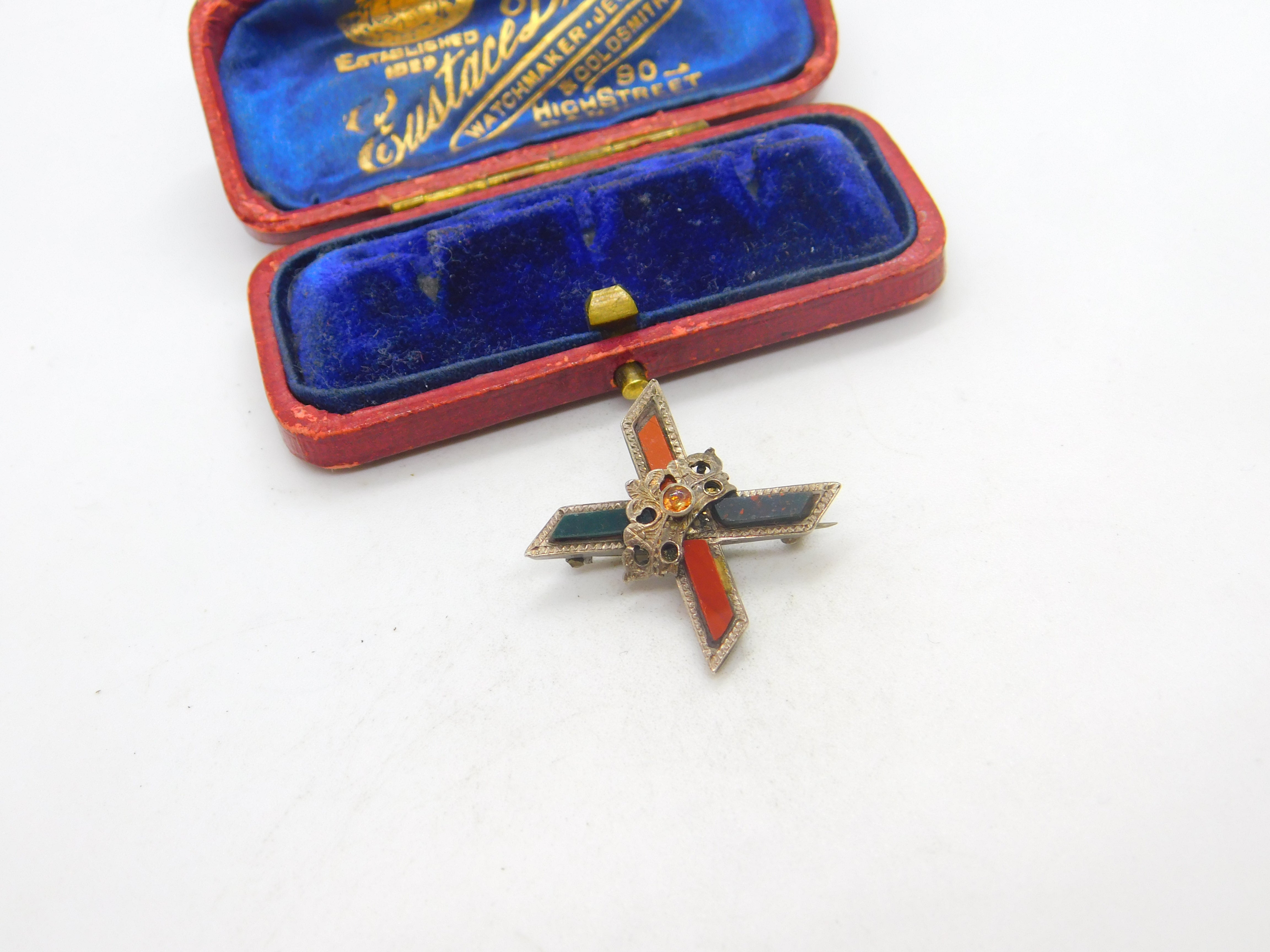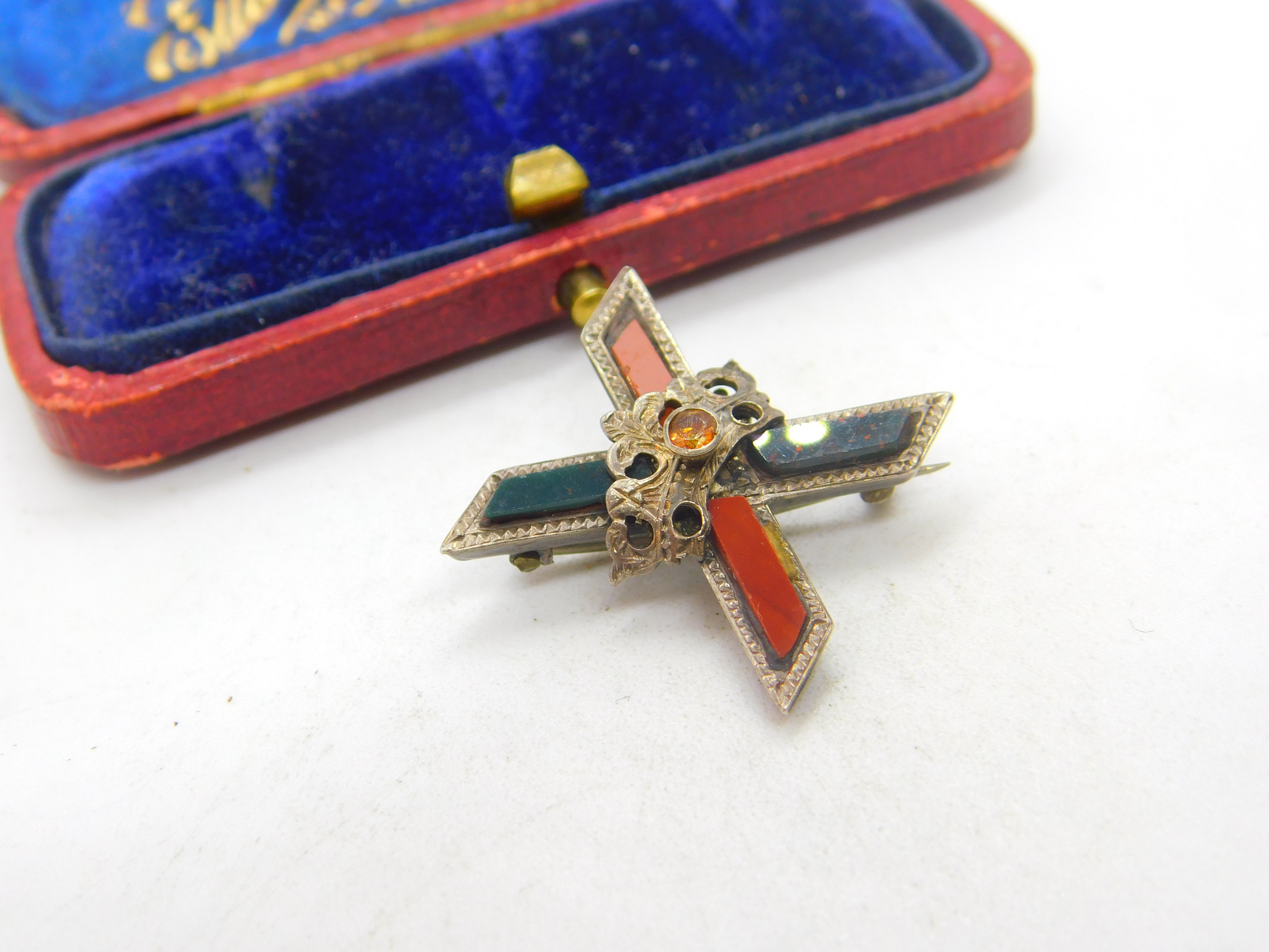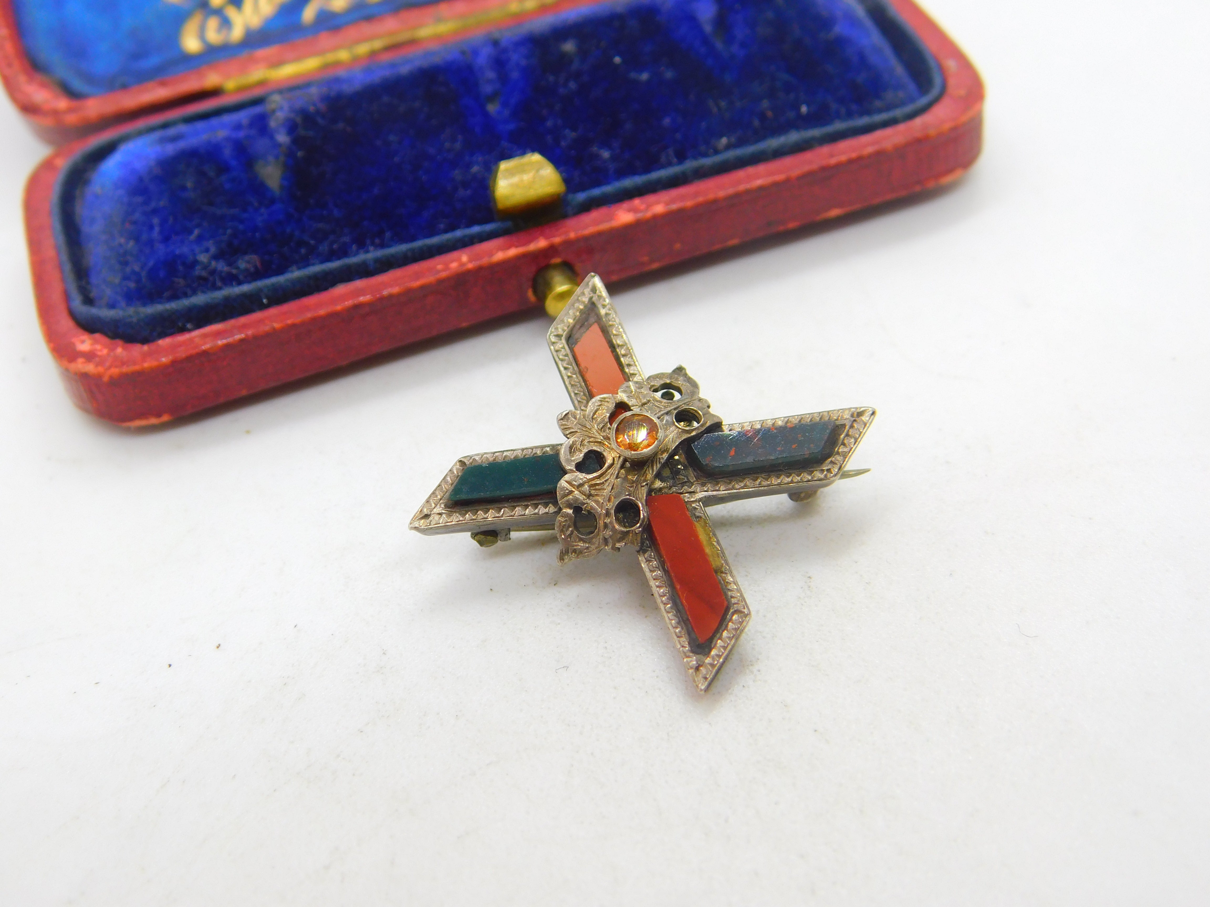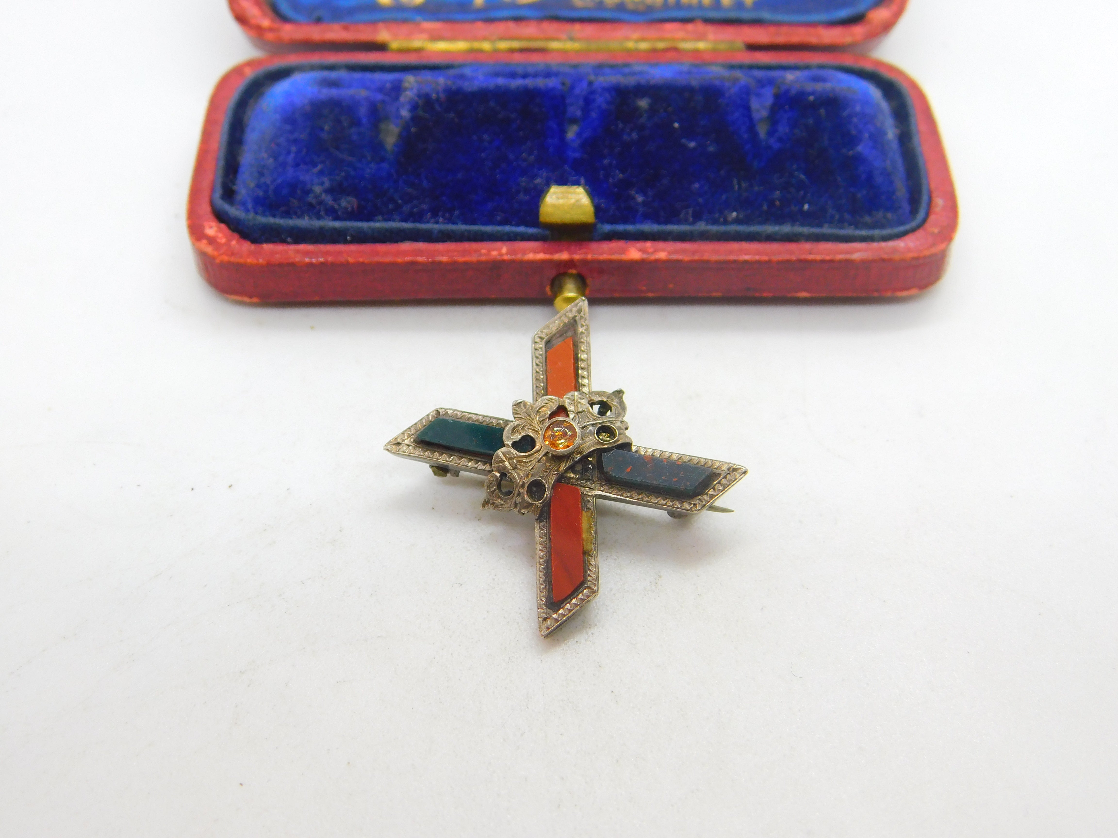 Details: A fantastic and wonderfully designed antique Victorian sterling silver Scottish cross form brooch set with red agate & bloodstone c1860. This is a wonderful item that would make a perfect gift or addition to any collection. The BOX pictured is for PRESENTATION ONLY and is NOT included in the listings but used to frame the pictures unless specifically stated otherwise.