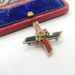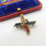 Victorian Scottish Sterling Silver, Agate & Bloodstone Cross Brooch c1860 Antique