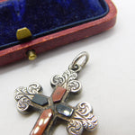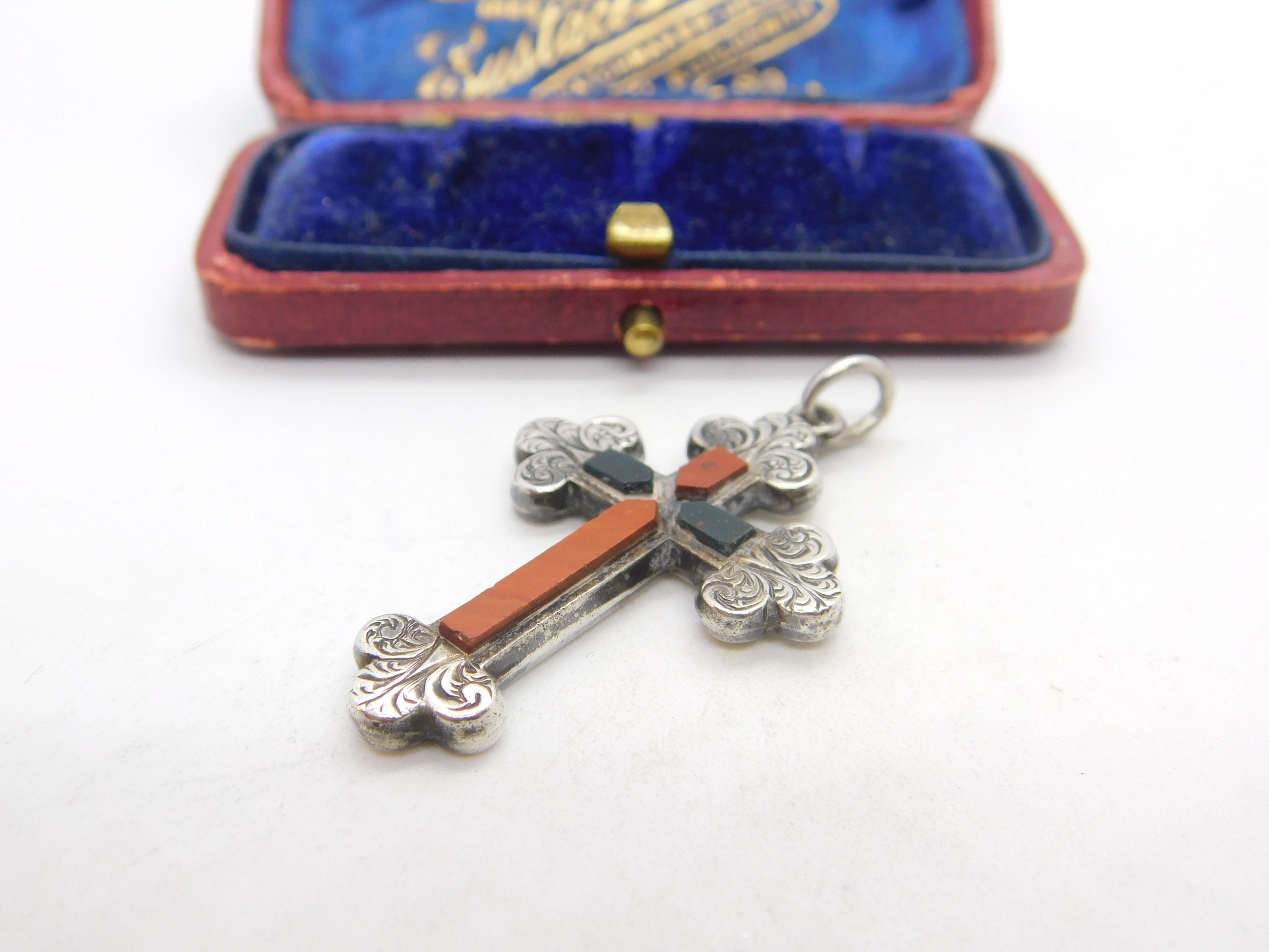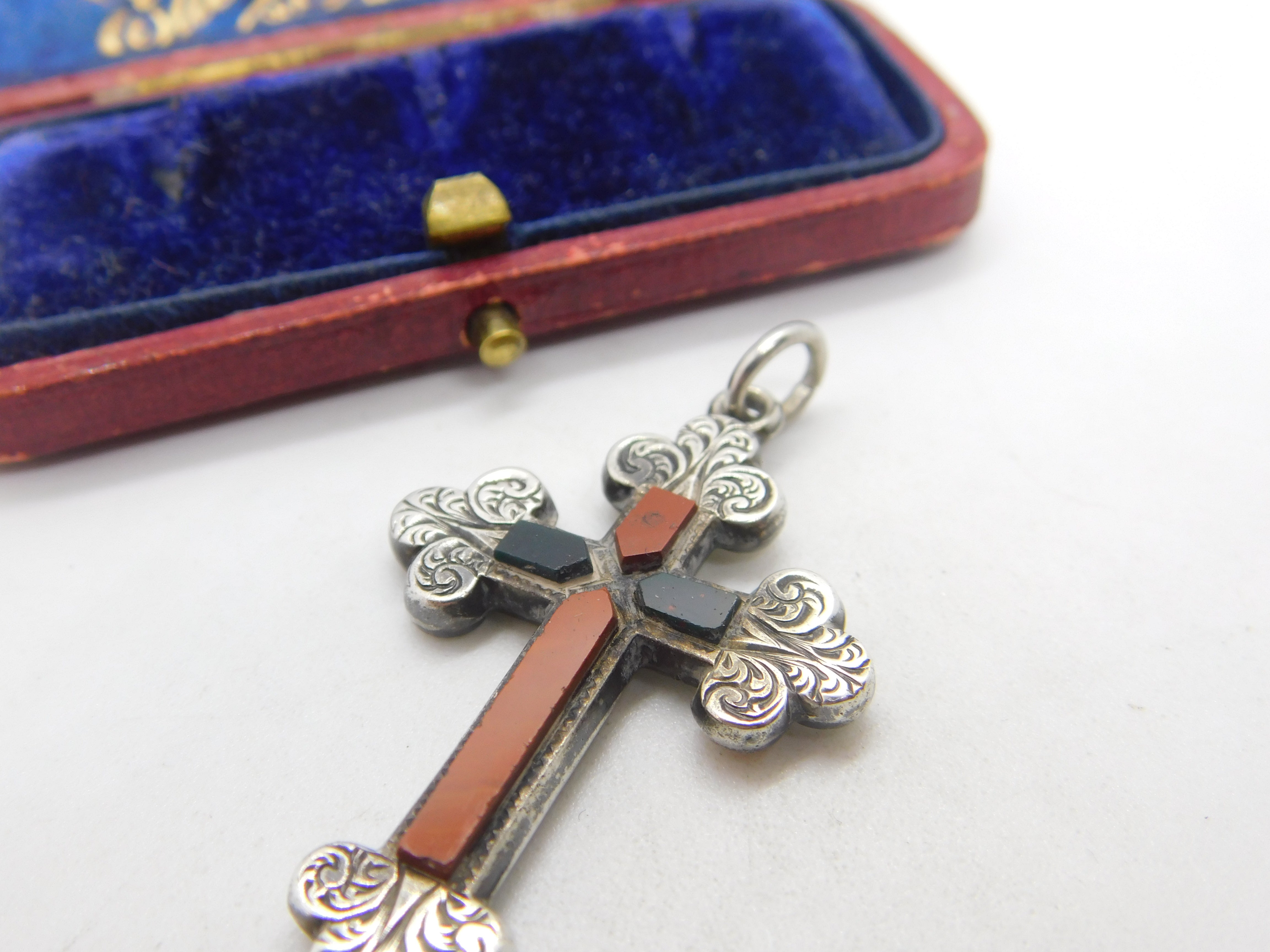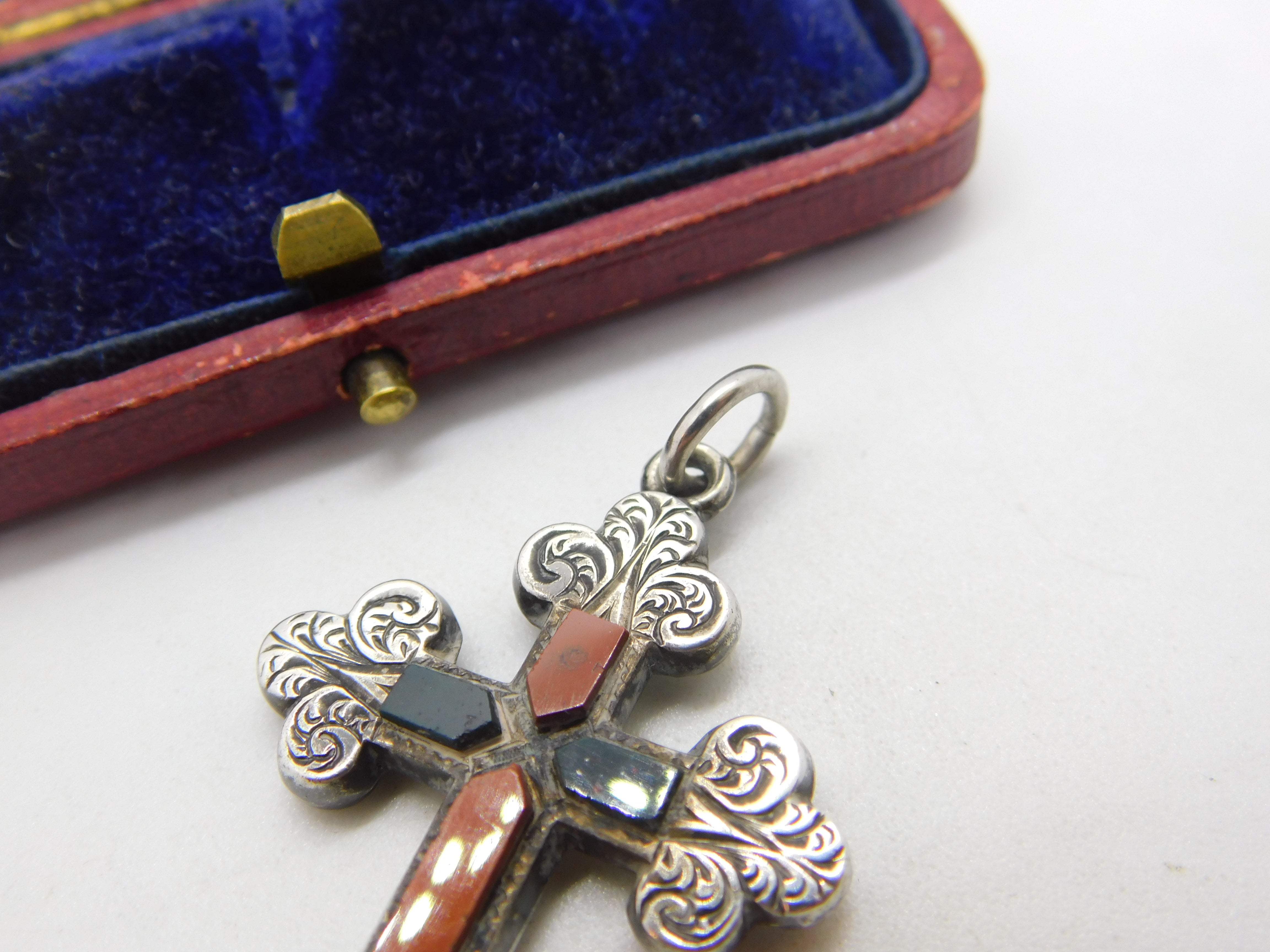 Victorian Scottish Sterling Silver, Agate & Bloodstone Cross Pendant c1860