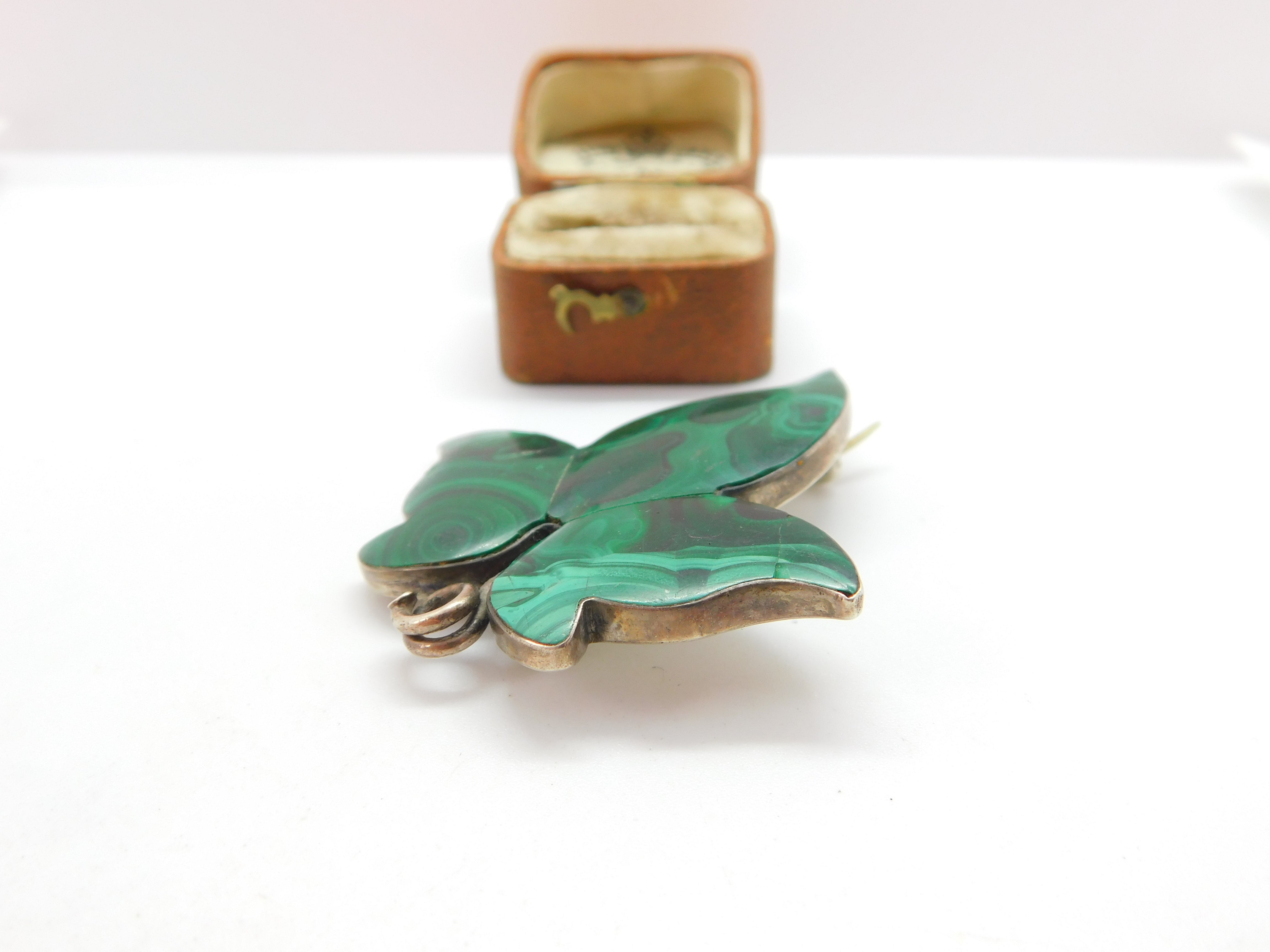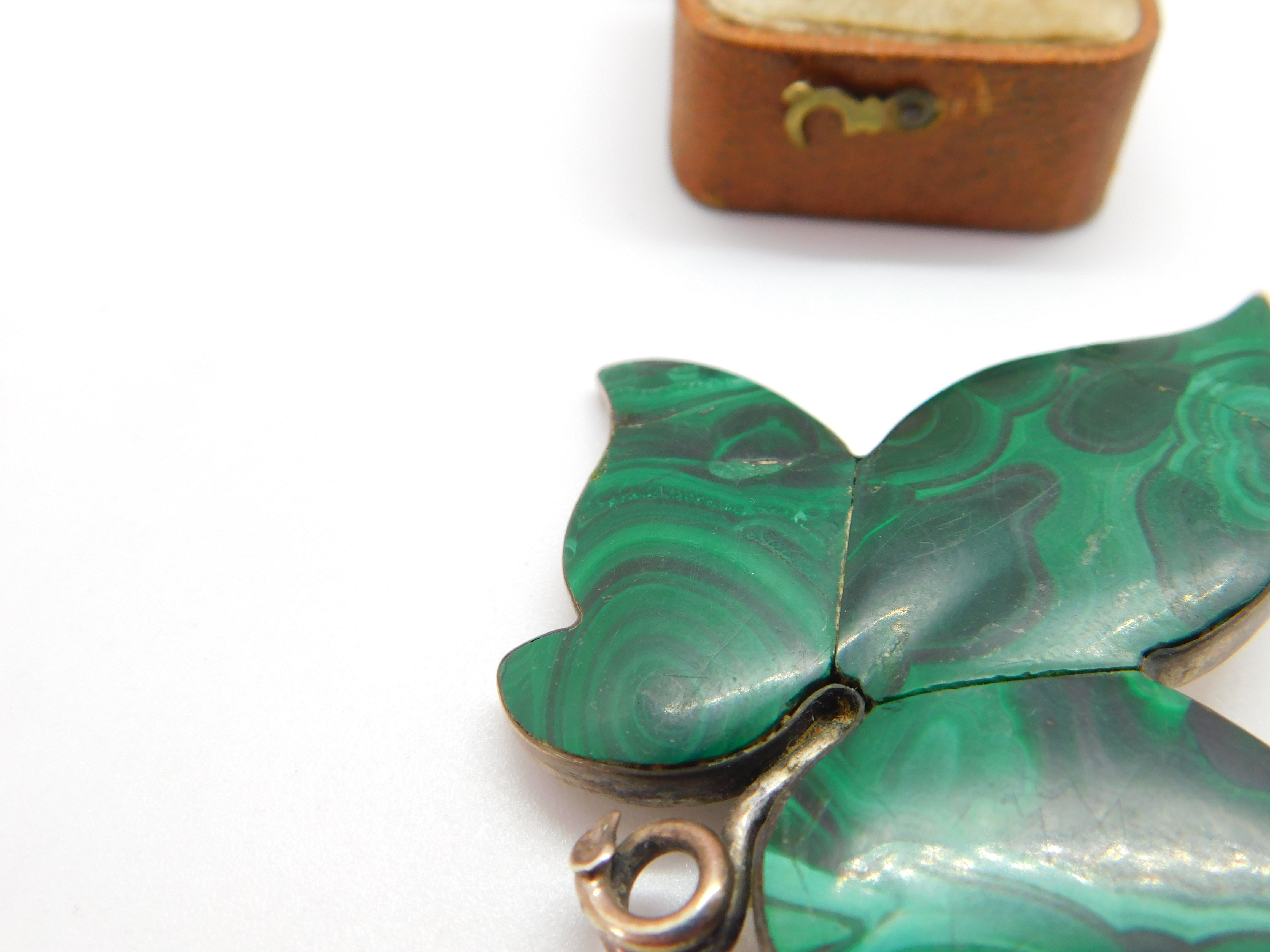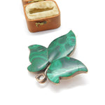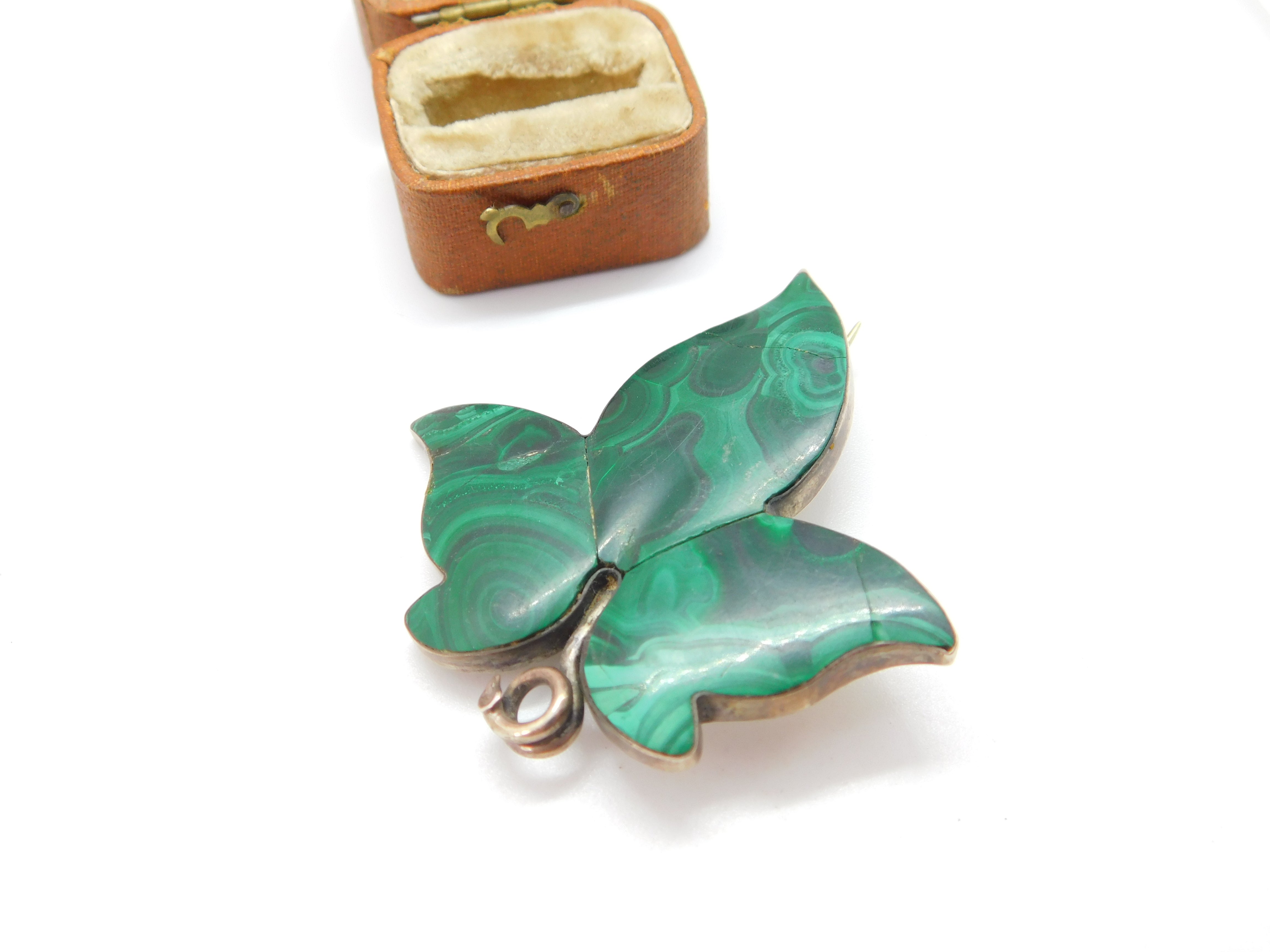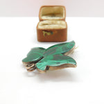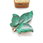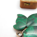 Victorian Scottish Sterling Silver Malachite Leaf Brooch Pin c1860 Antique