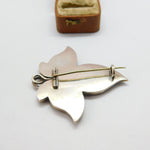 Details: A fantastic and wonderfully designed antique Victorian large Scottish sterling silver leaf pattern brooch set with carved green malachite c1860. The silver has been XRF tested as it is unmarked. Minor hairline crack to the top leaf. This is a wonderful item that would make a perfect gift or addition to any collection. The BOX pictured is for PRESENTATION ONLY and is NOT included in the listings but used to frame the pictures unless specifically stated otherwise.