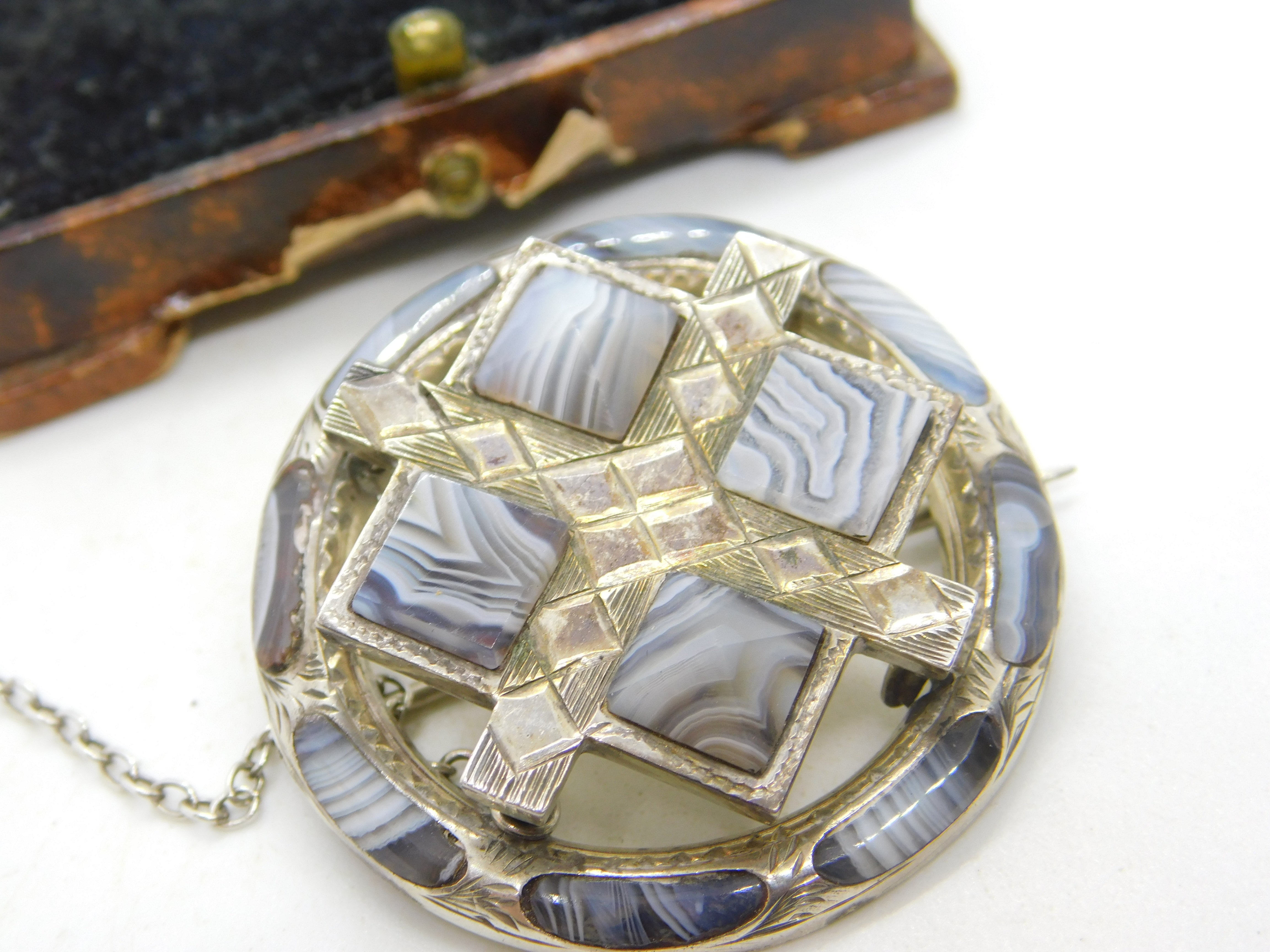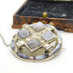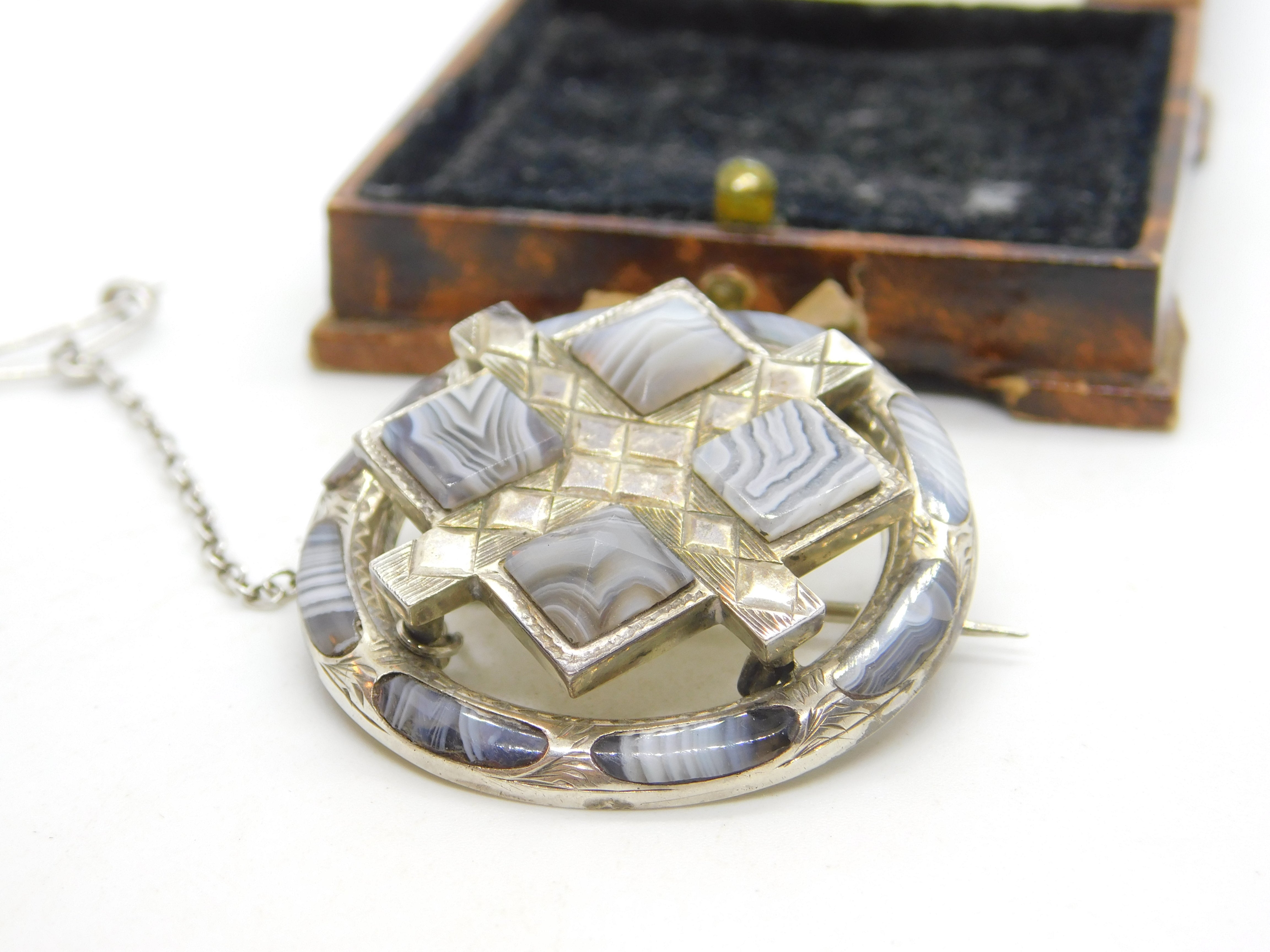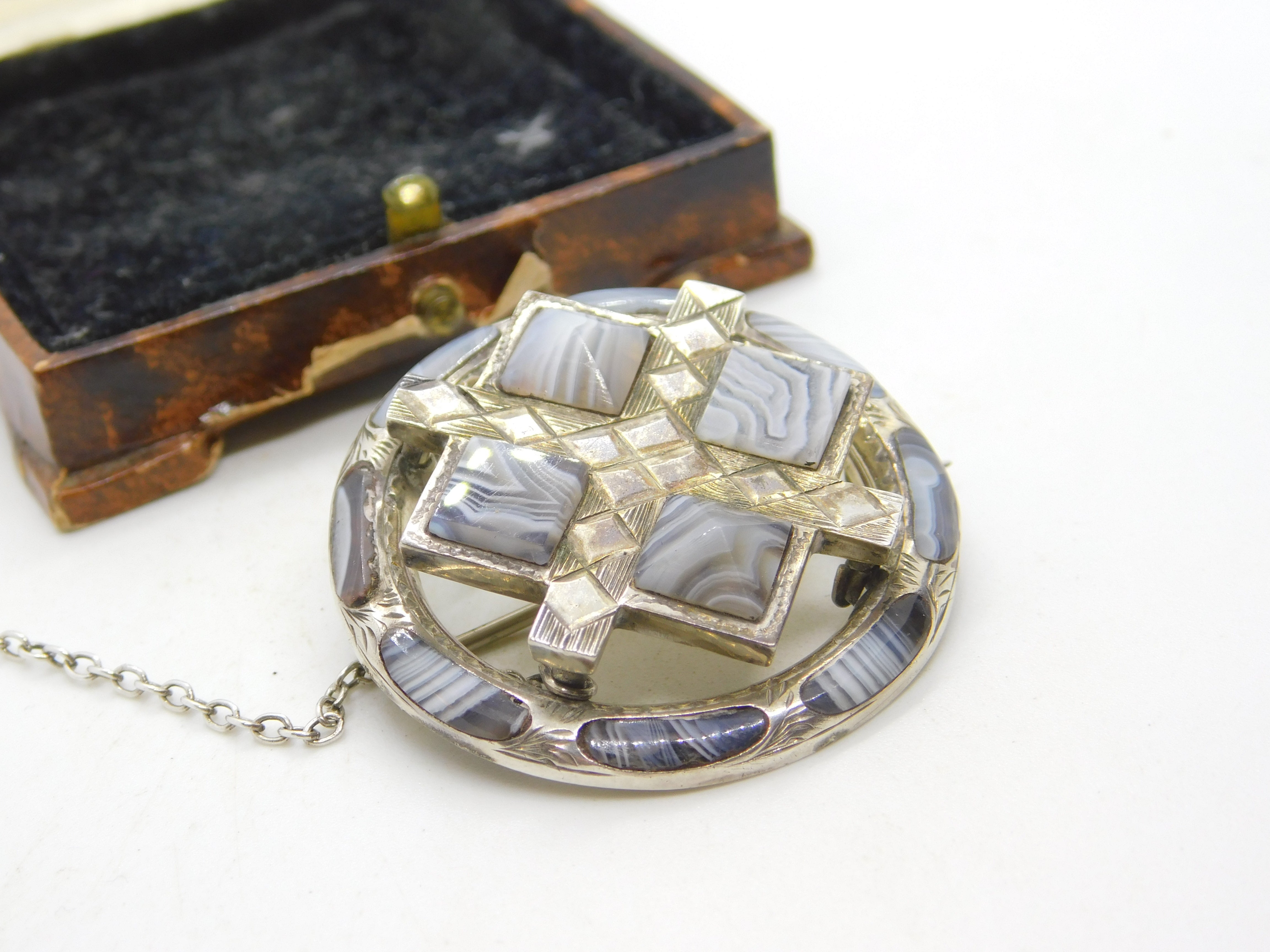 Victorian Scottish Sterling Silver Montrose Agate Target Brooch Antique c1860