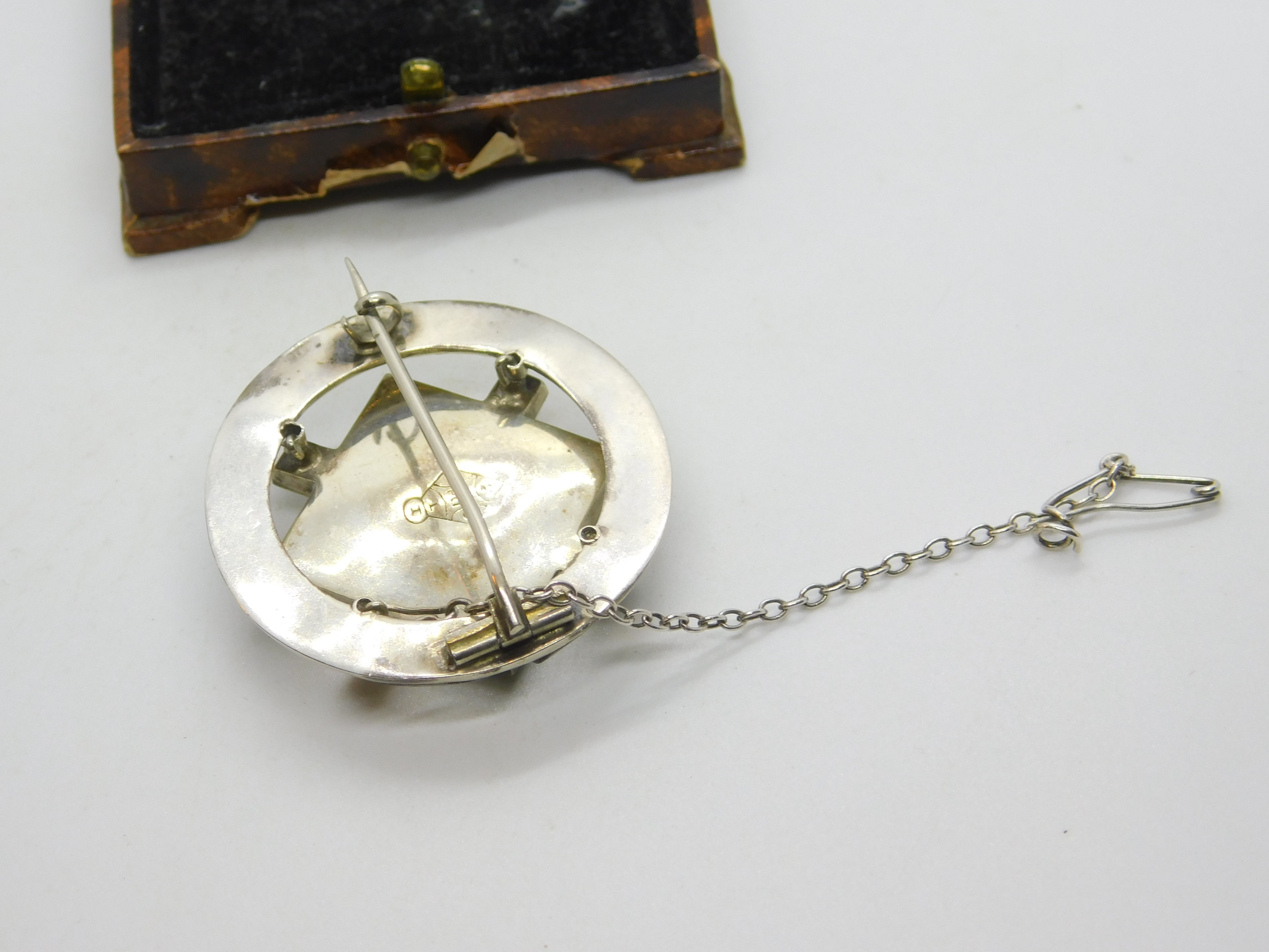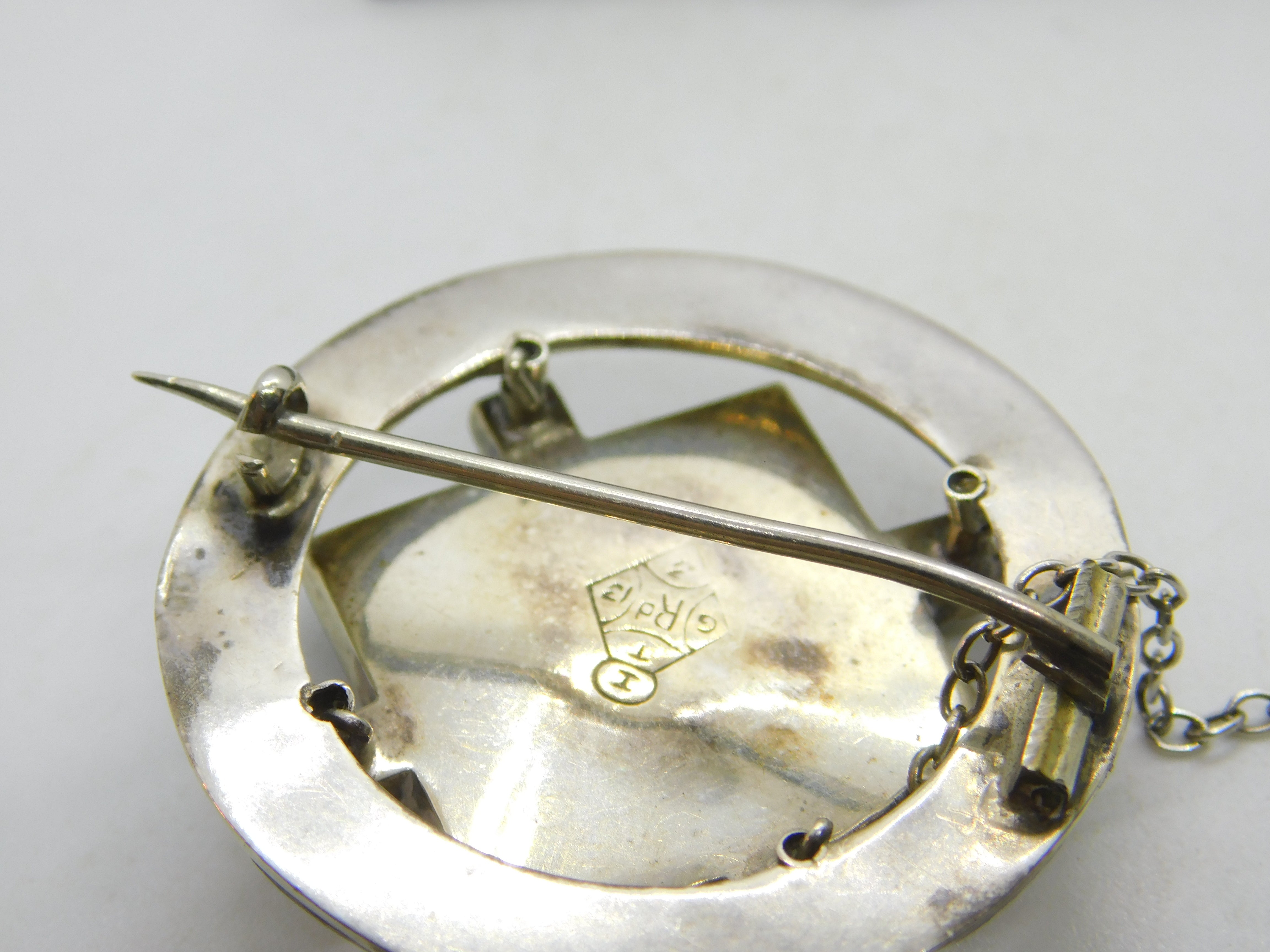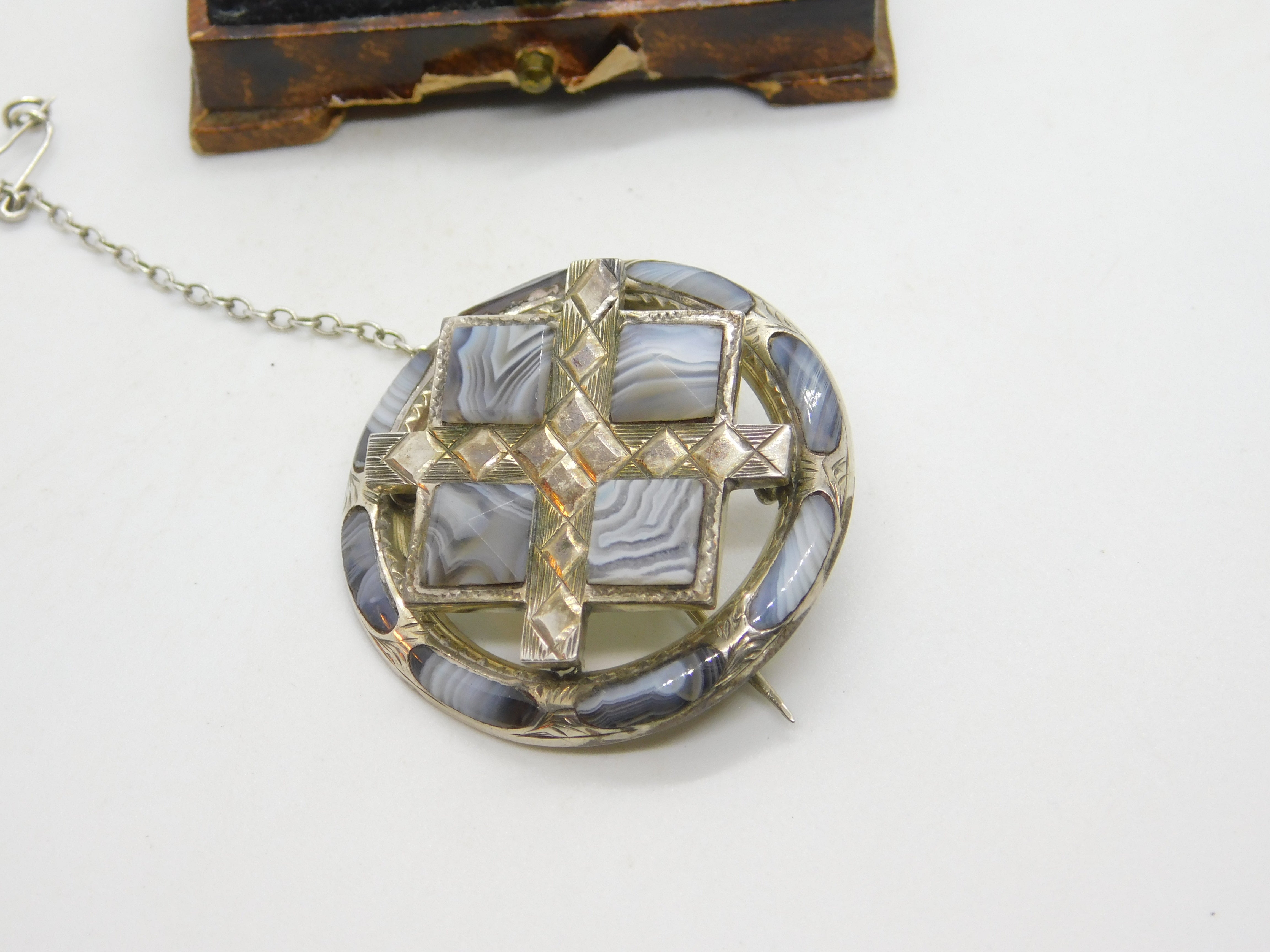 Victorian Scottish Sterling Silver Montrose Agate Target Brooch Antique c1860