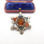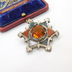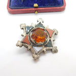 Victorian Scottish Sterling Silver Star Form Brooch Agate, Bloodstone c1860
