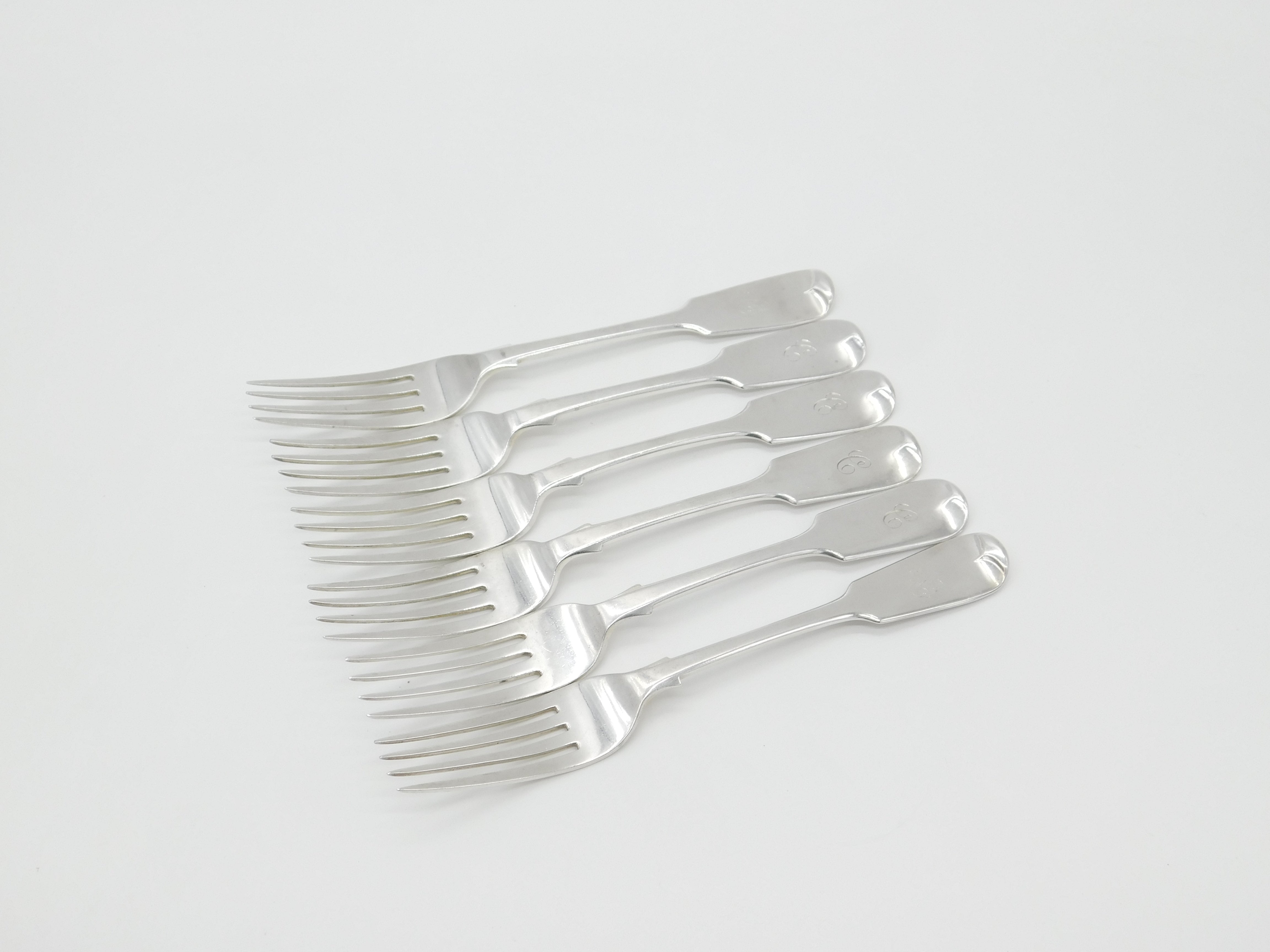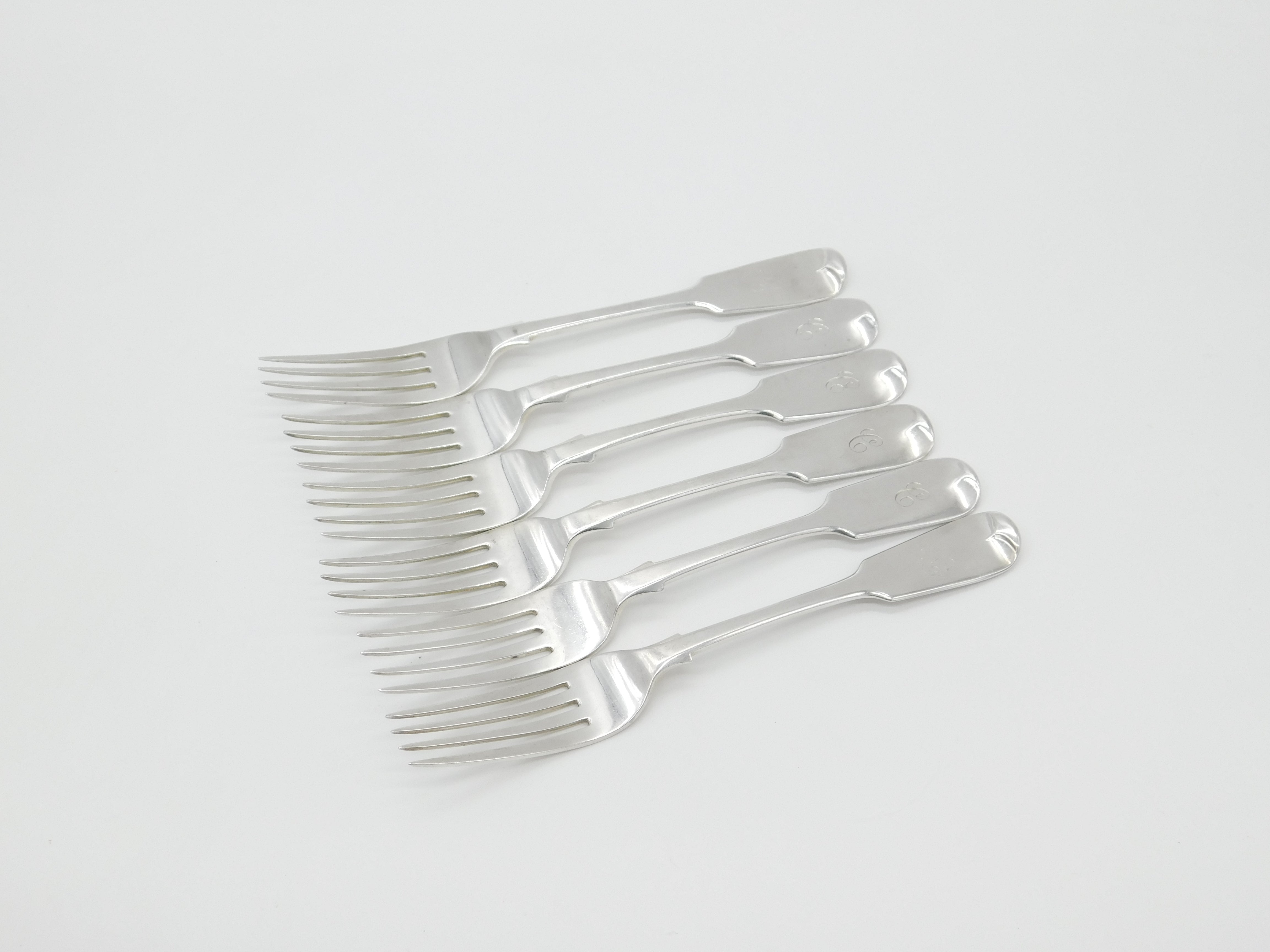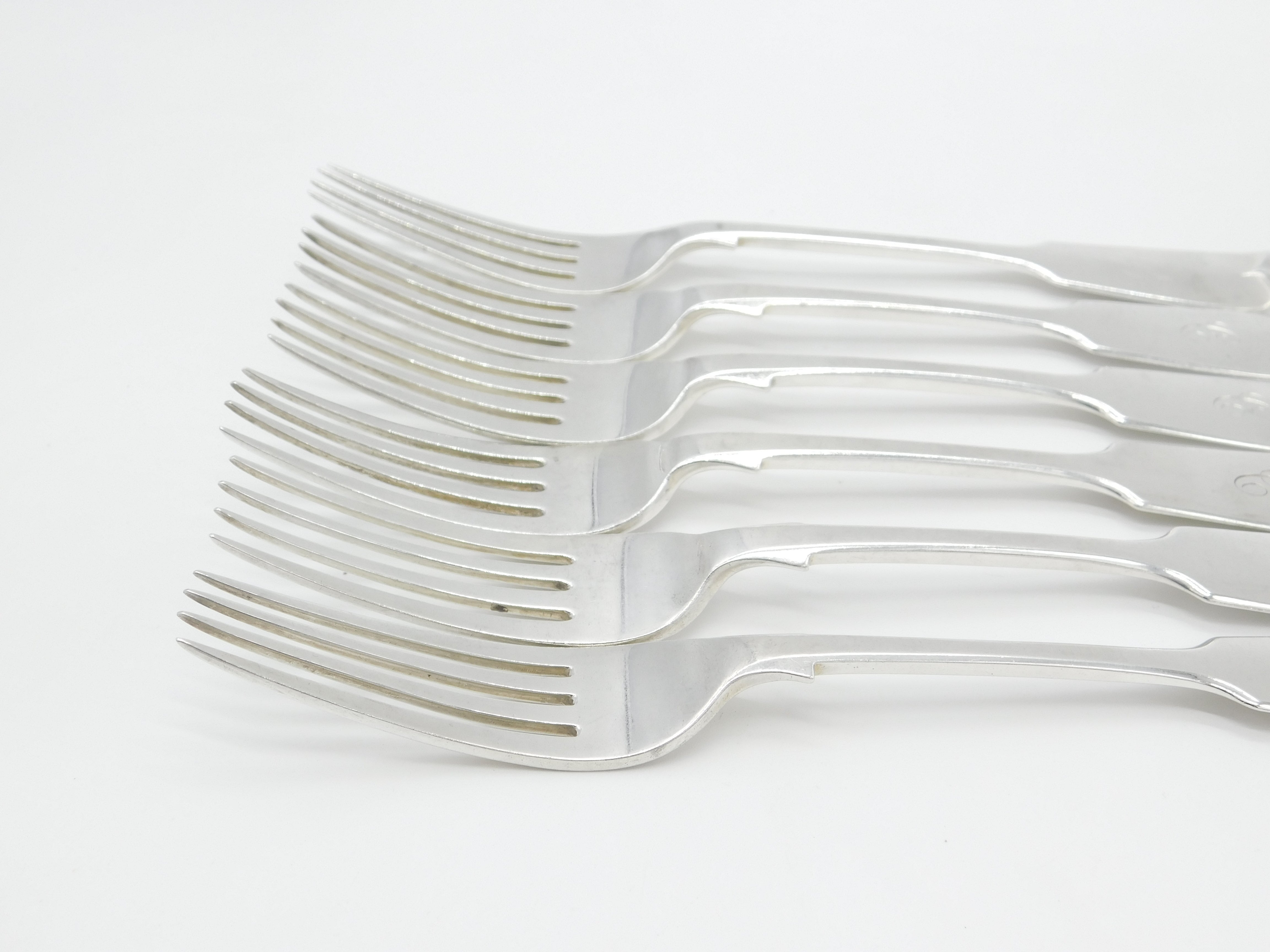 Victorian Set of Six Sterling Silver Hanoverian Pattern Table Forks 1846 Exeter