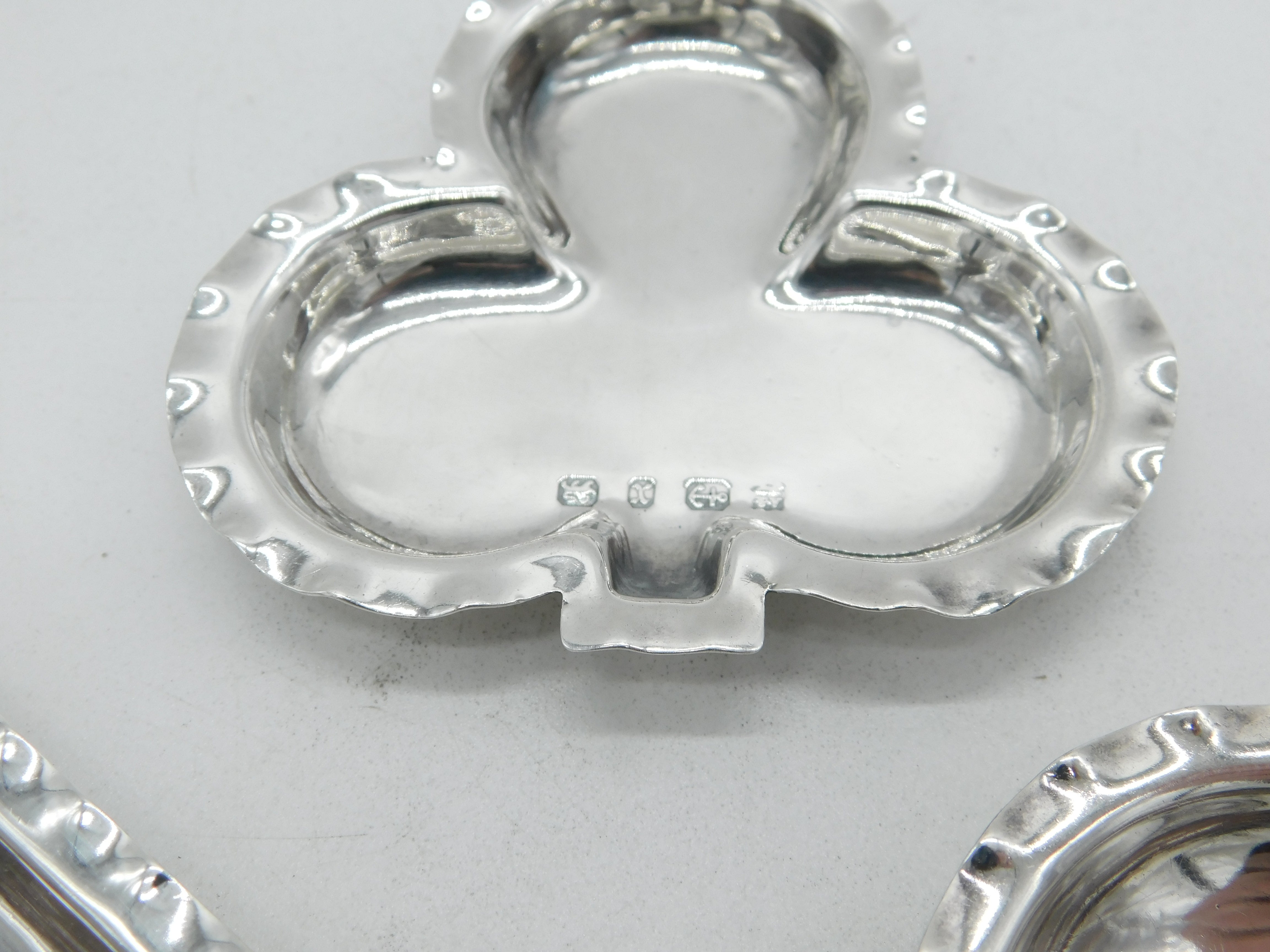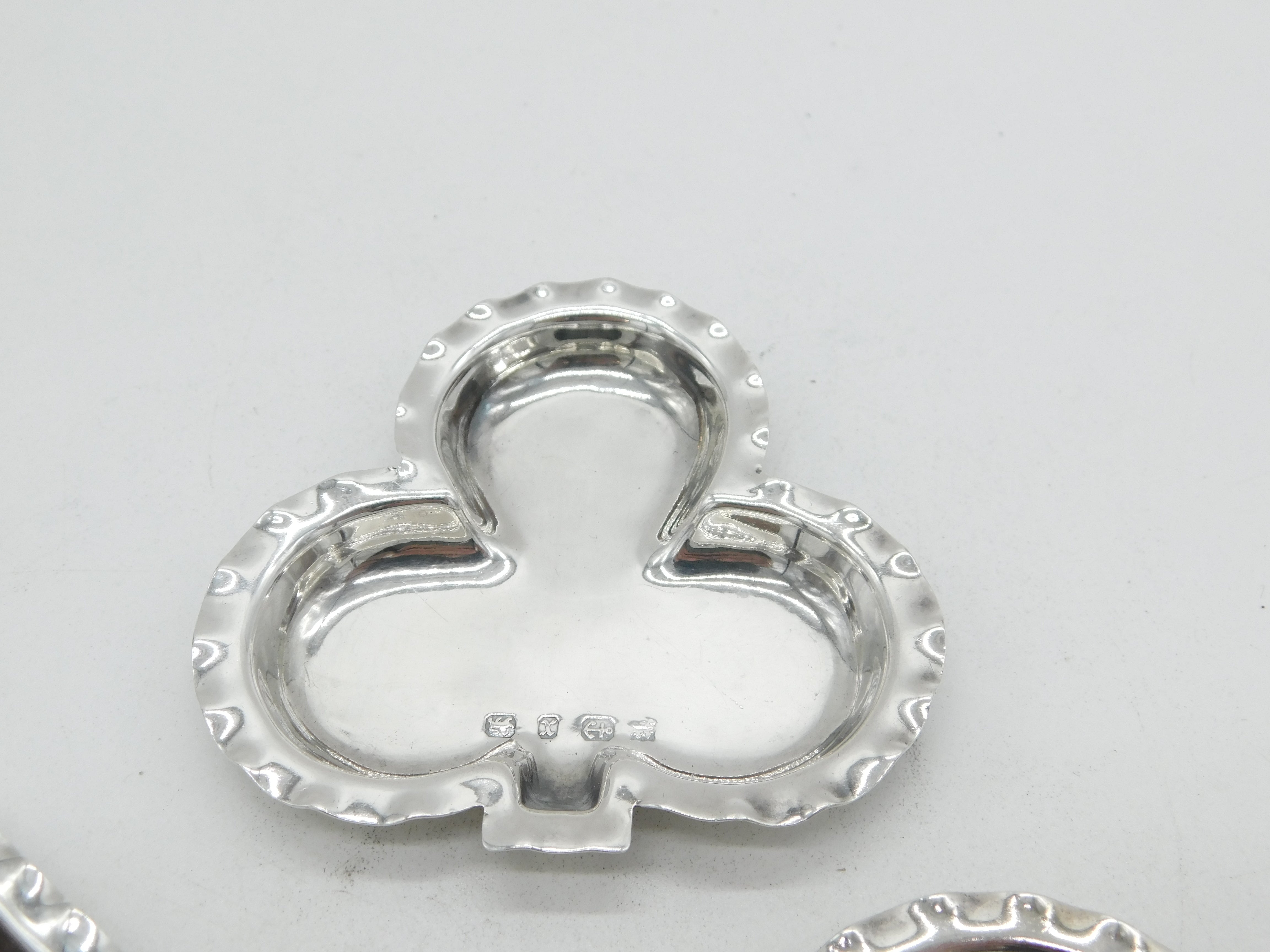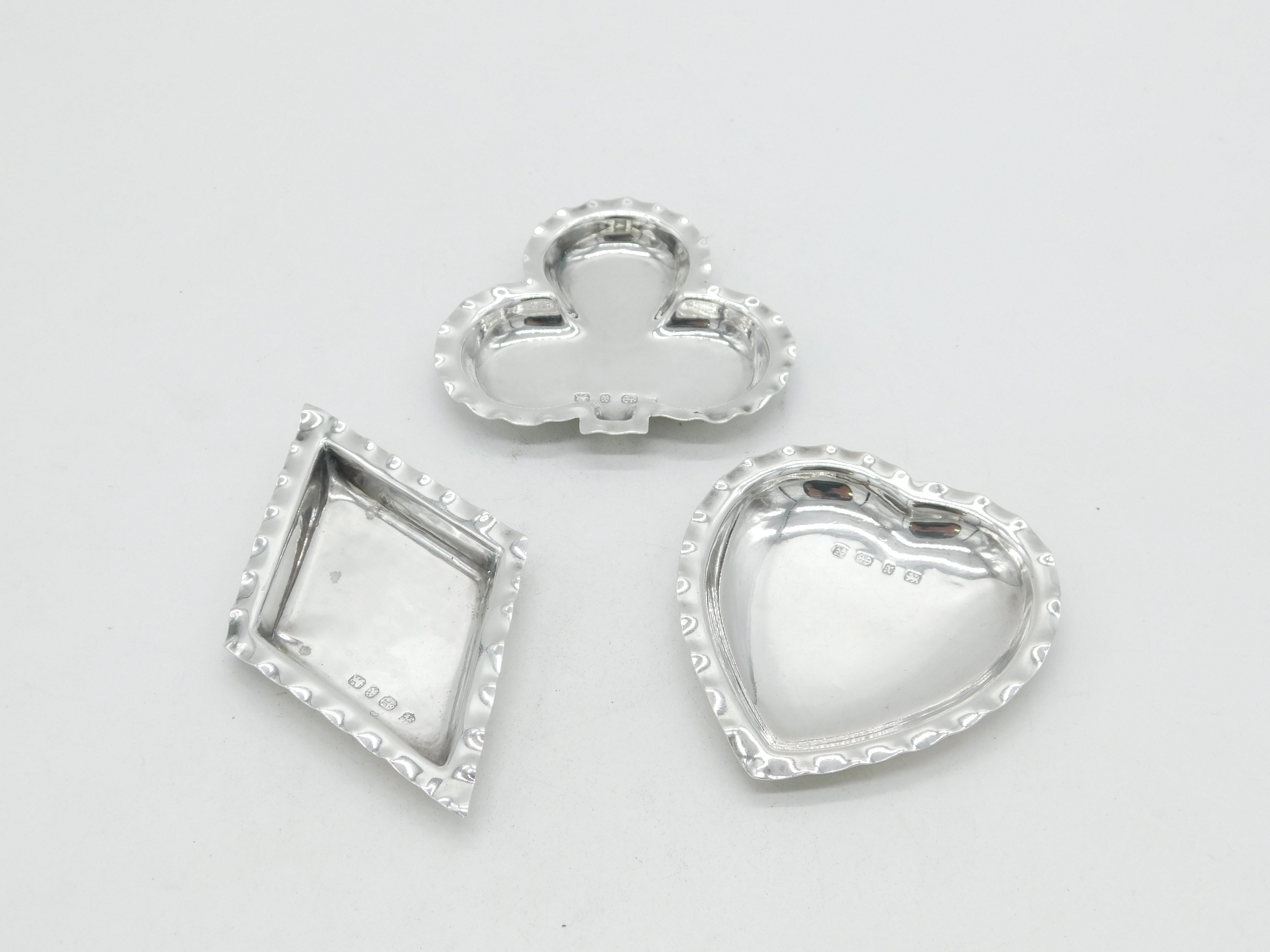 Victorian Set of Sterling Silver Playing Card Suits Pin Dishes Antique 1897 Birmingham