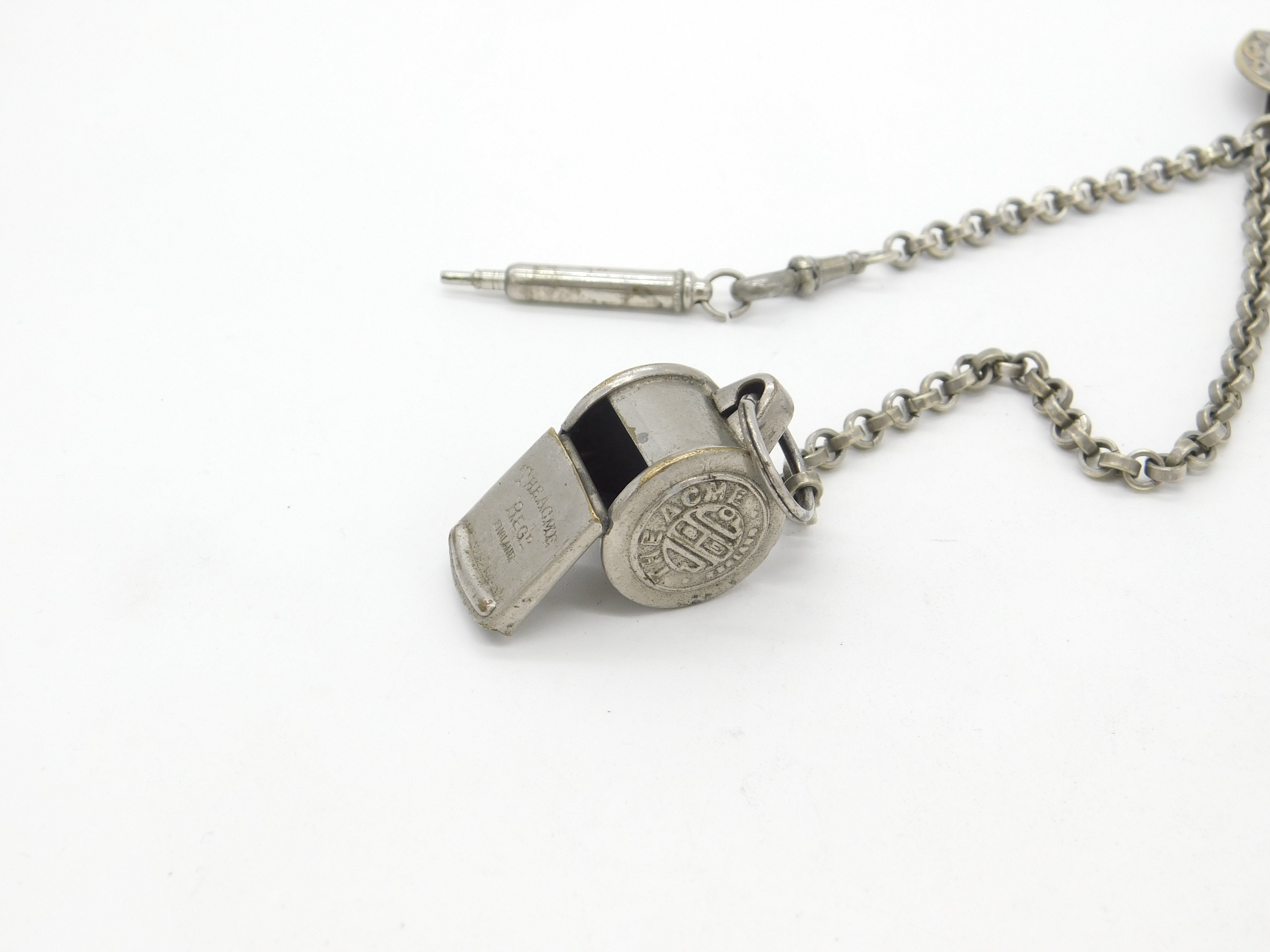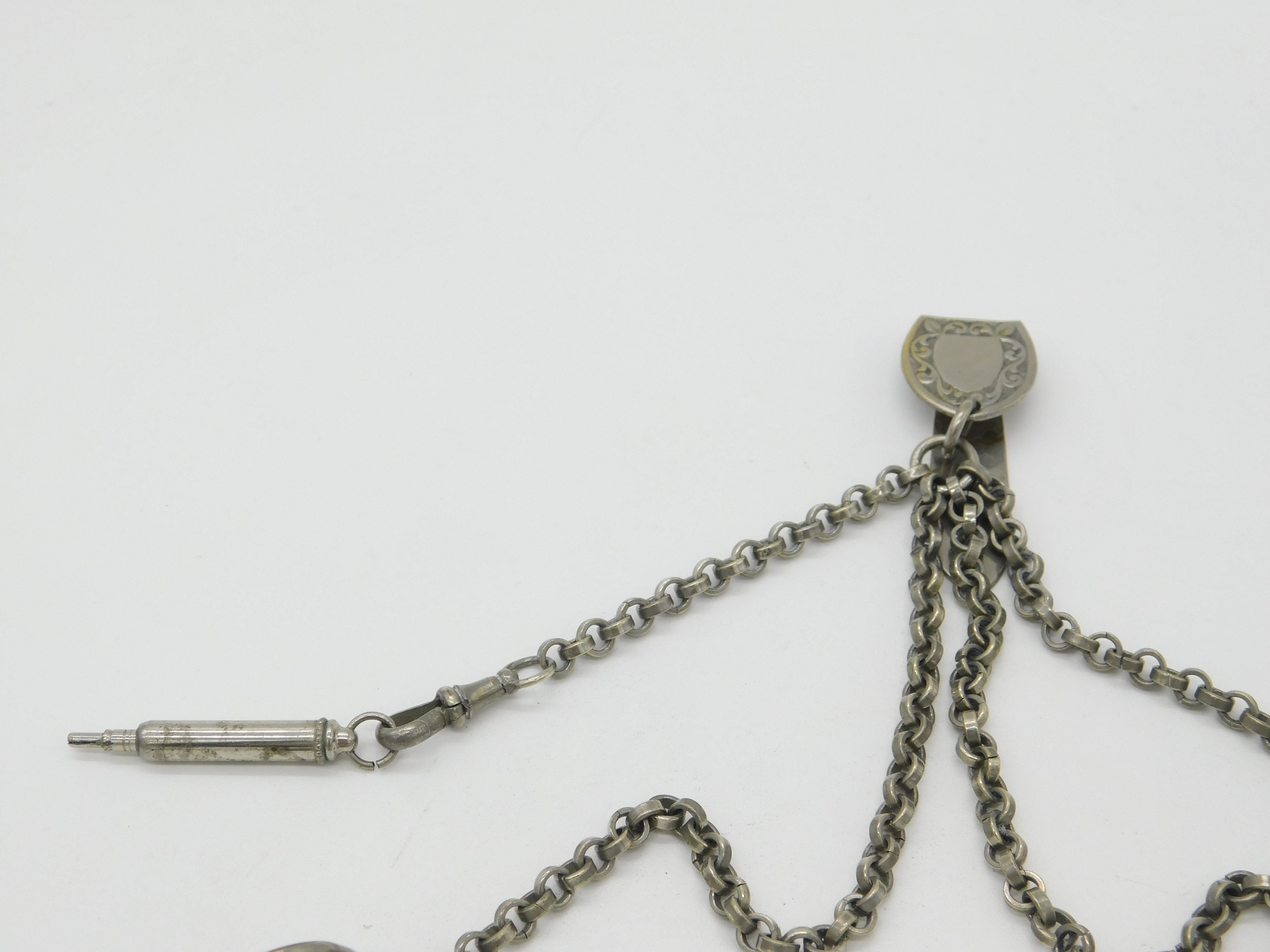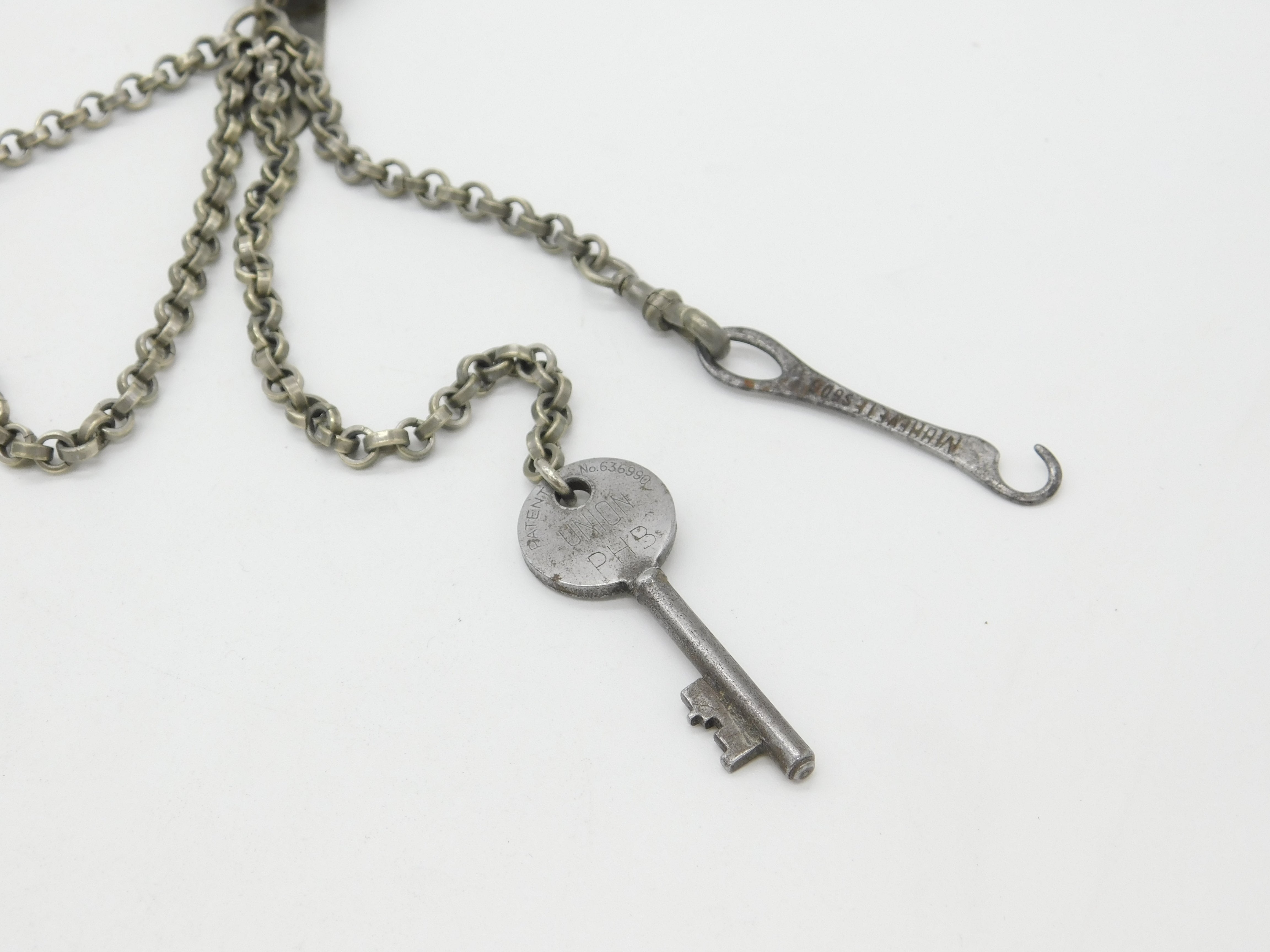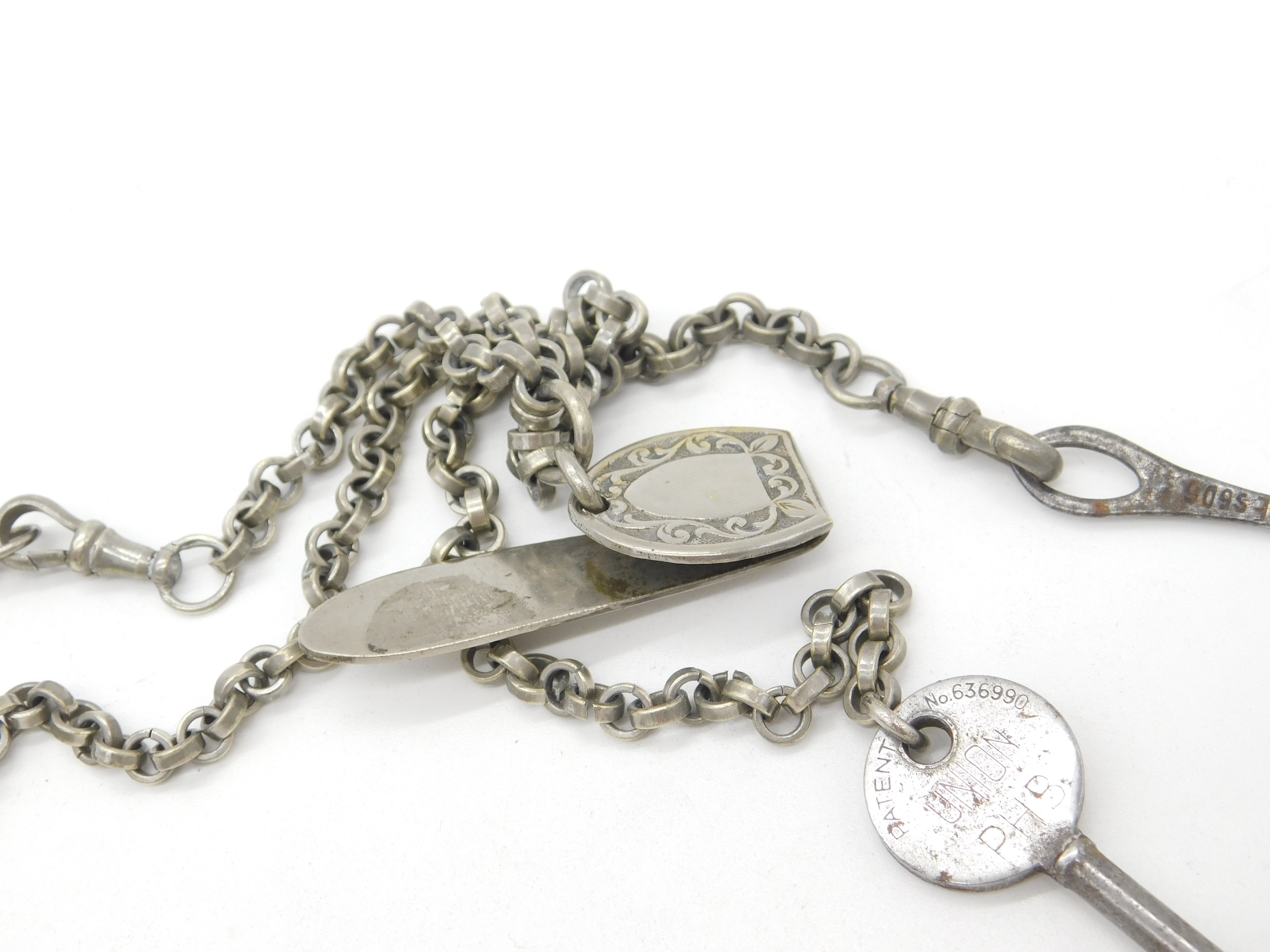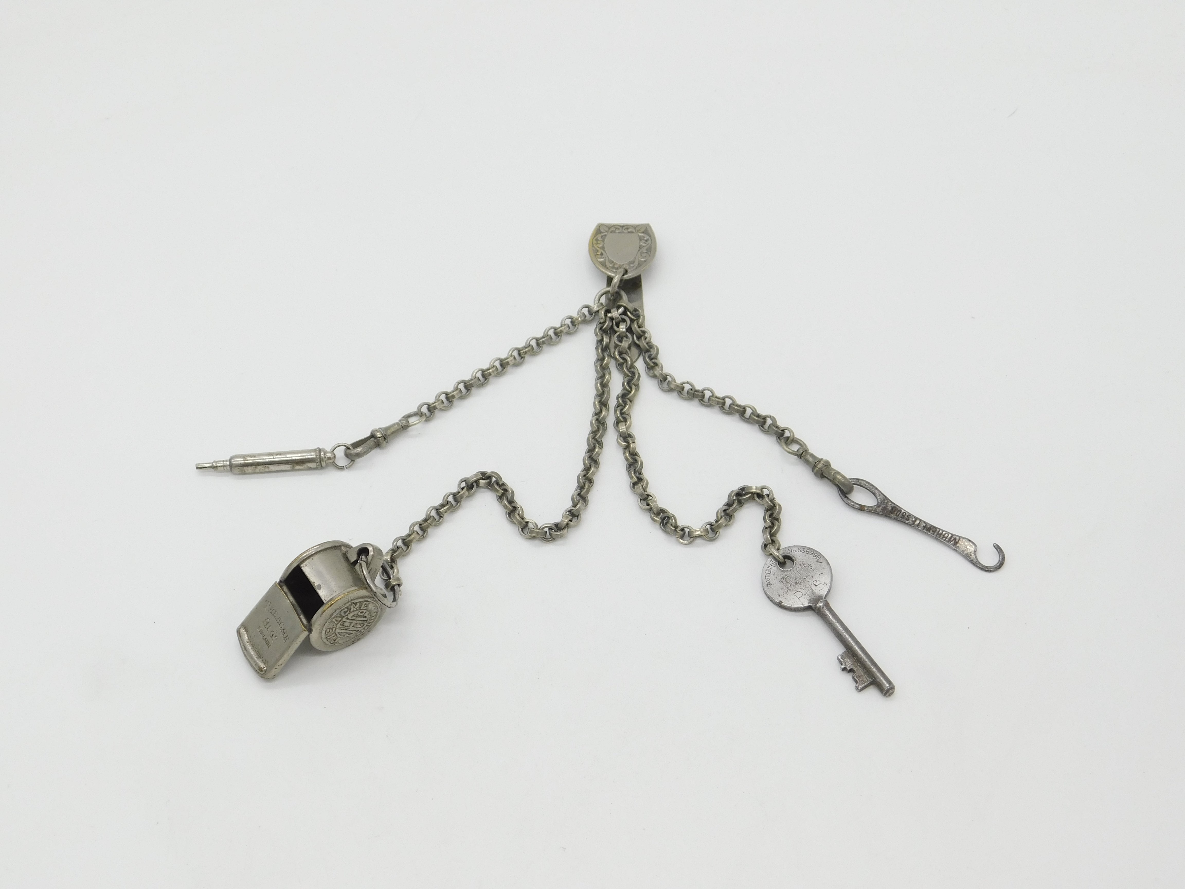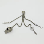 Victorian Silver Plated Chatelaine with Whistle, Key & Hook Antique c1880