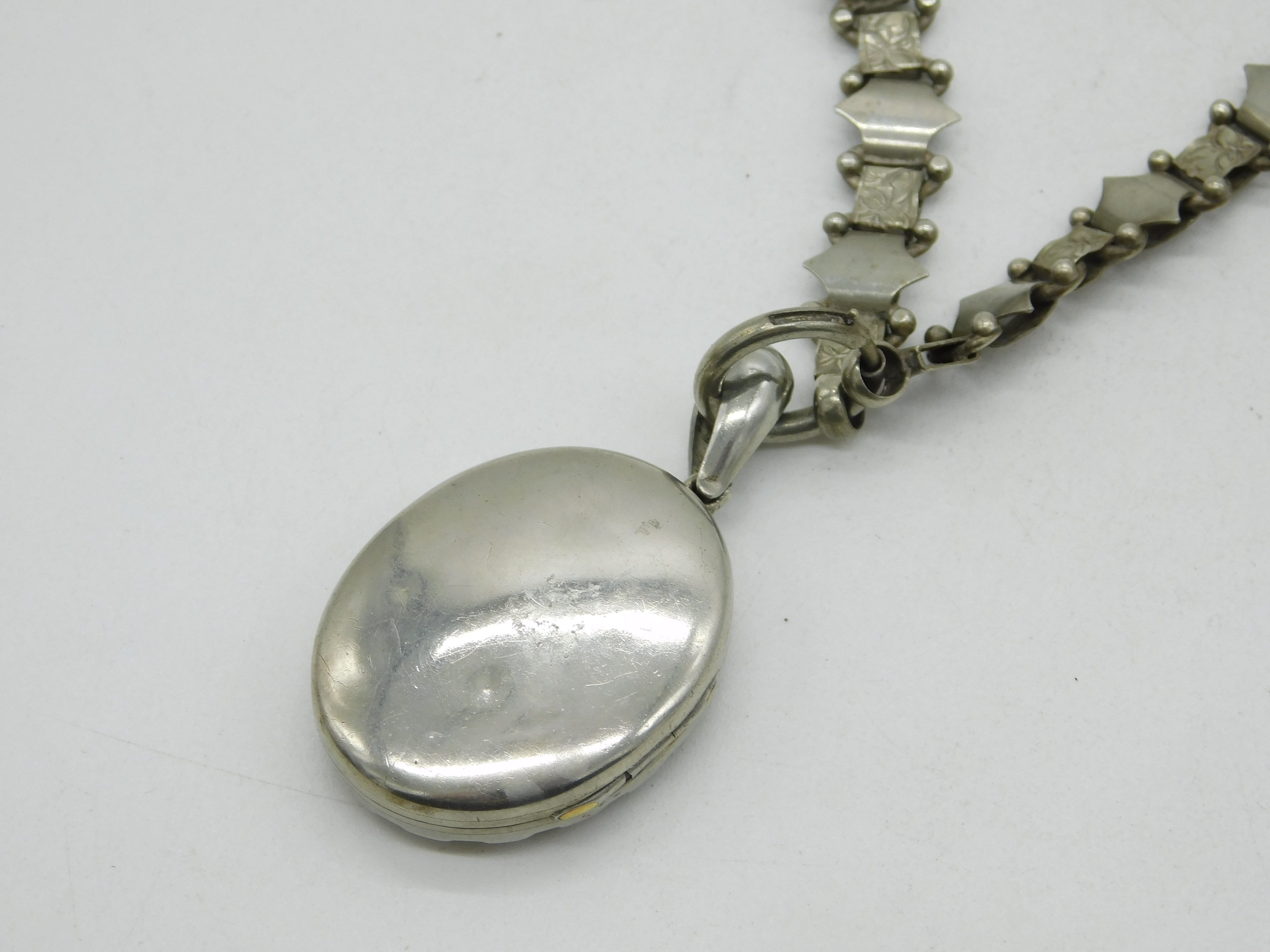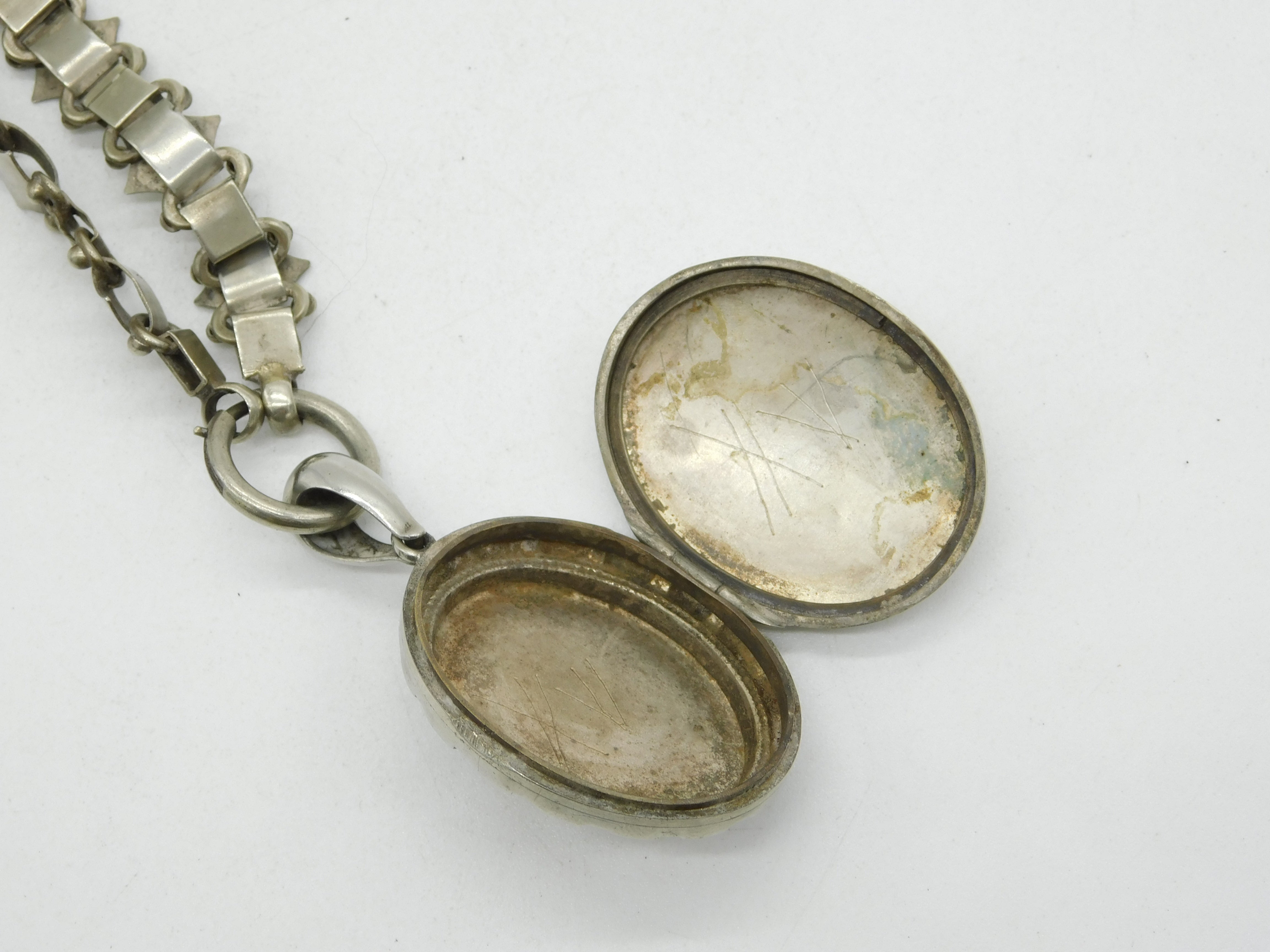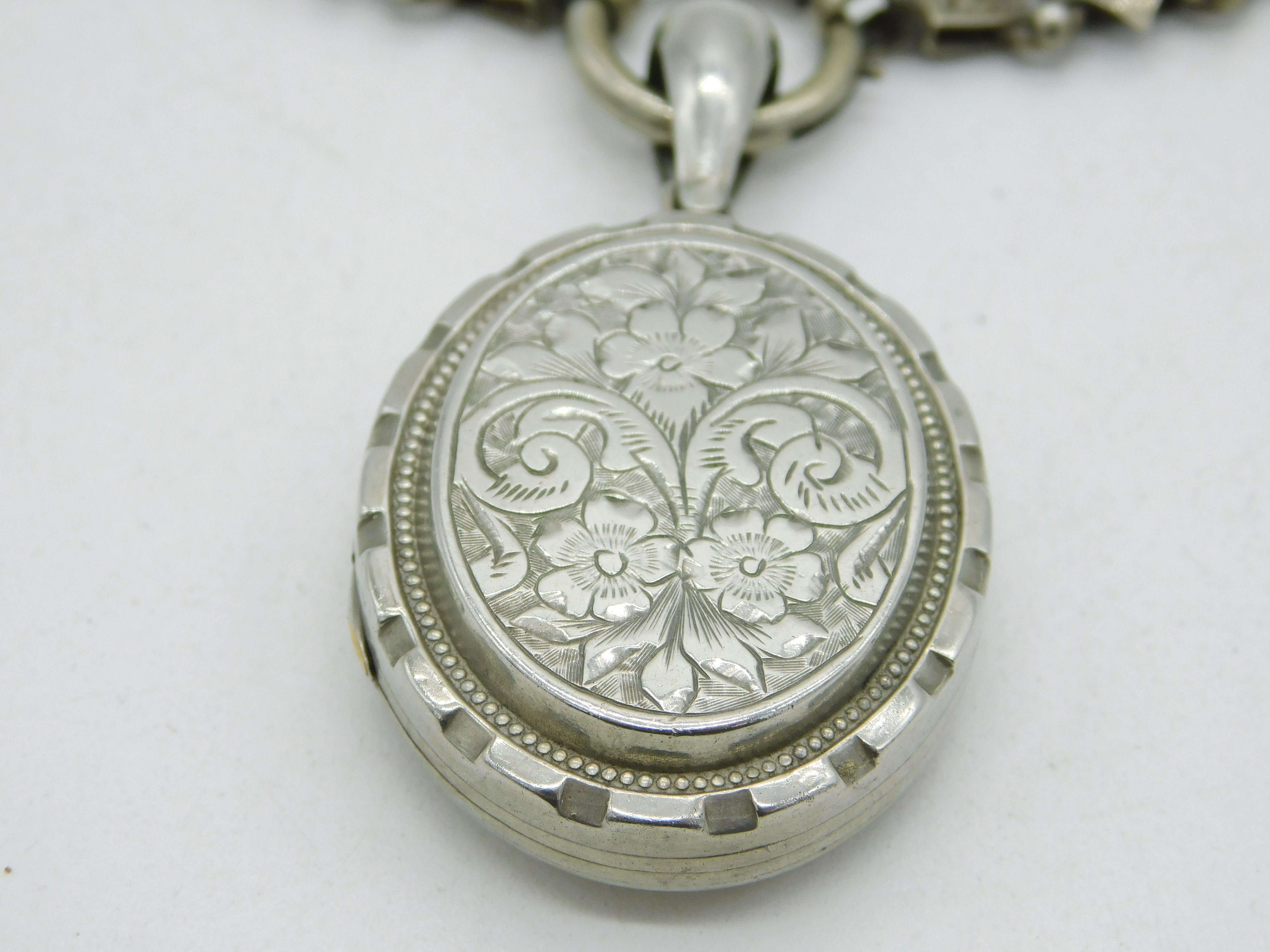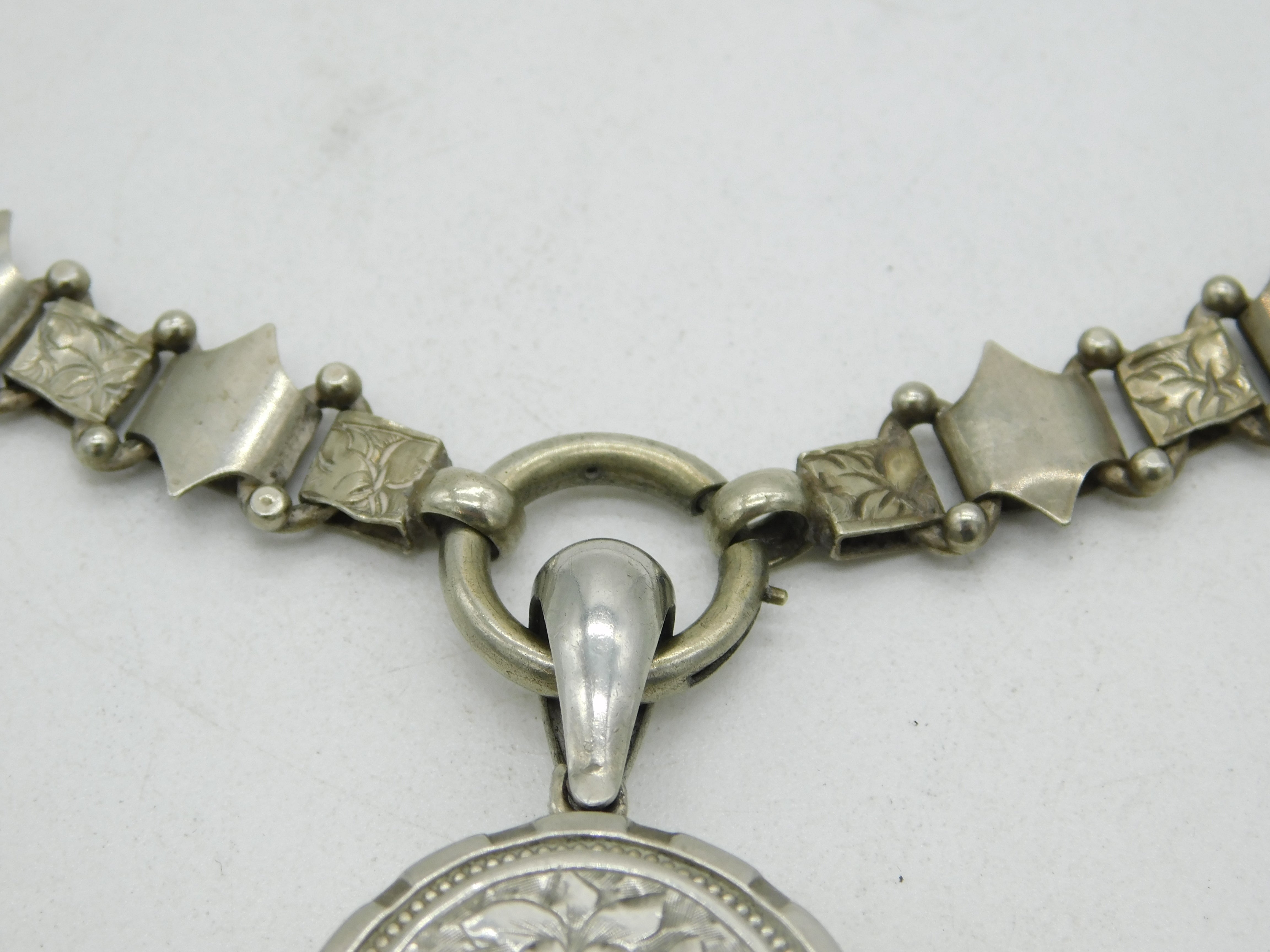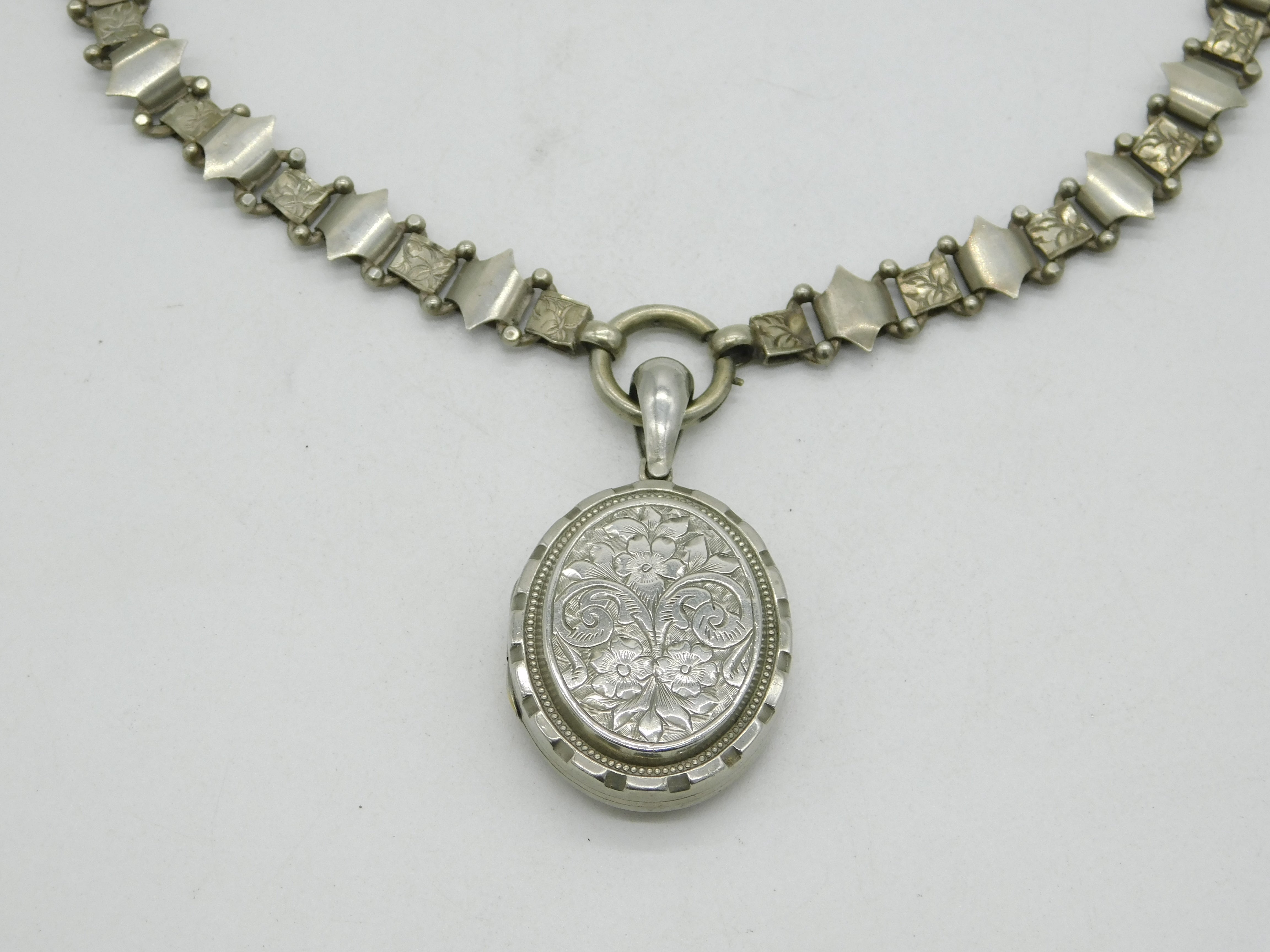 Victorian Silver Plated Floral Sweetheart Locket & Collar Necklace Antique c1860
