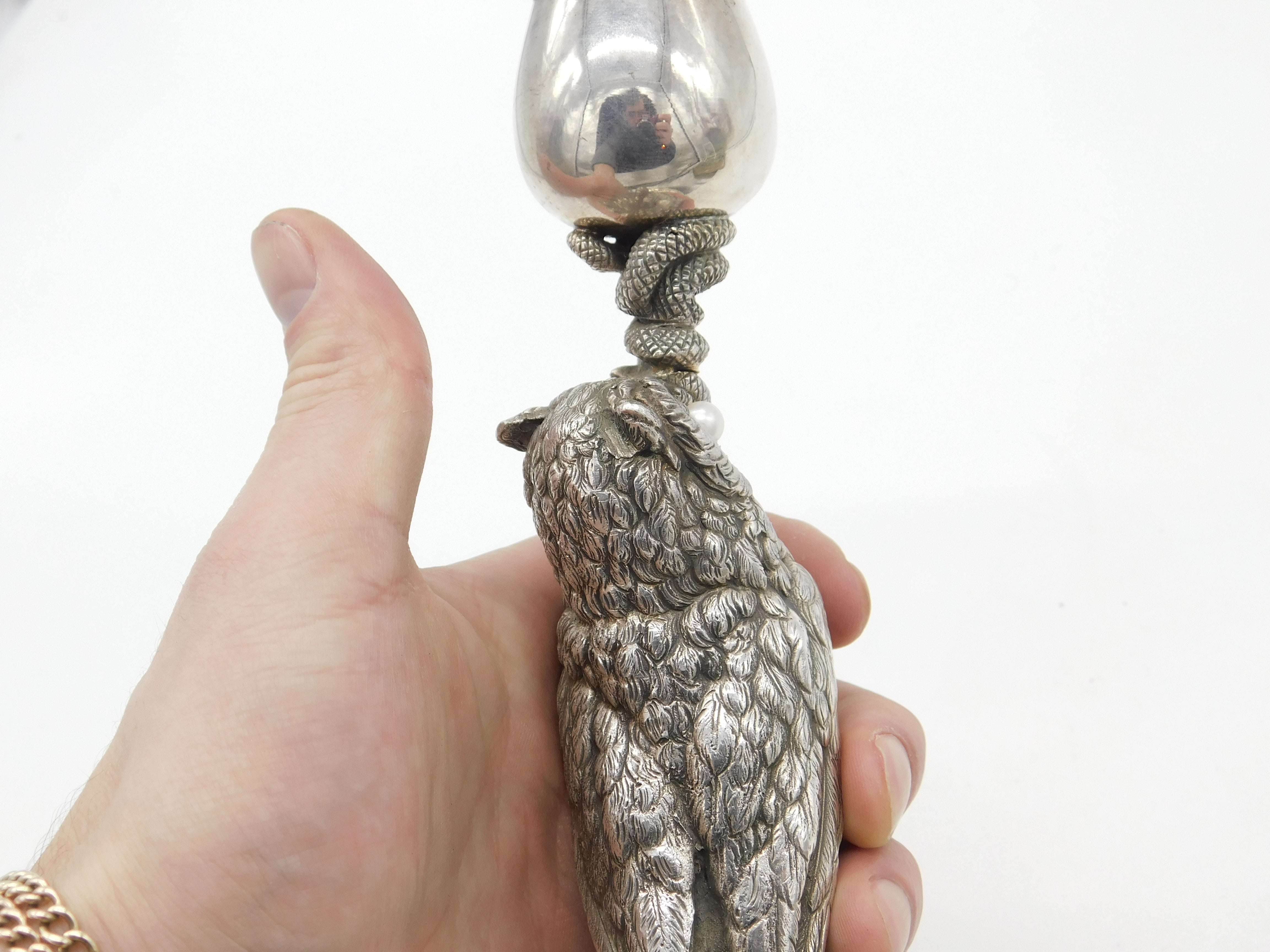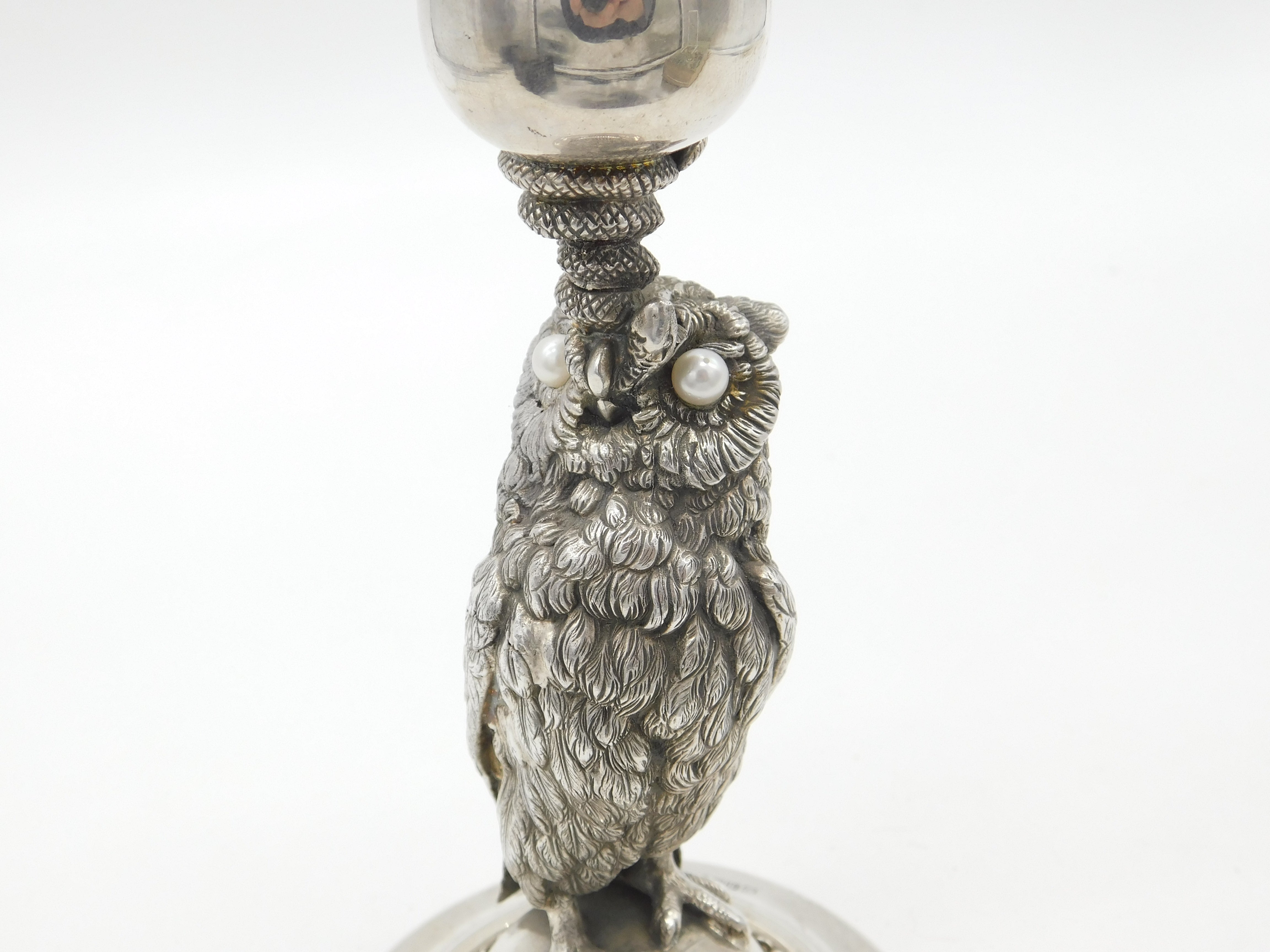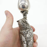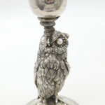 Victorian Silver Plated Owl & Snake Form Candlestick Antique c1890 Pearl Eyes