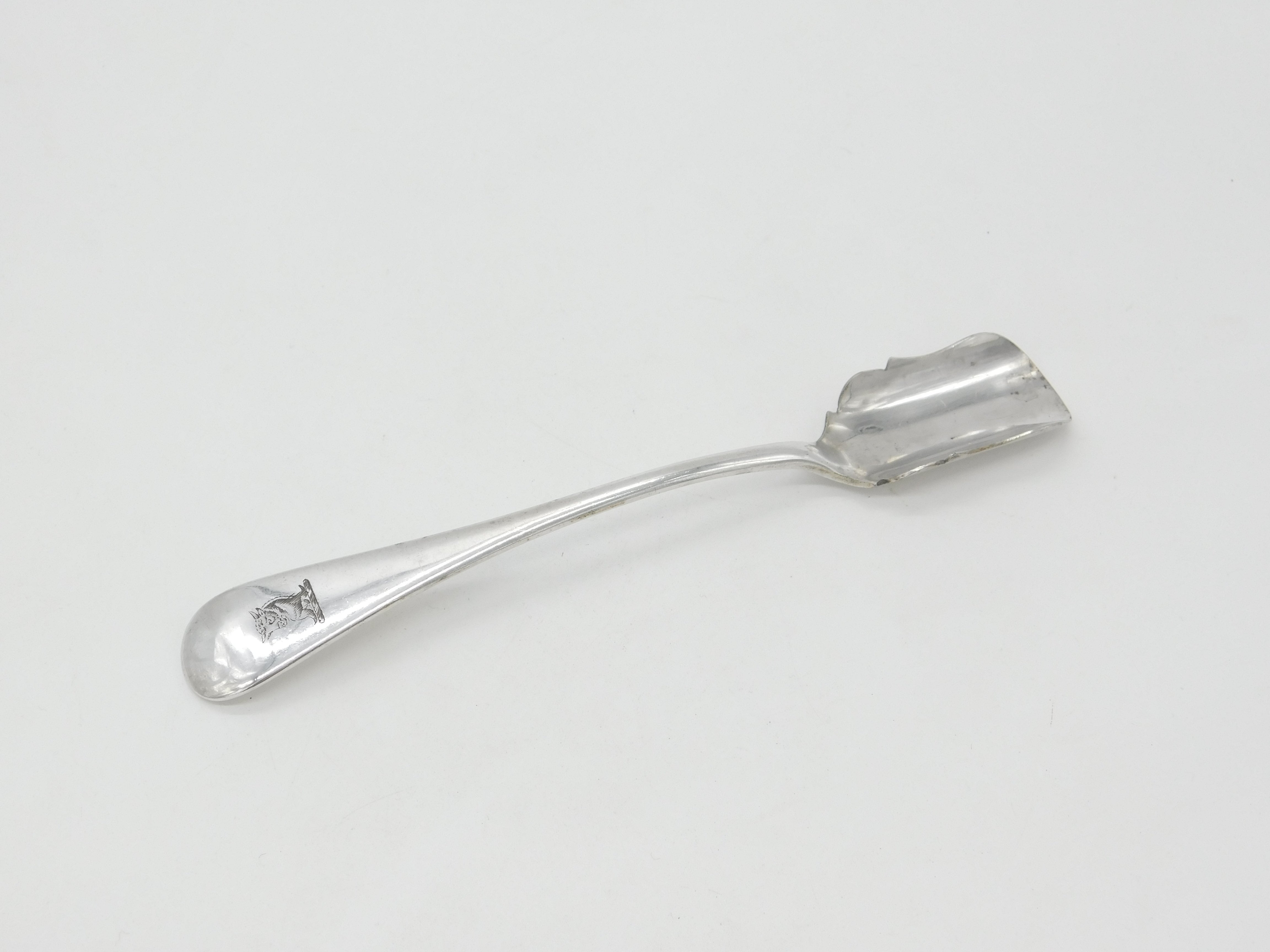 Victorian Silver Plated Stilton Scoop with Ox Heraldic Crest Antique c1890