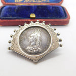 Victorian Sterling Shilling Coin Fan Form Brooch 1887 Antique Jubilee Year