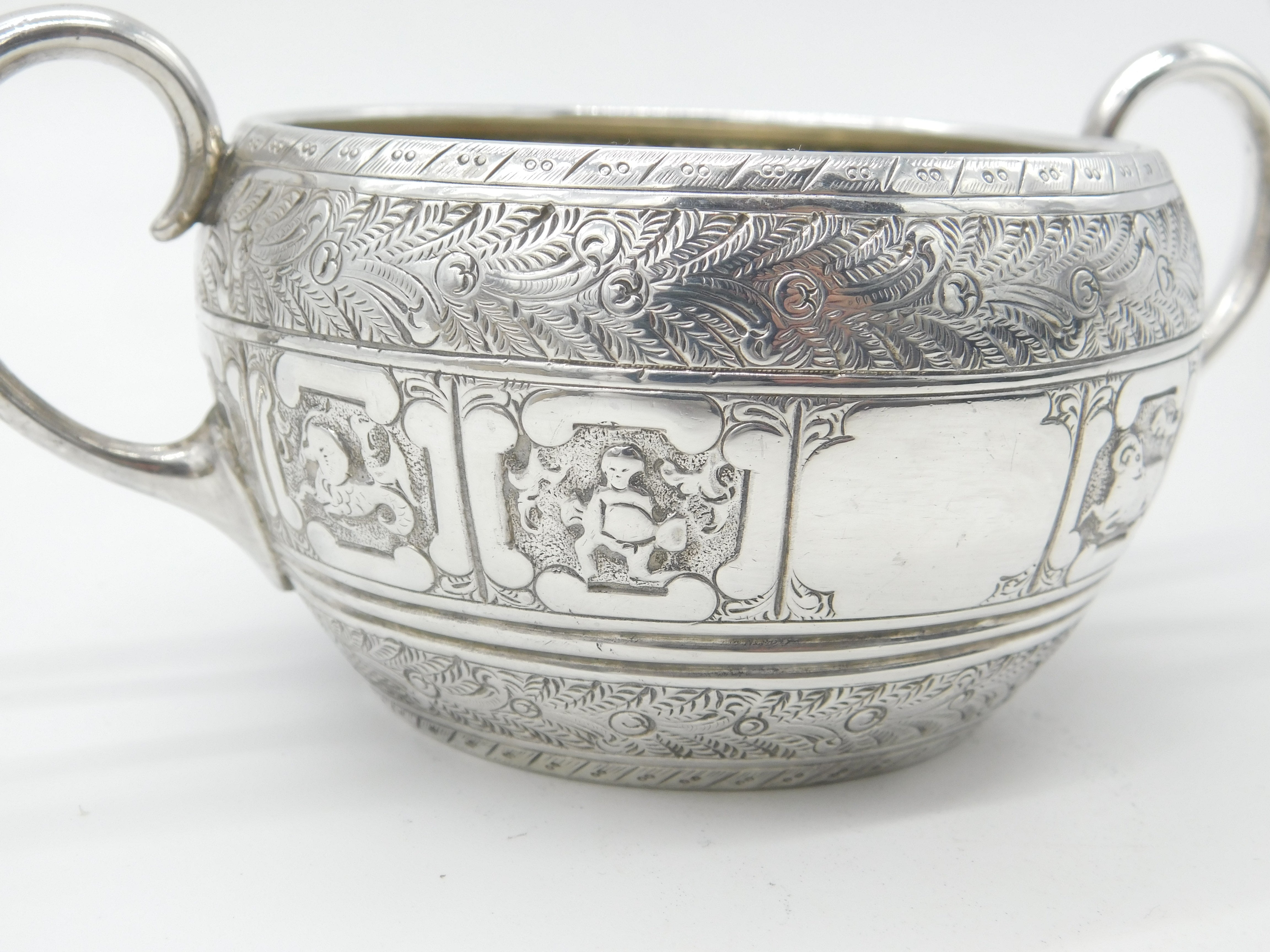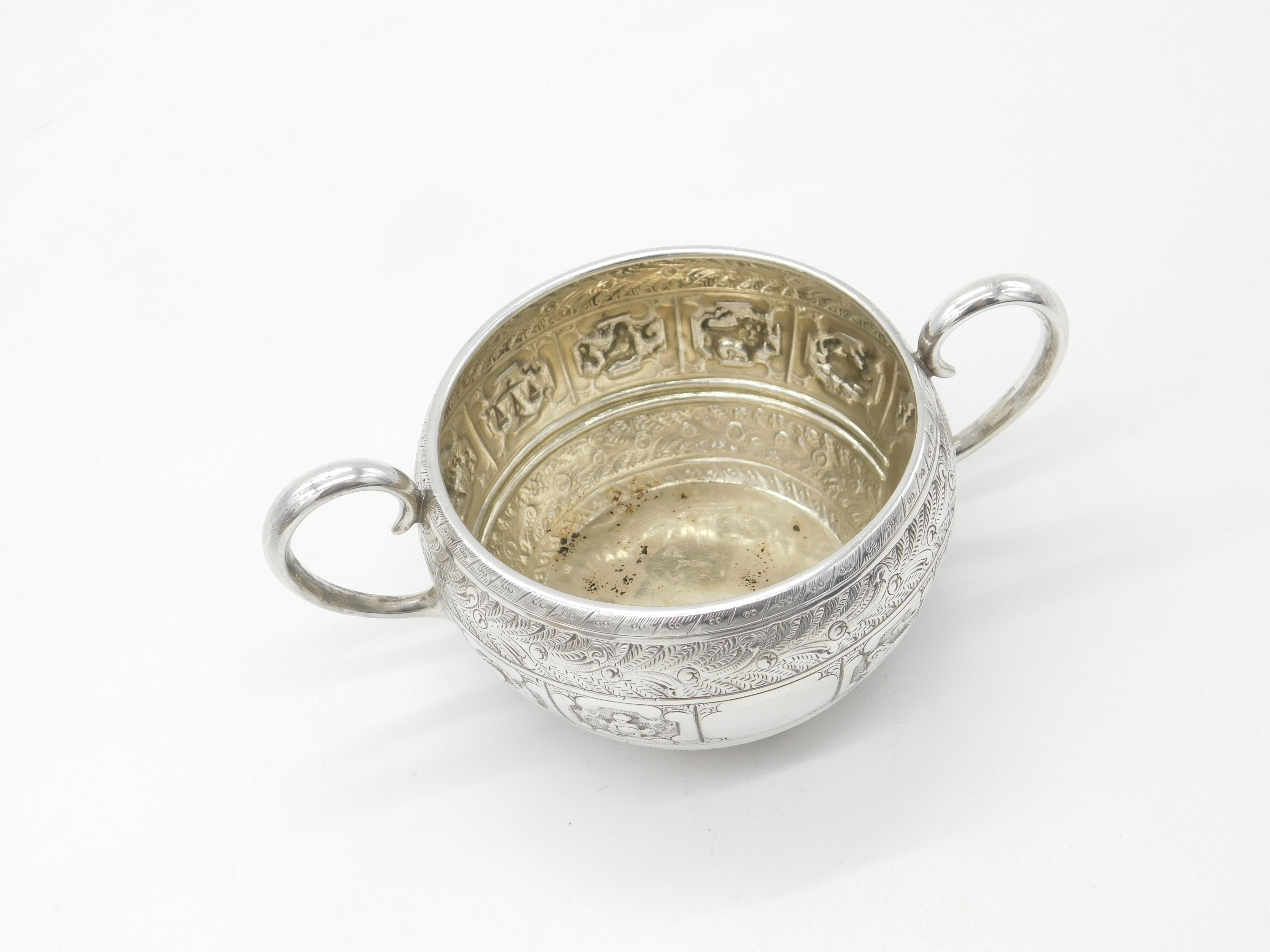 Victorian Sterling Silver 12 Symbols of Zodiac Sugar Bowl Antique 1874 Sheffield