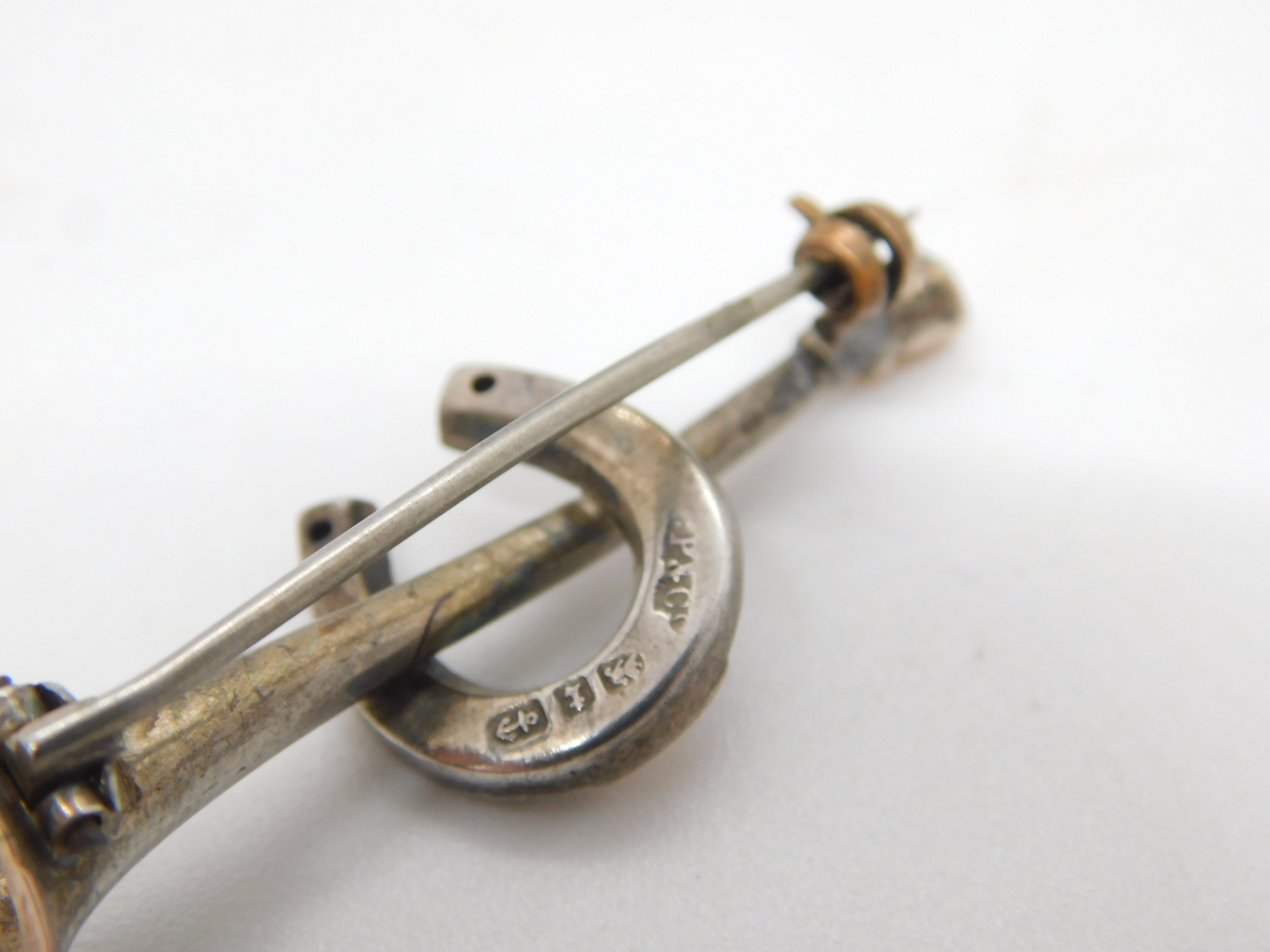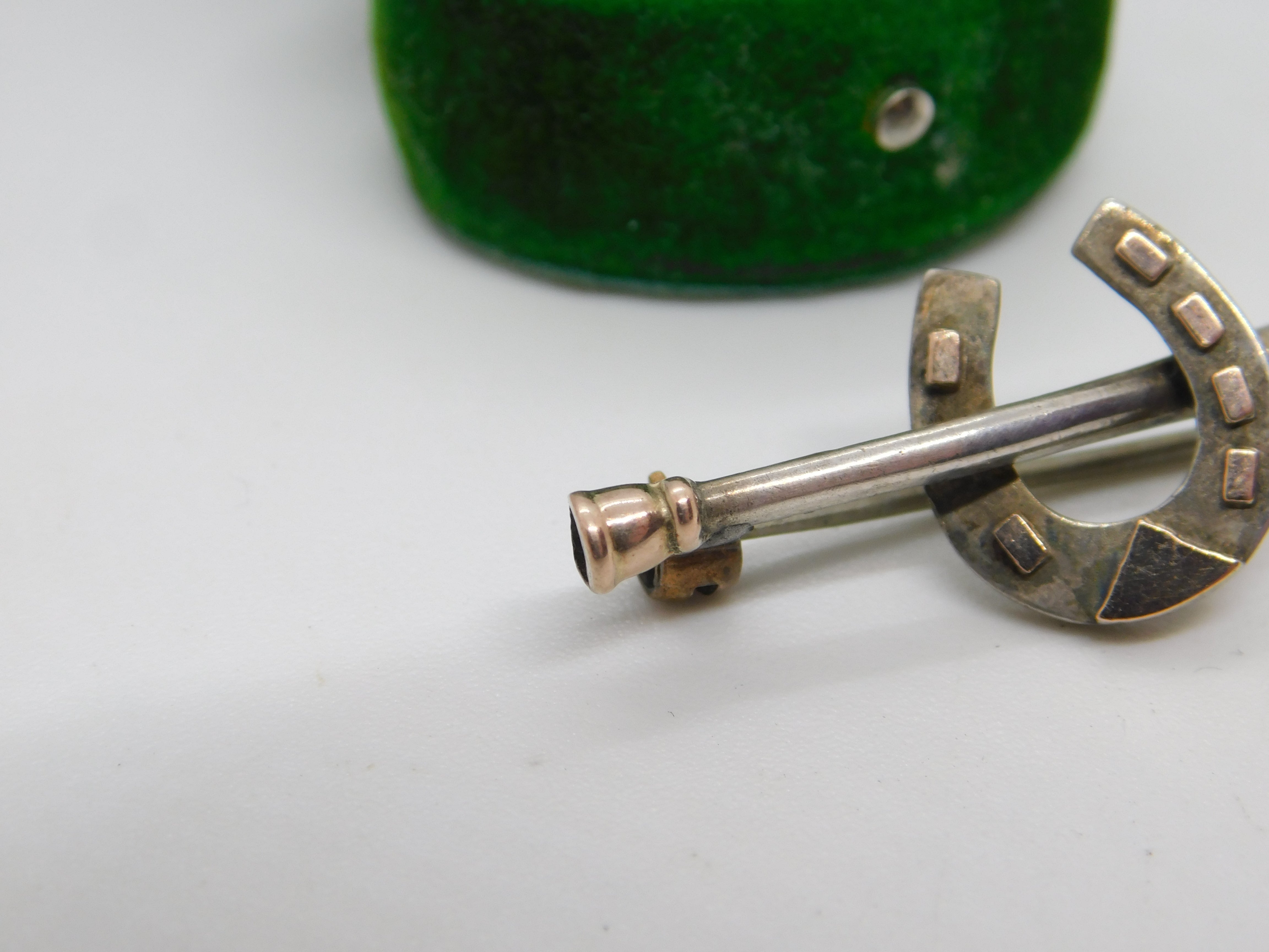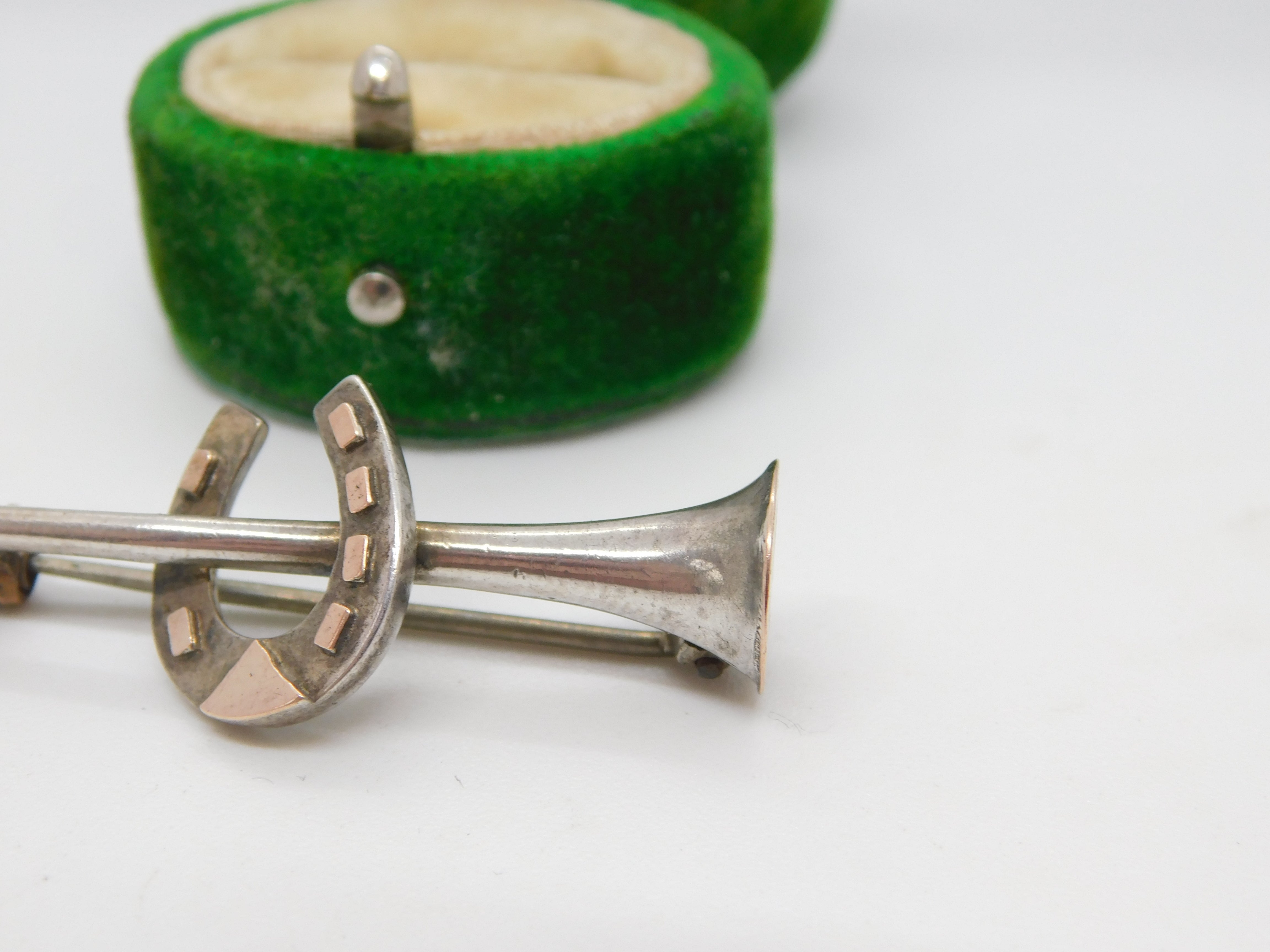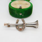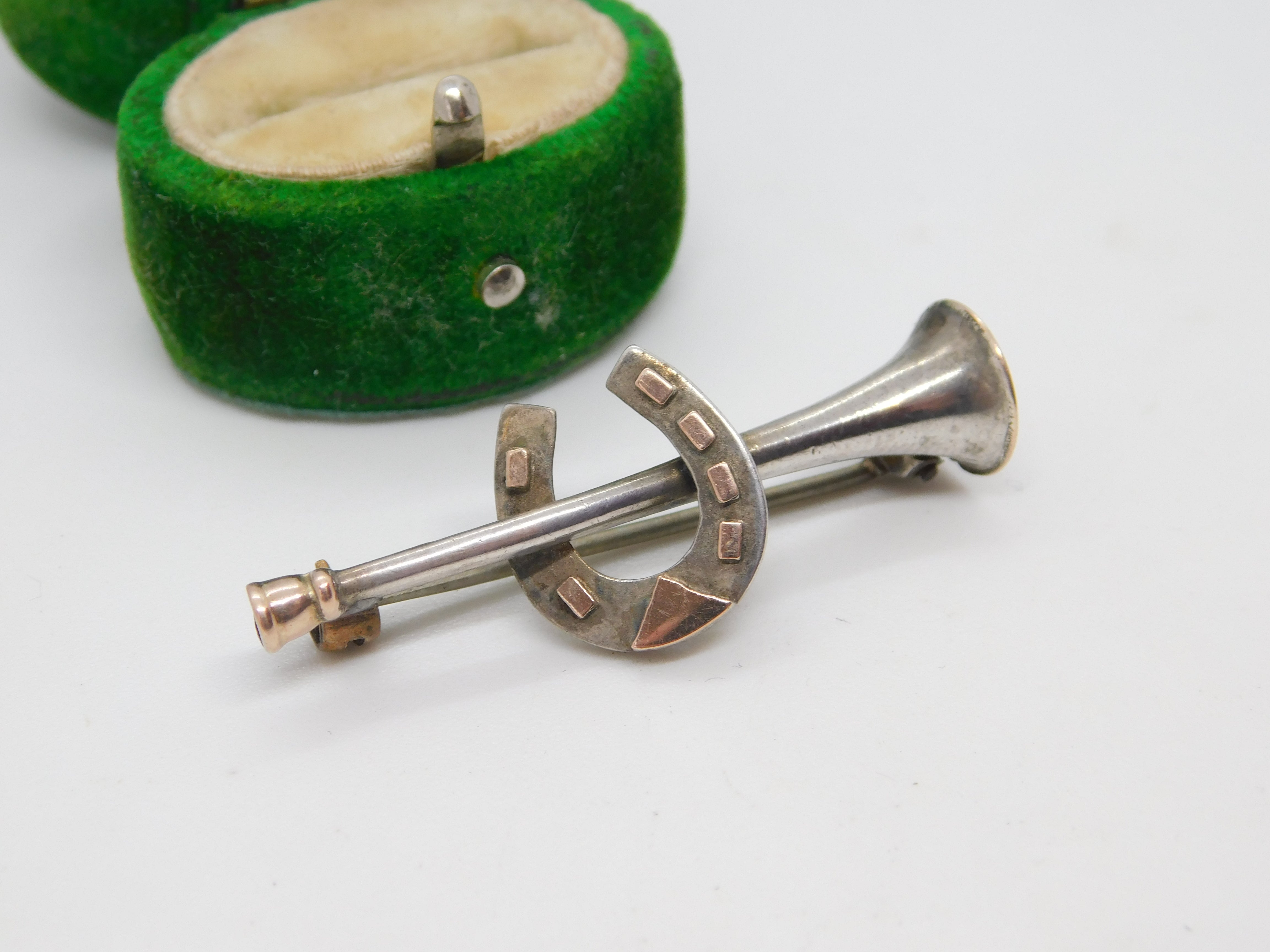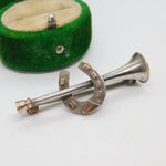 Victorian Sterling Silver & 9ct Gold Hunting Horn Horseshoe Stock Pin Antique 1893