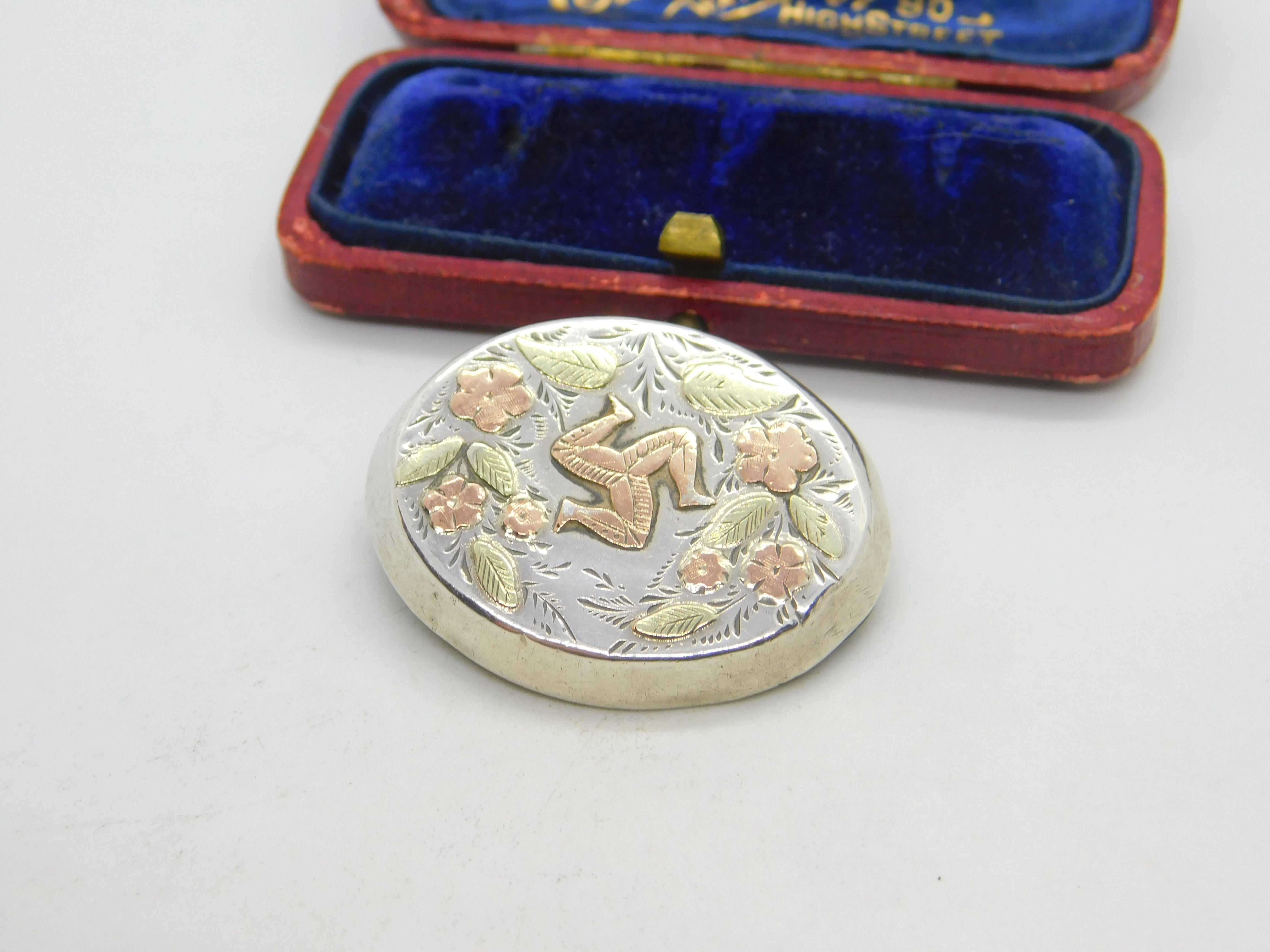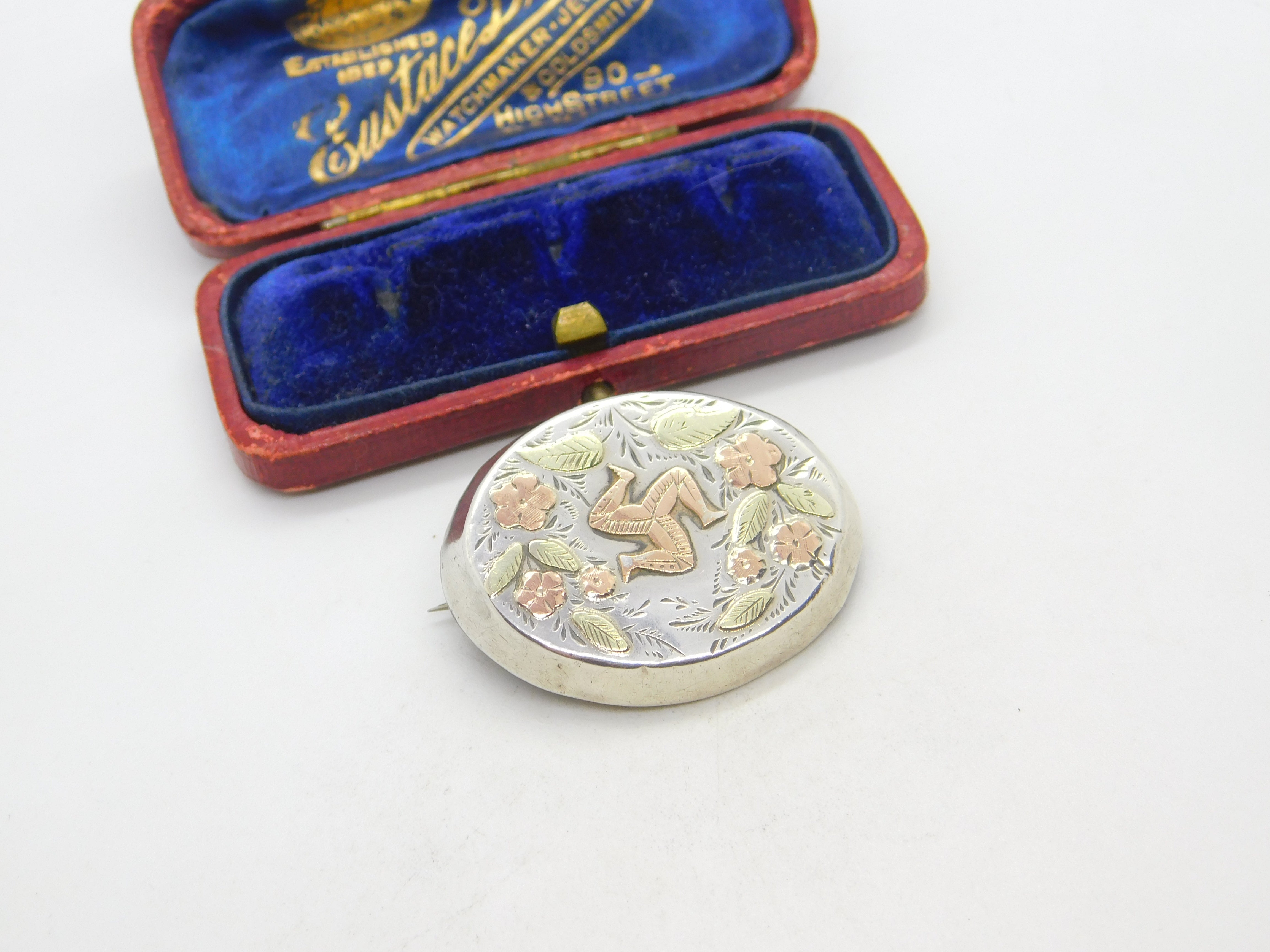 Details: A fantastic and wonderfully designed antique Victorian sterling silver & two-tone gold Isle of Man sweetheart brooch hallmarked Chester 1886 to the reverse. This is a wonderful item that would make a perfect gift or addition to any collection. The BOX pictured is for PRESENTATION ONLY and is NOT included in the listings but used to frame the pictures unless specifically stated otherwise.
