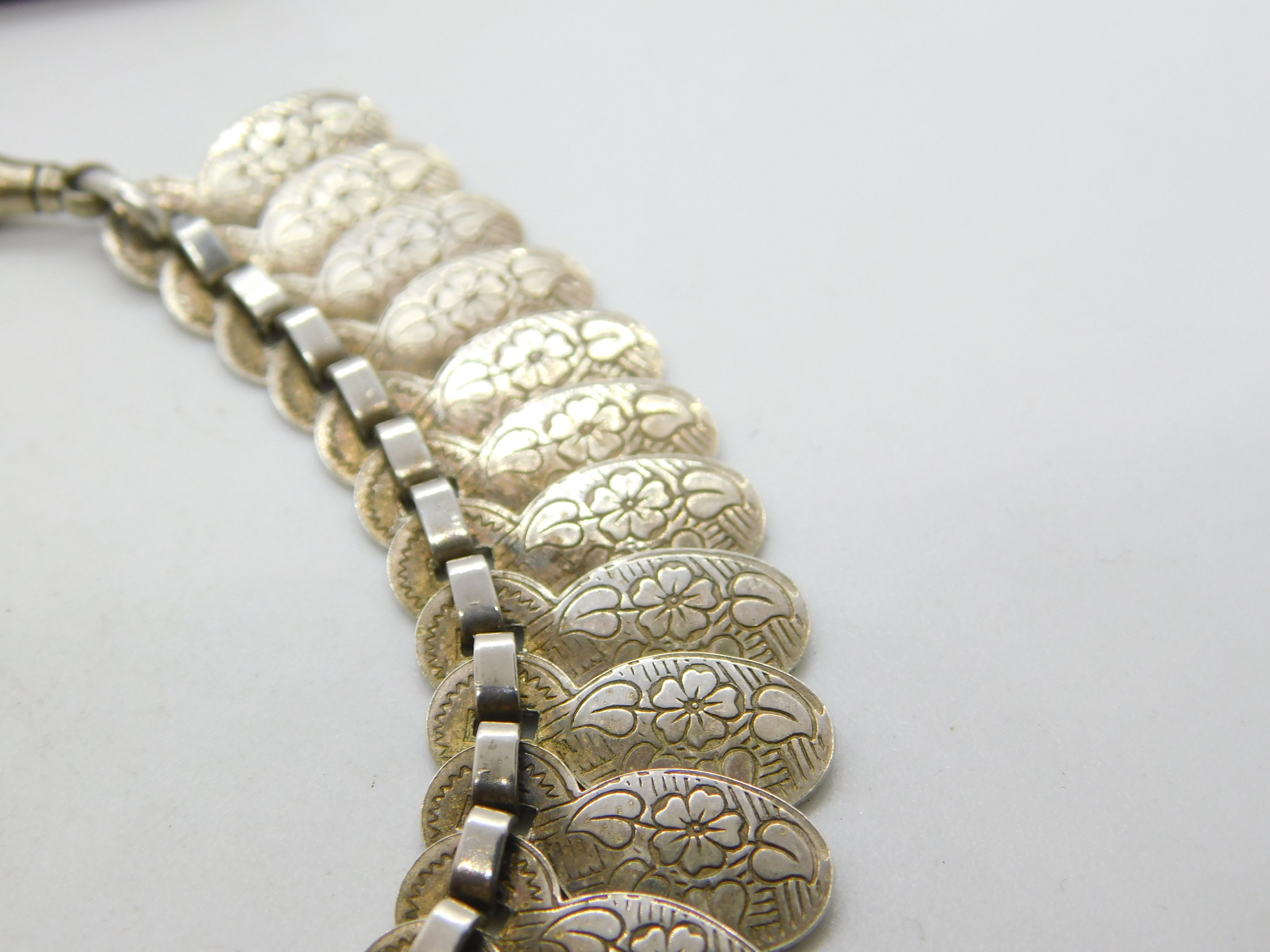 Victorian Sterling Silver Aesthetic Floral Pattern Tassel Bracelet Antique c1900