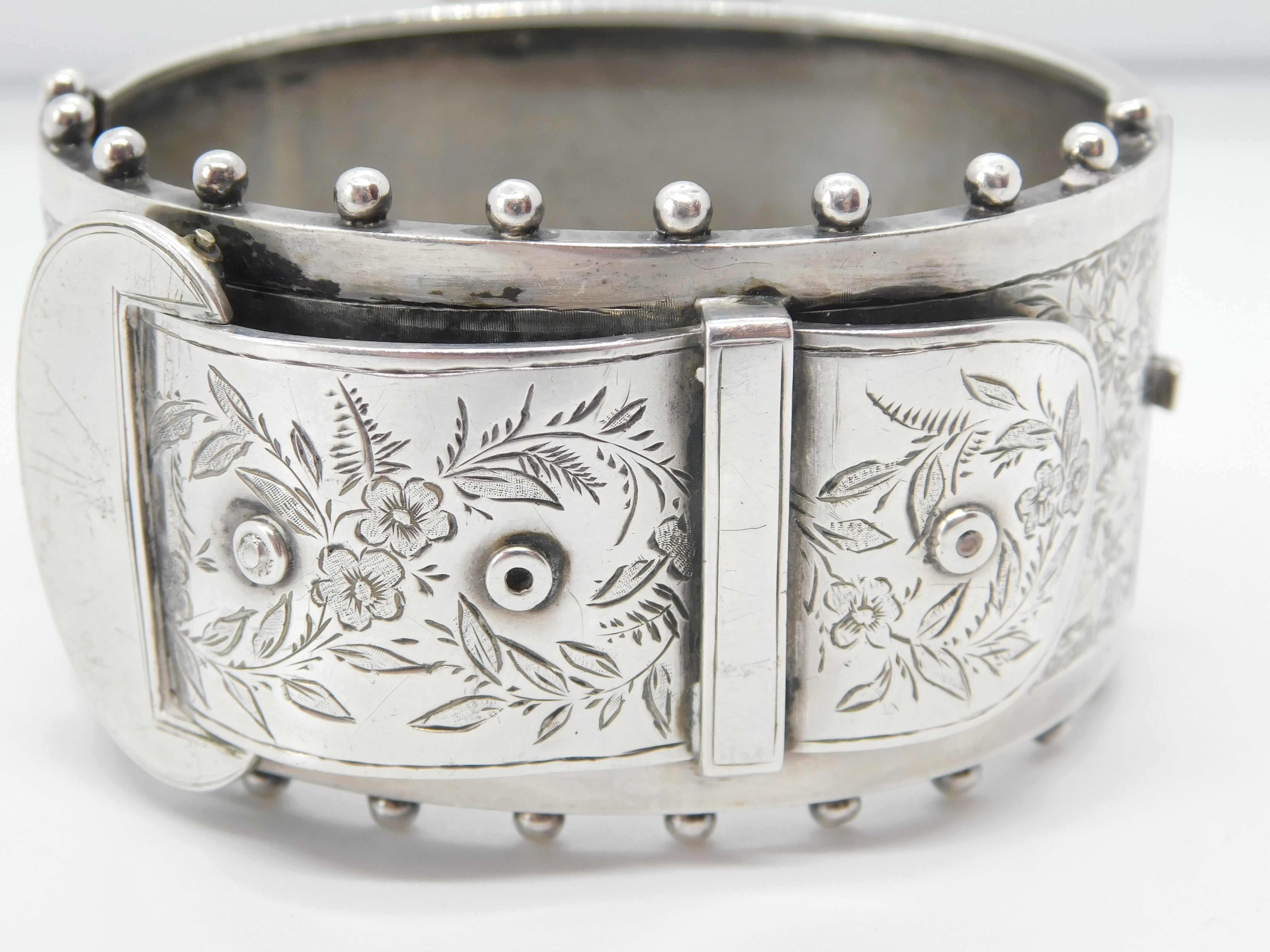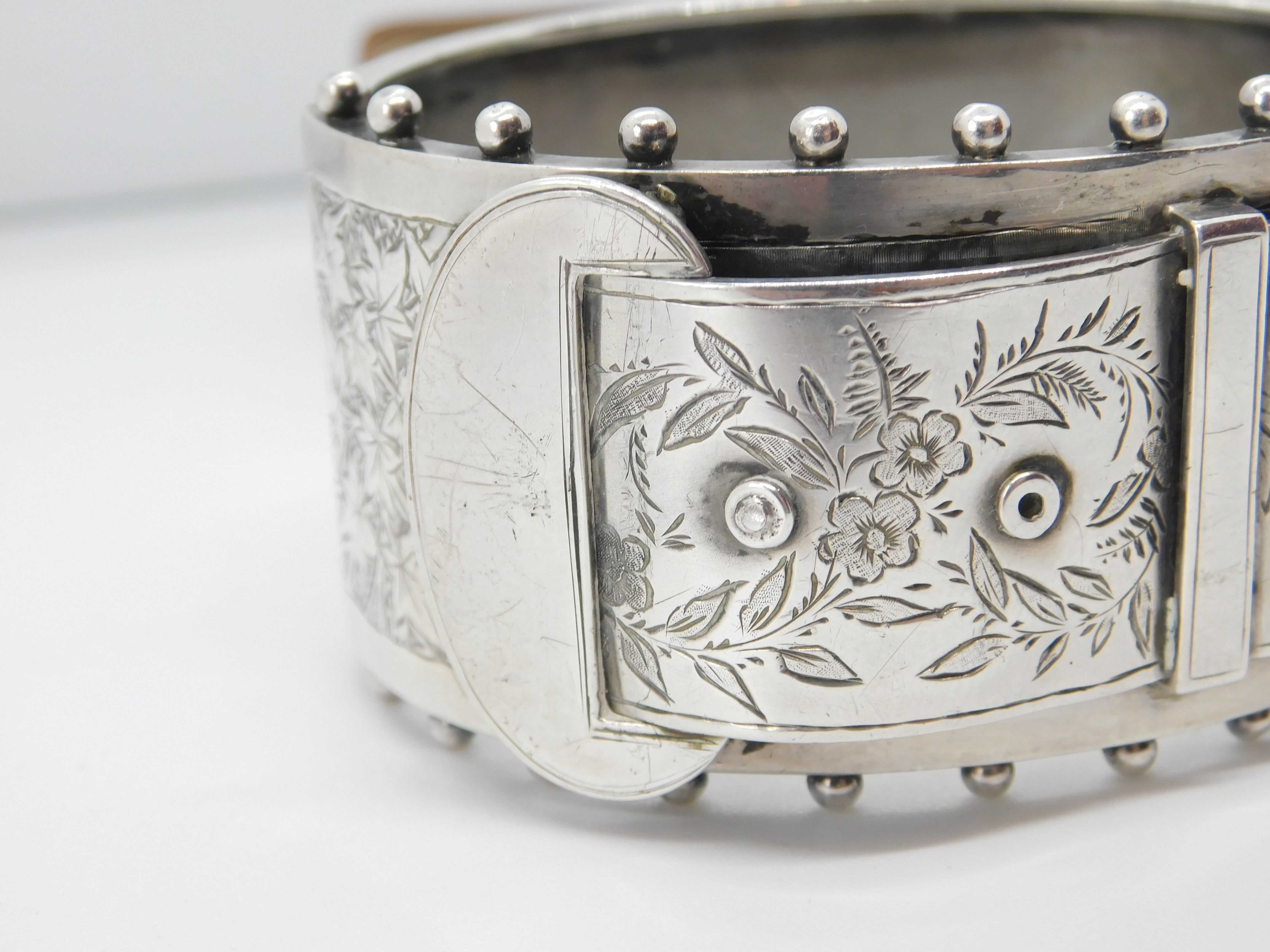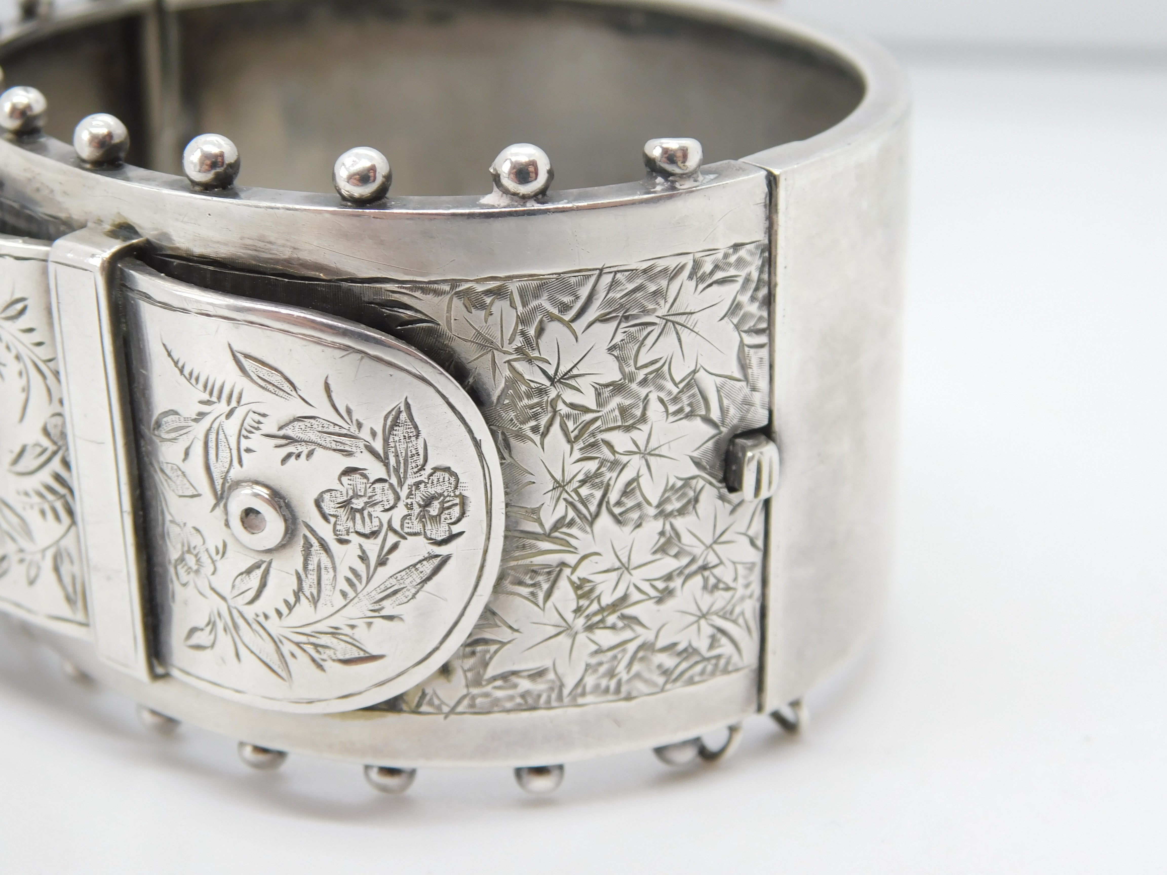 Victorian Sterling Silver Aesthetic Movement Buckle Sweetheart Bangle c1880