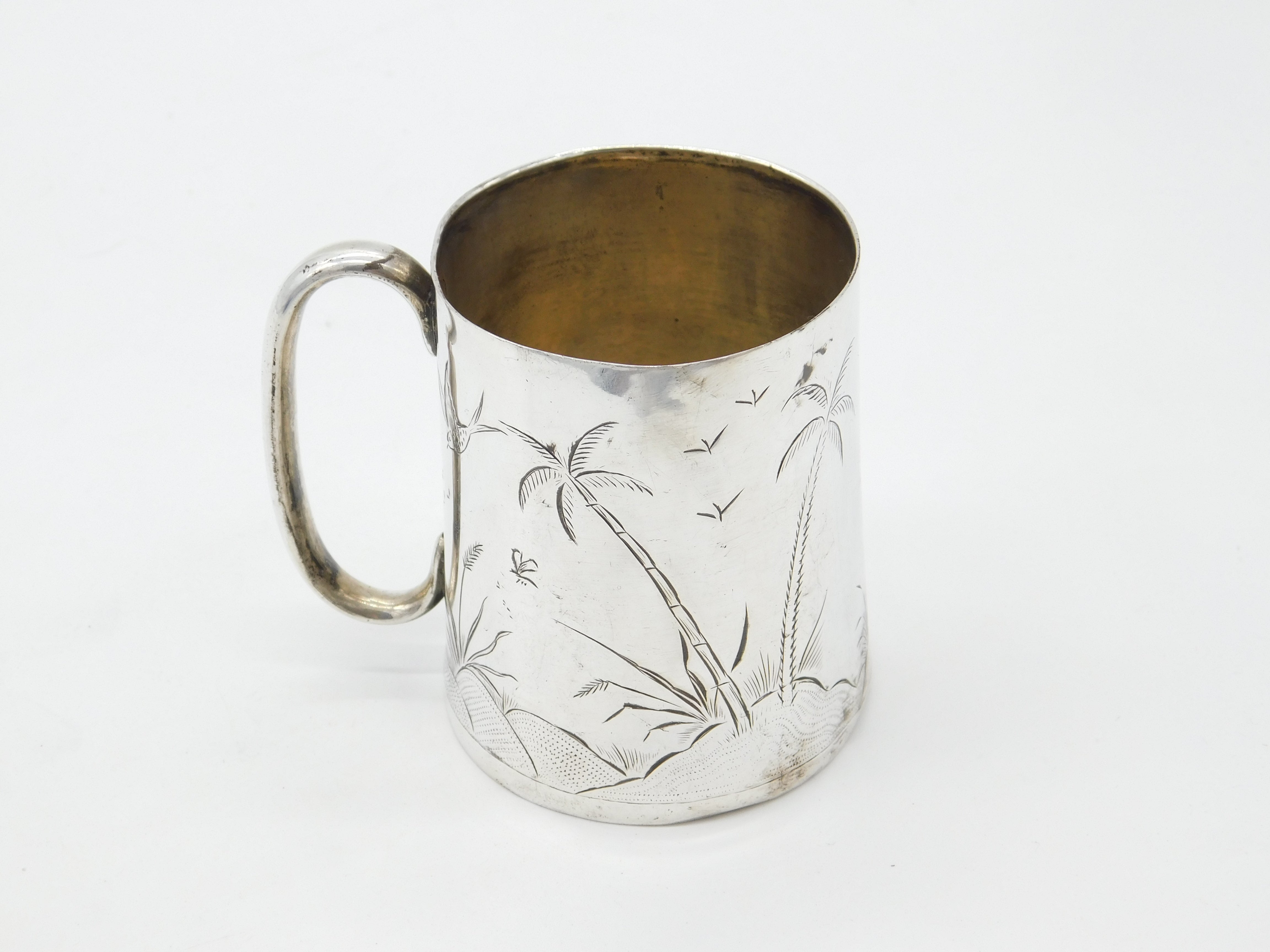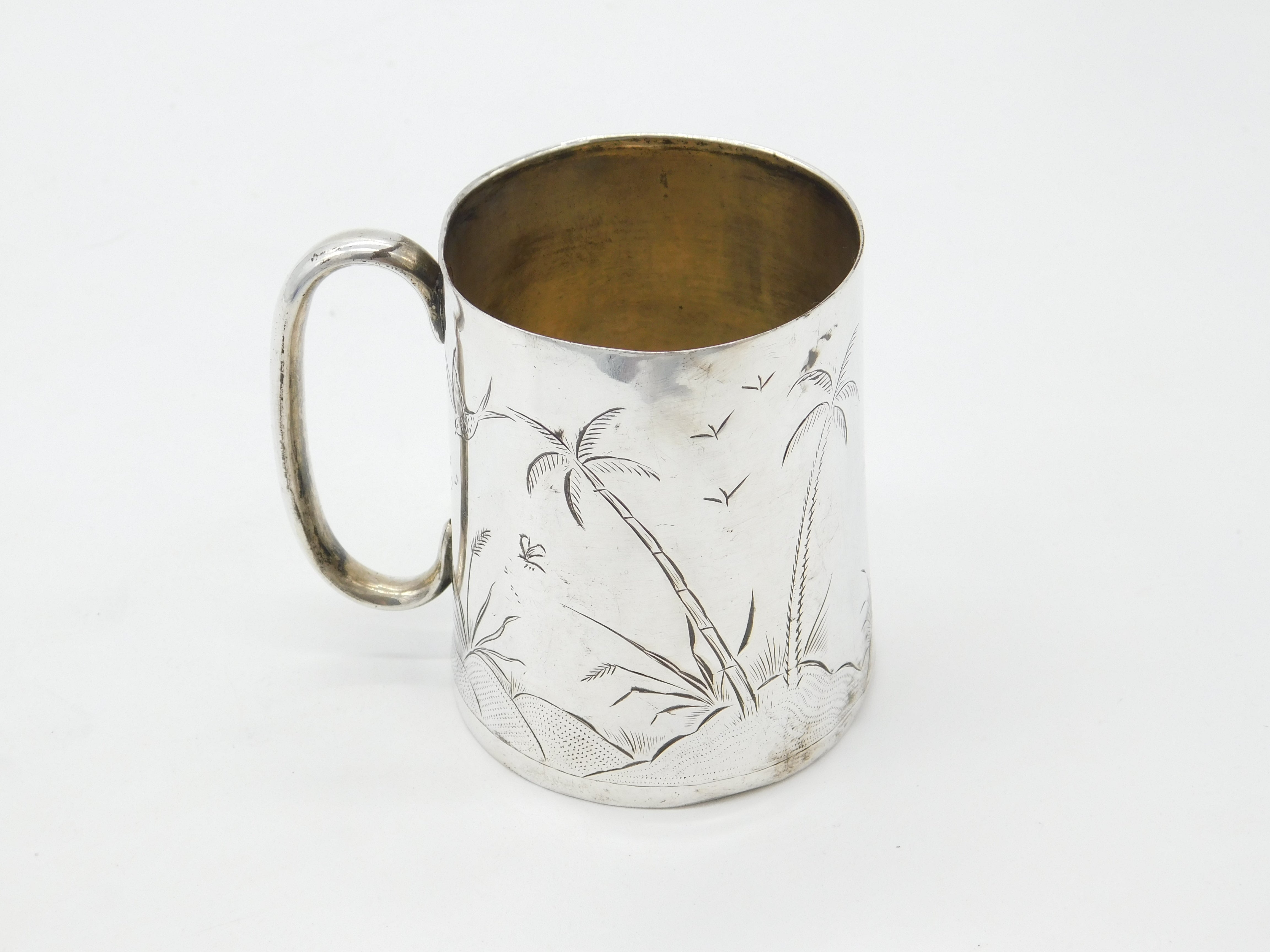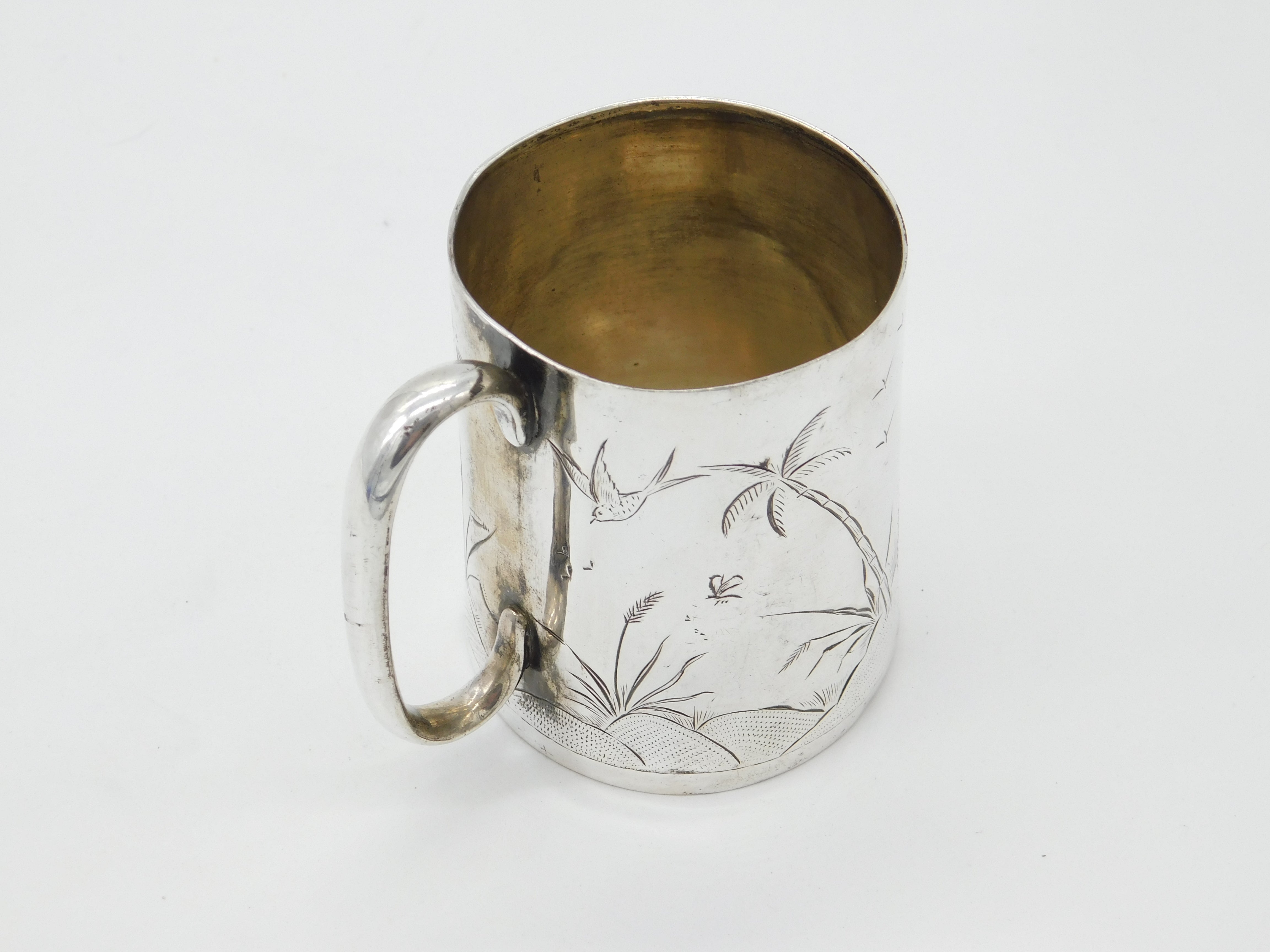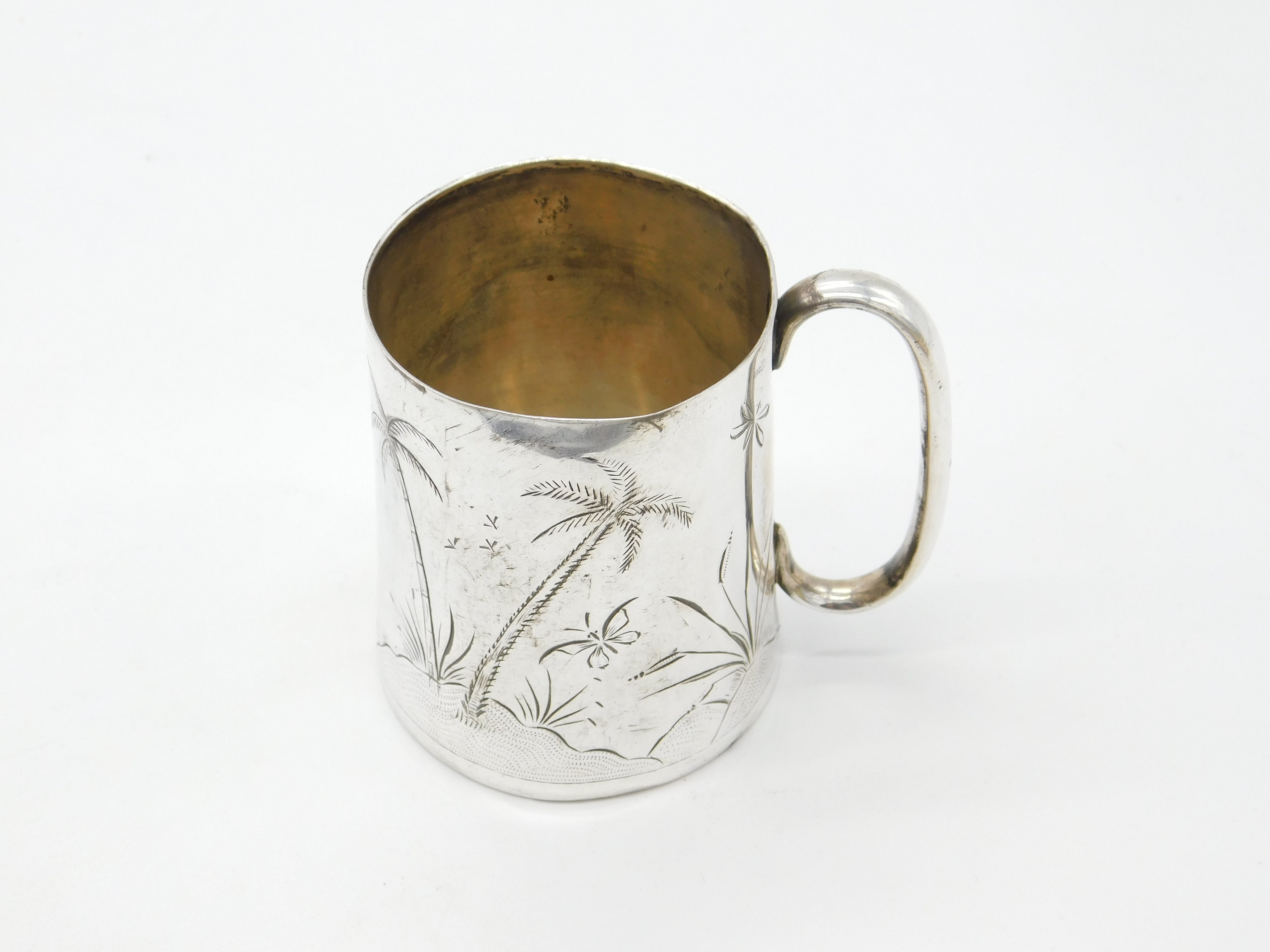 Victorian Sterling Silver Aesthetic Movement Christening Mug Antique c1860