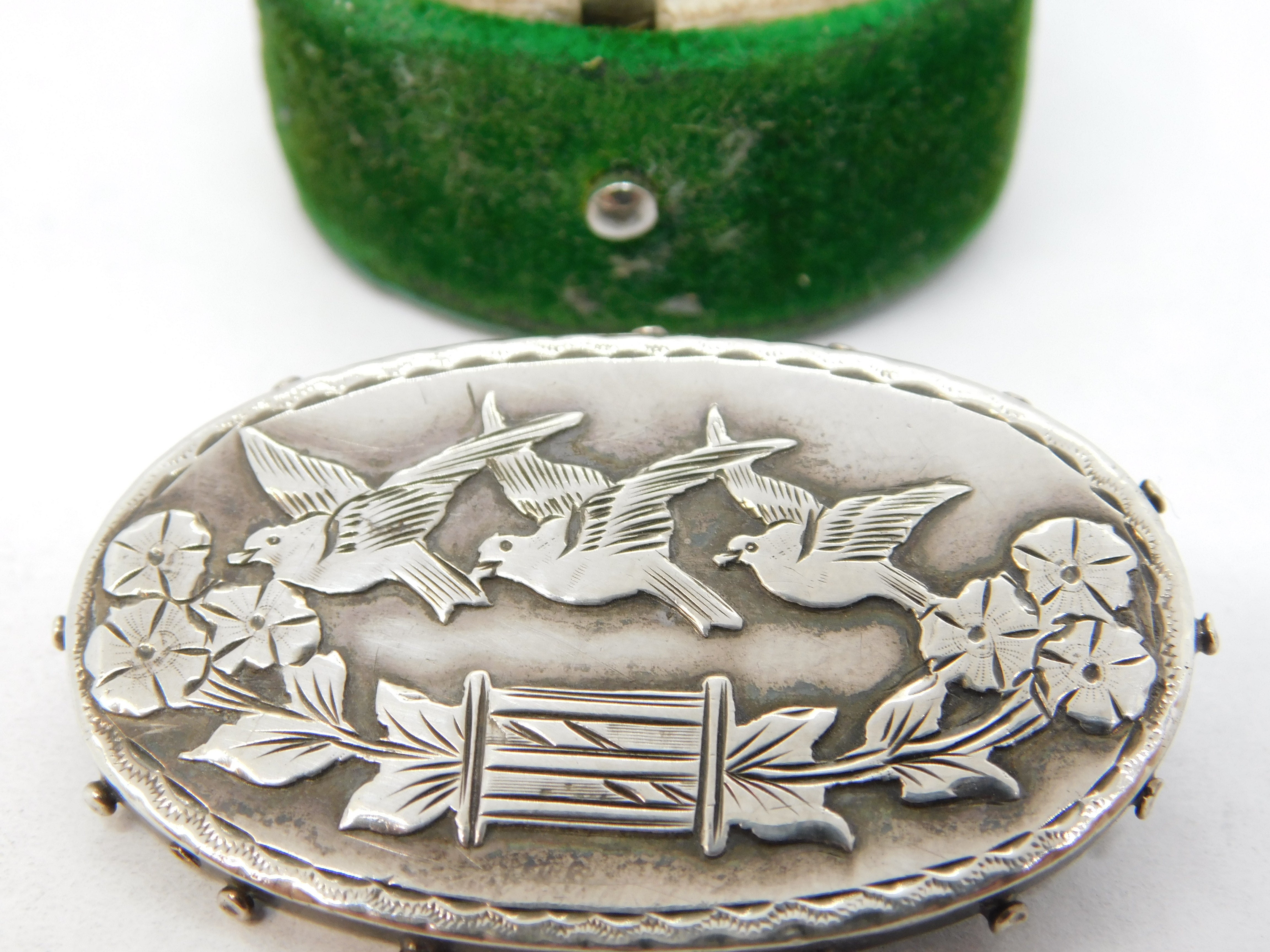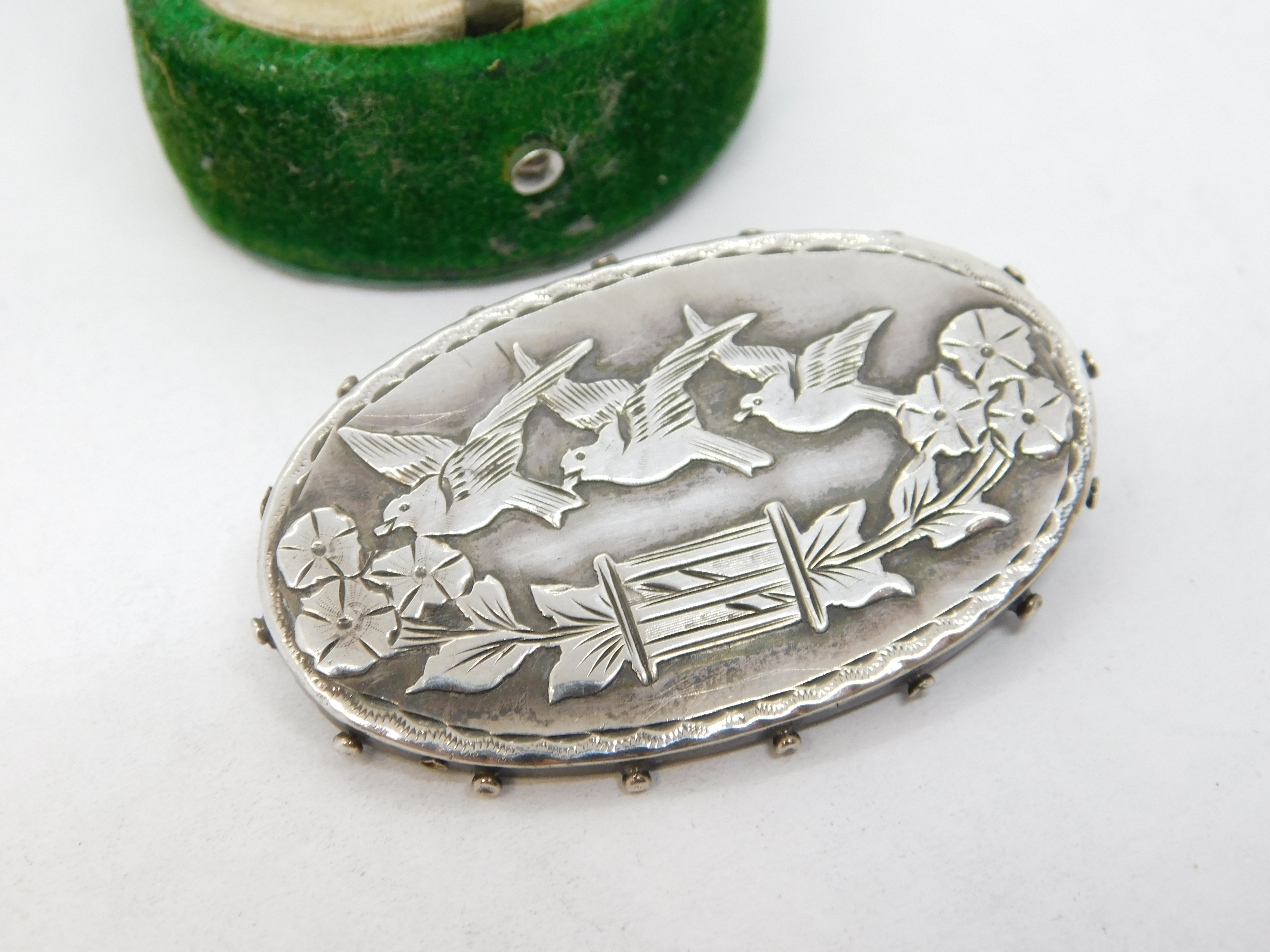 Victorian Sterling Silver Aesthetic Swallow Sweetheart Brooch Antique c1890