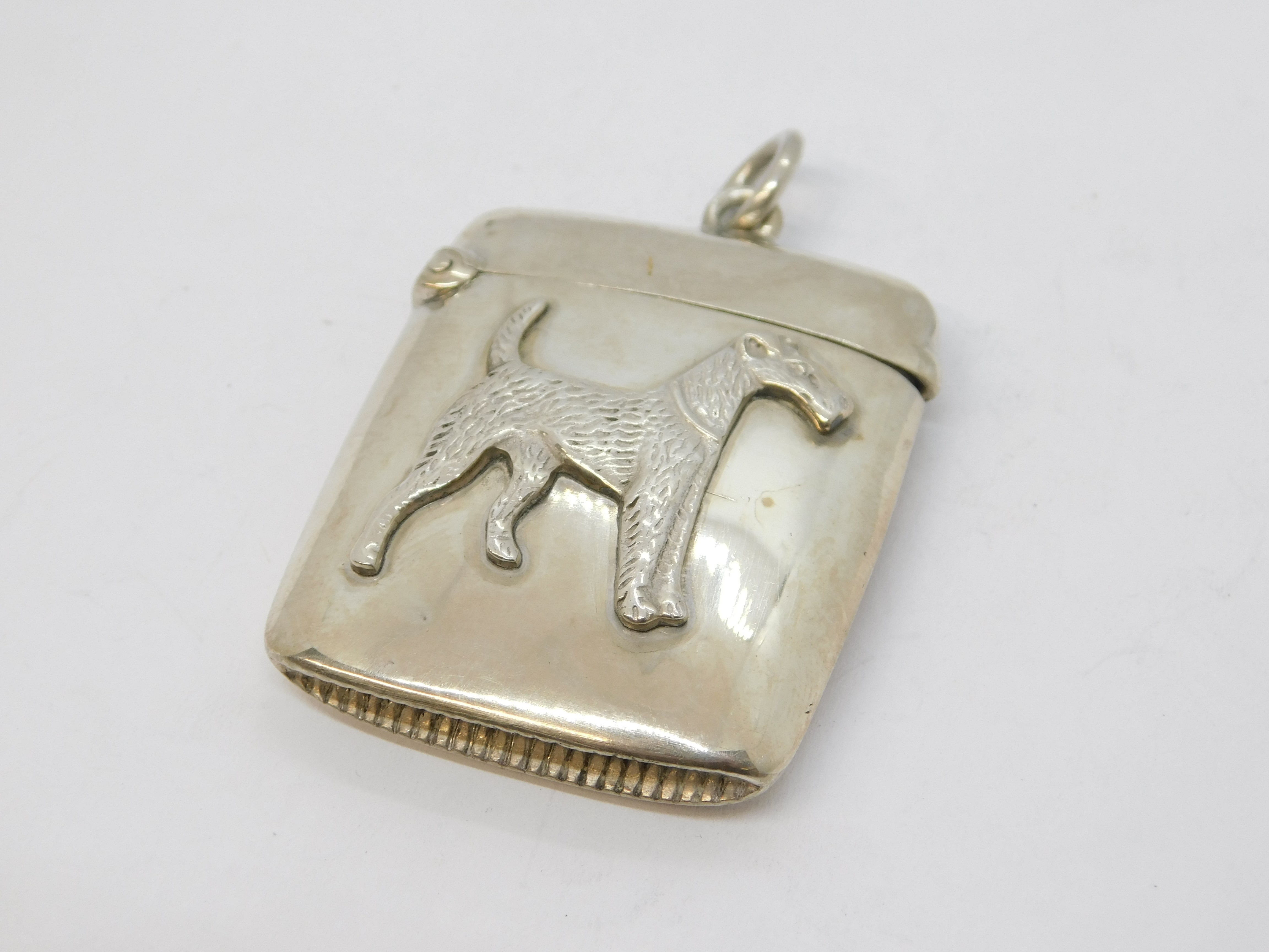 Victorian Sterling Silver Airedale Terrier Dog Vesta Case Antique 1897 Bham
