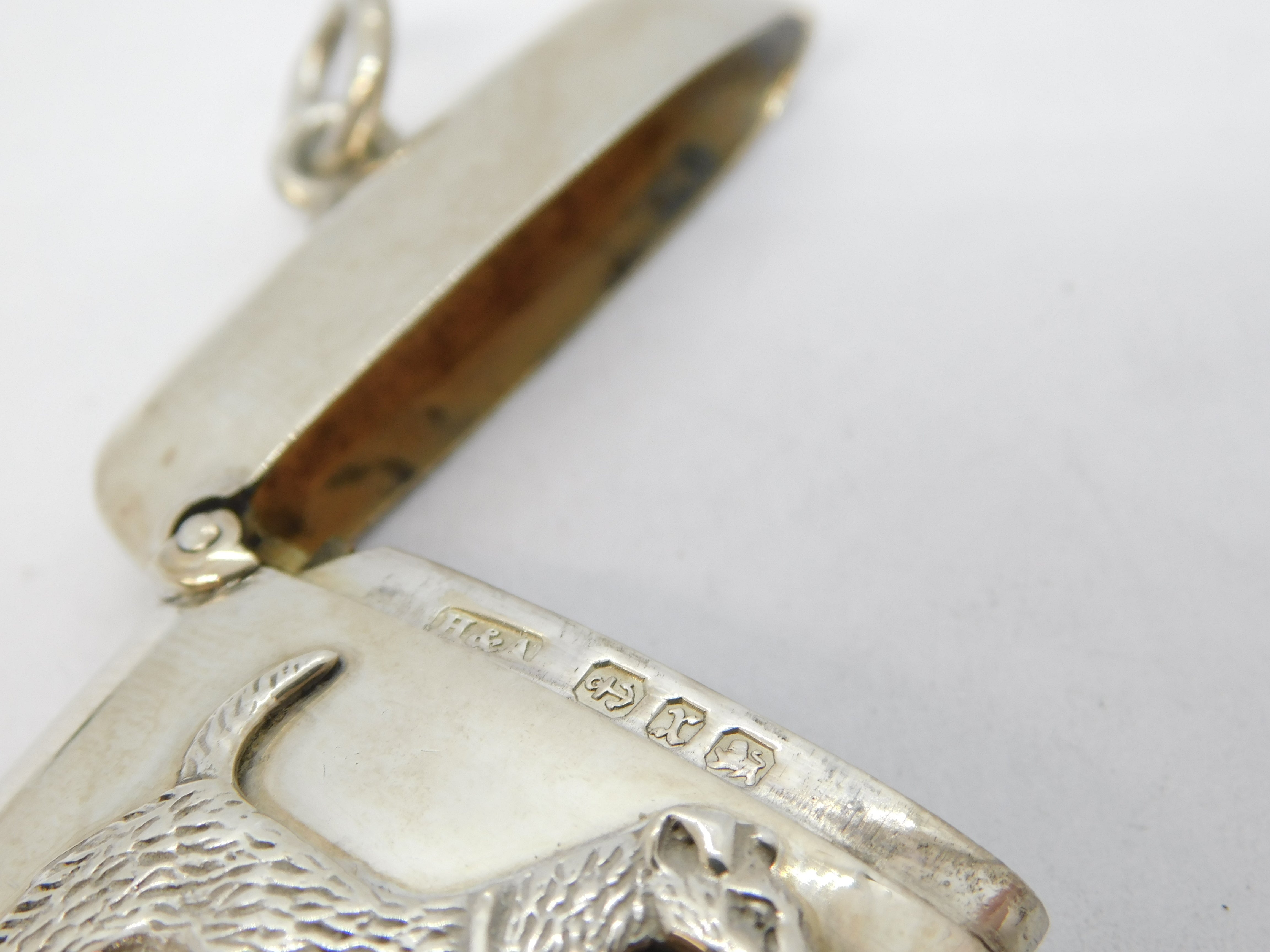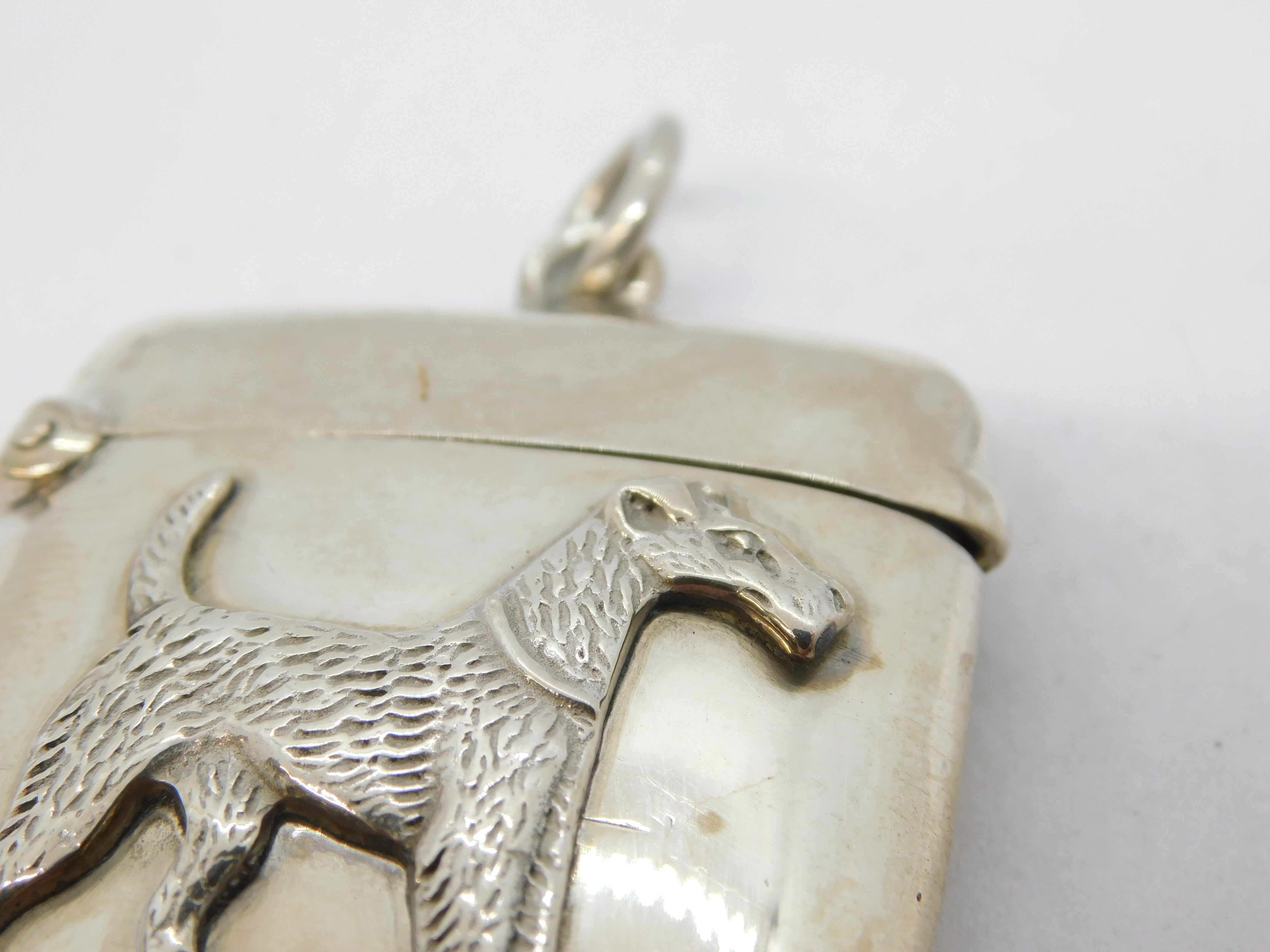 Details: A fantastic and wonderfully designed antique Victorian sterling silver vesta case with lovely image of an airedale terrier dog to the front hallmarked Birmingham 1897 by Horton & Allday. This is a wonderful item that would make a perfect gift or addition to any collection. We are more than happy to provide XRF reports for items upon request.