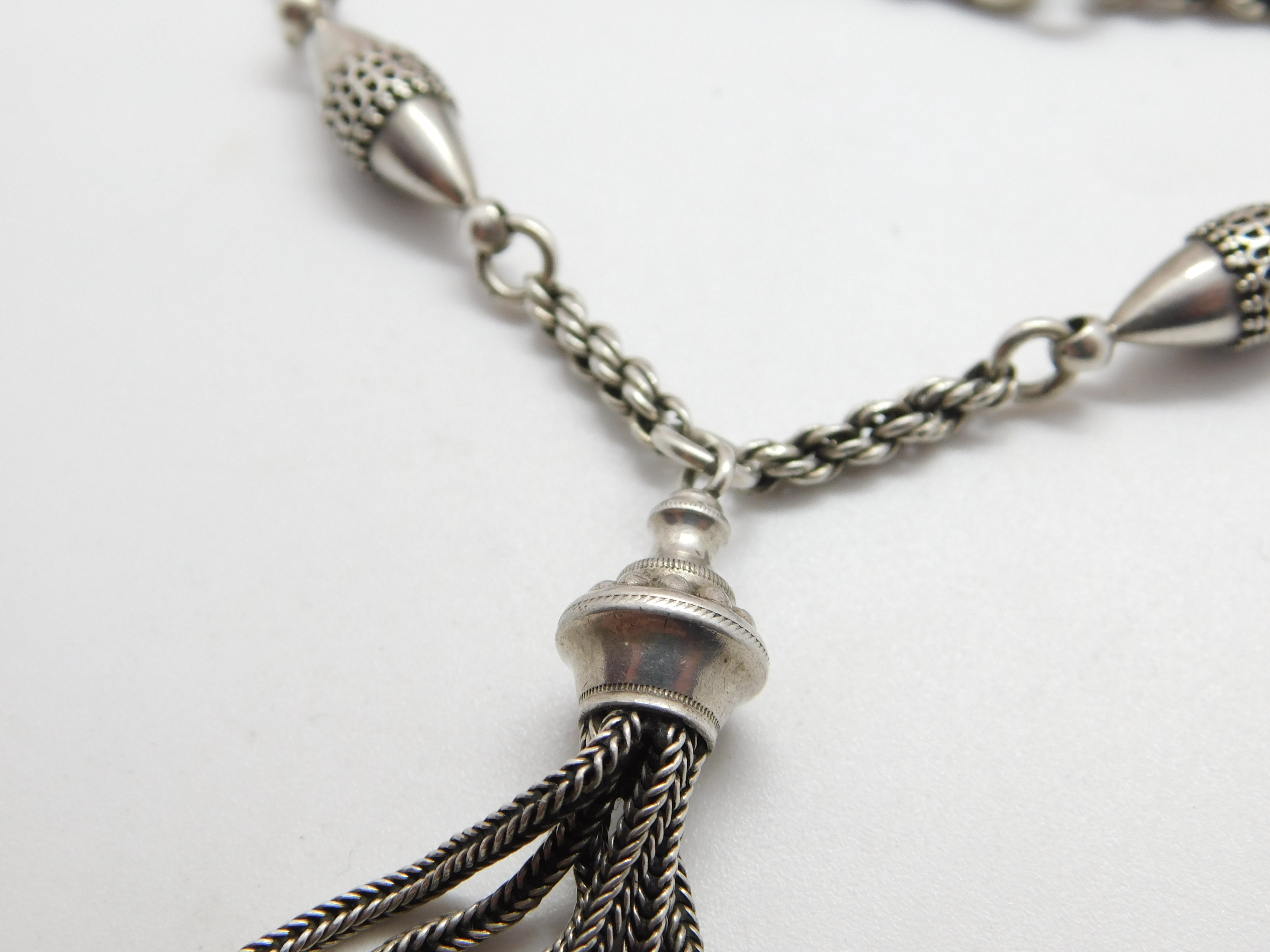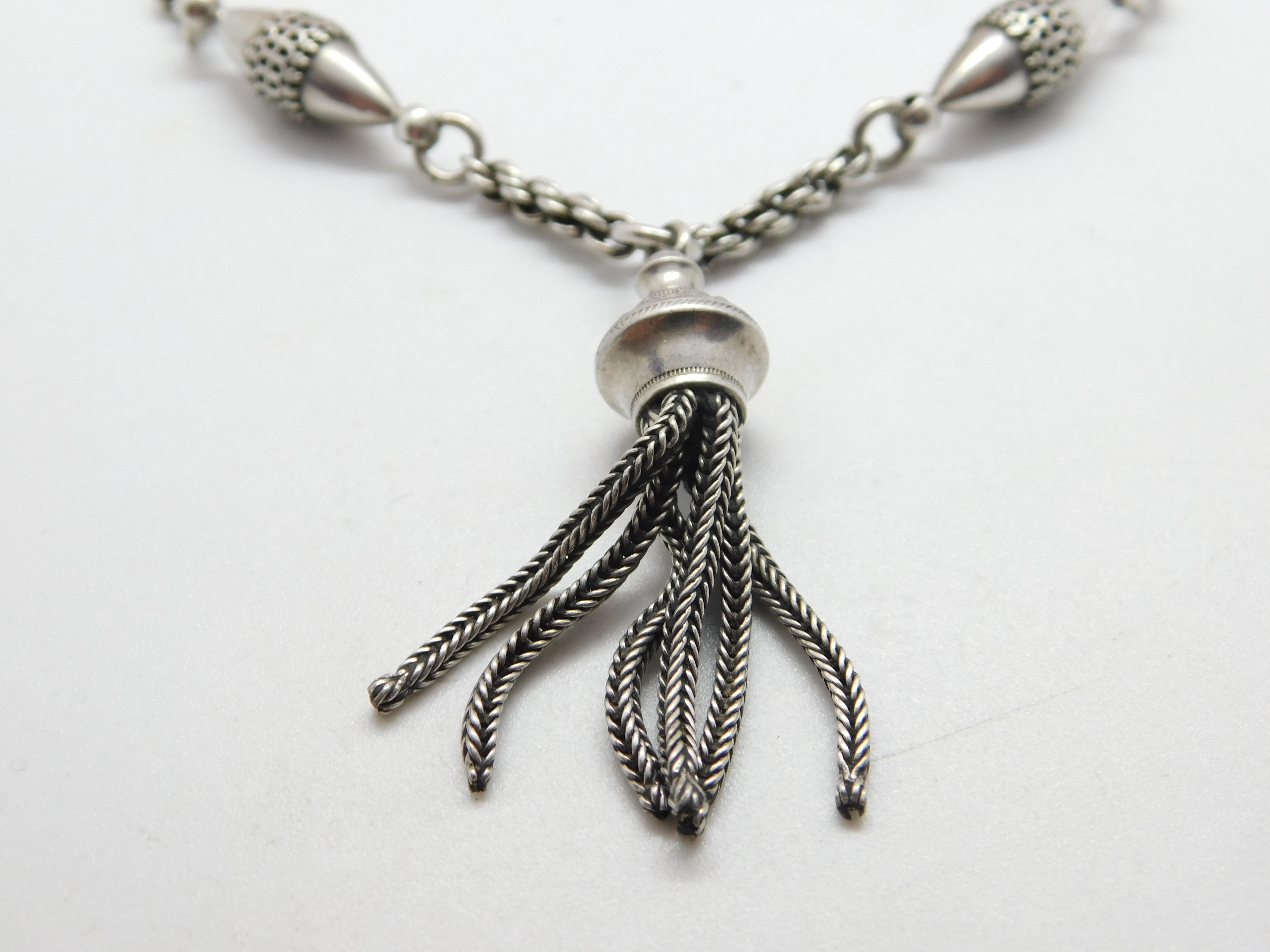 Victorian Sterling Silver Albertina Tassel Watch Chain Bracelet c1860 Antique