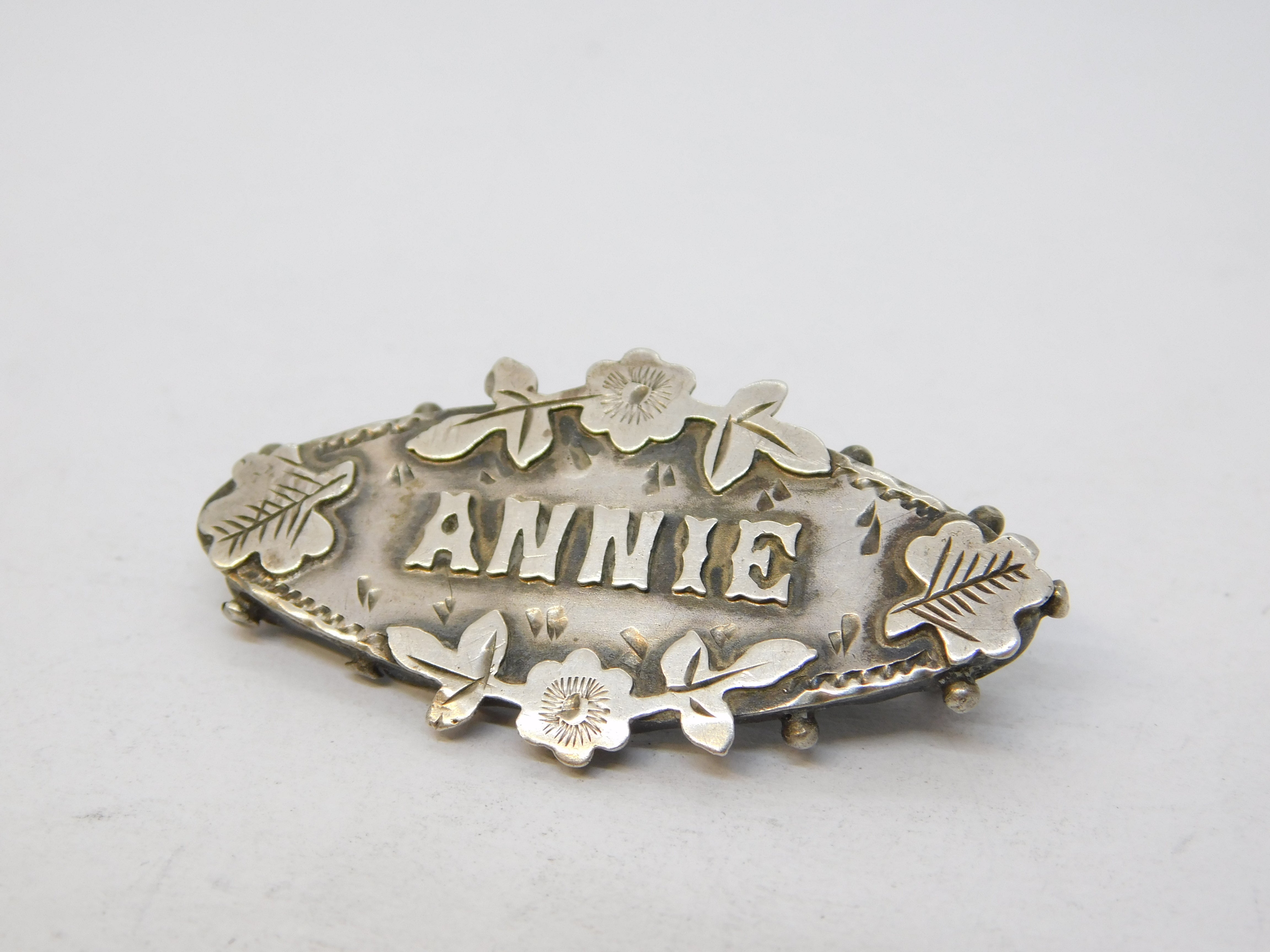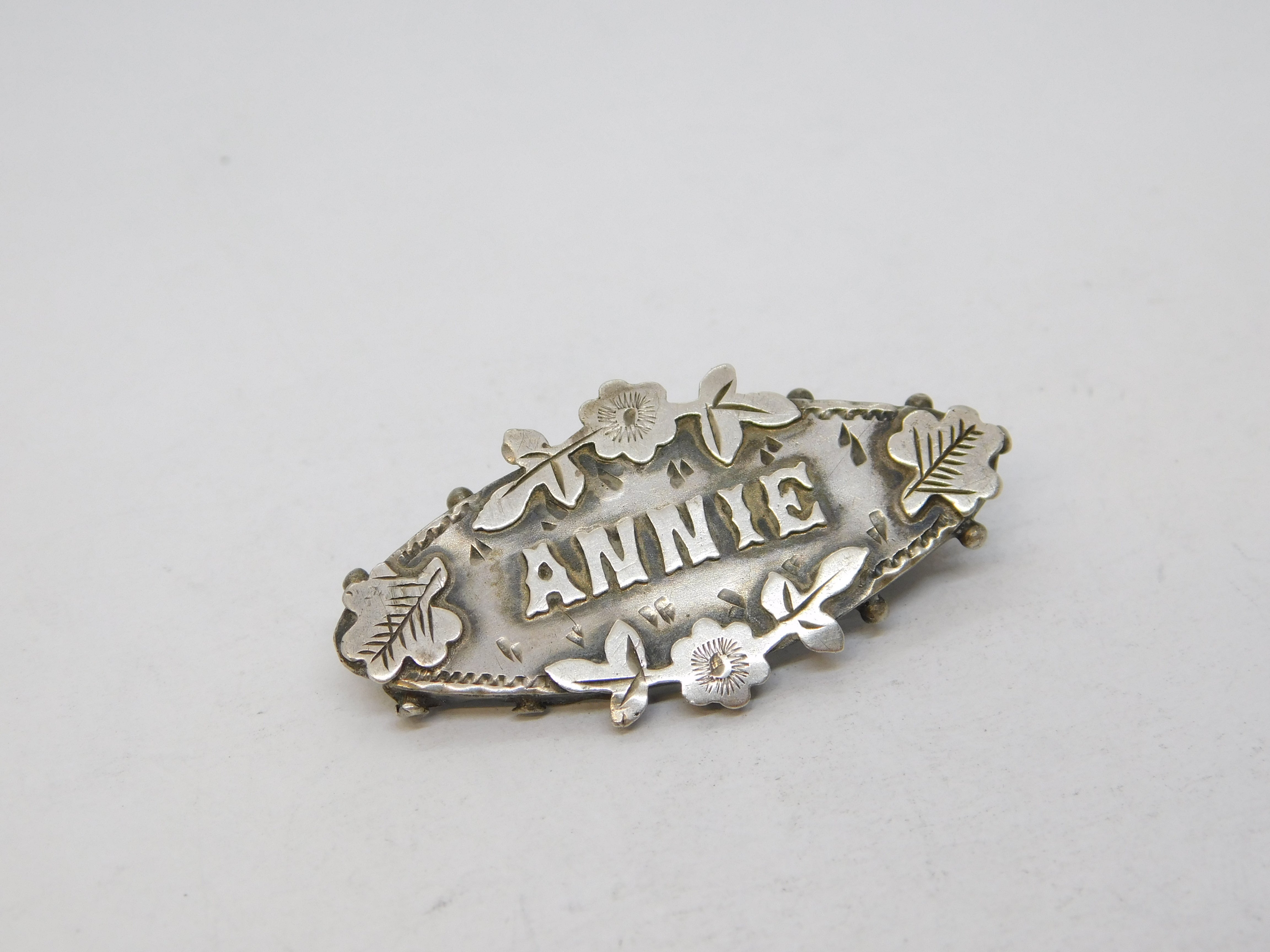 Victorian Sterling Silver Annie Name Brooch Antique 1898 Birmingham