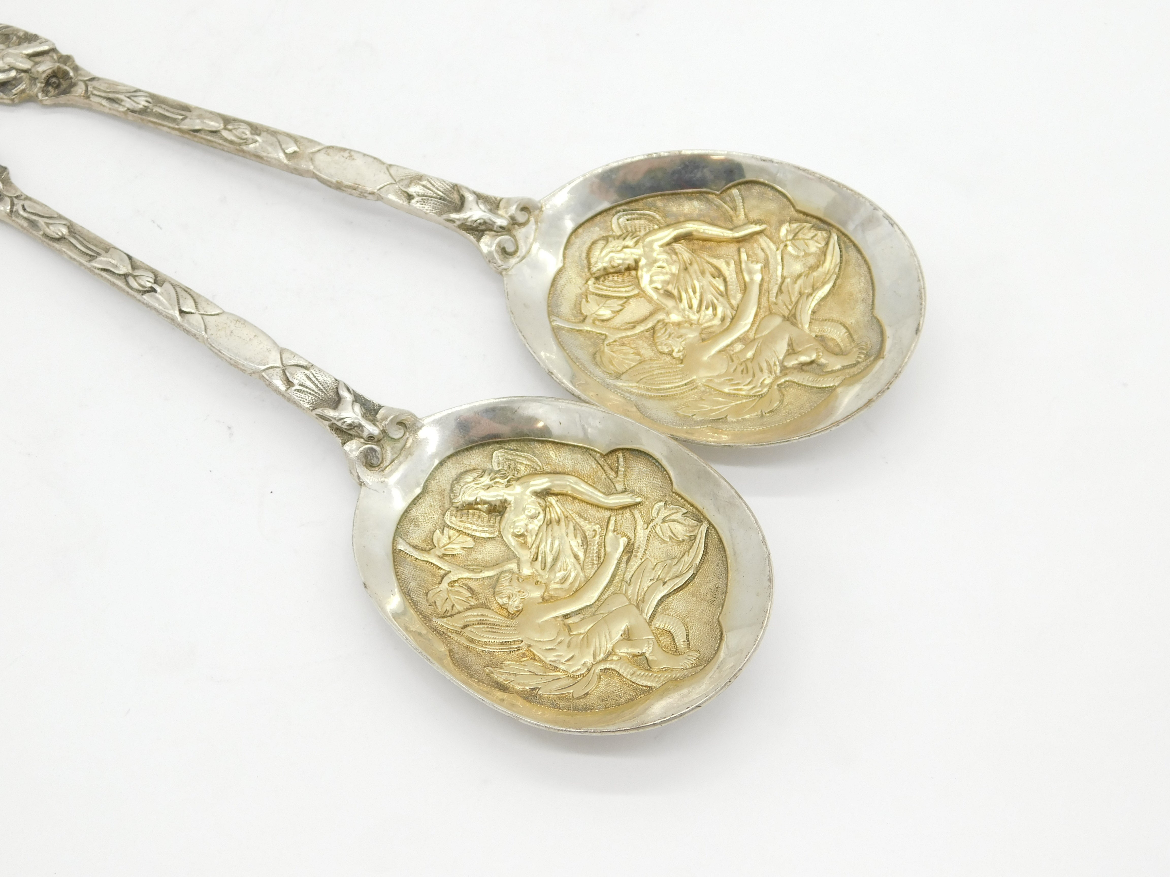 Victorian Sterling Silver Art Nouveau Fairy Pattern Spoons Antique 1897 London