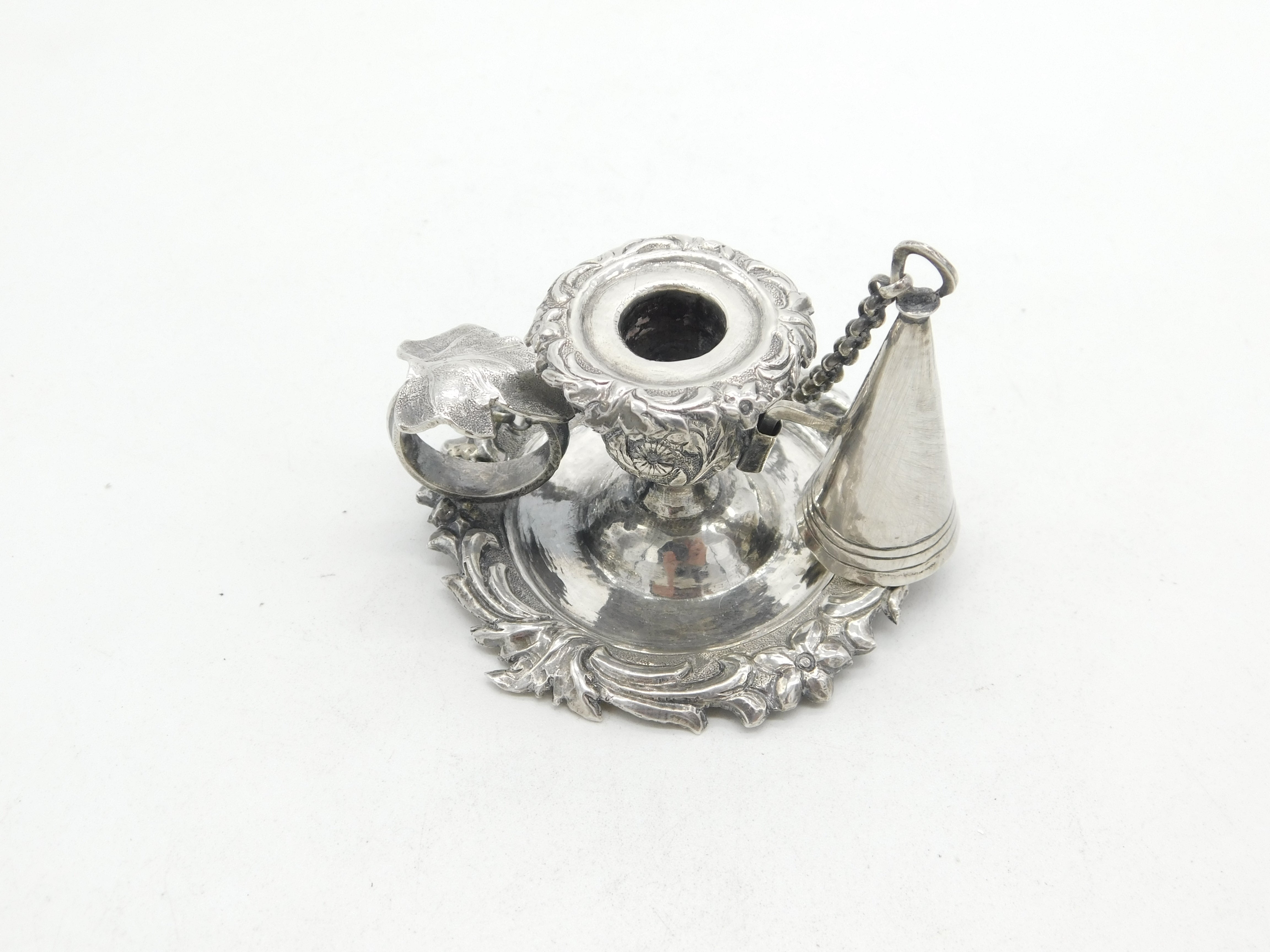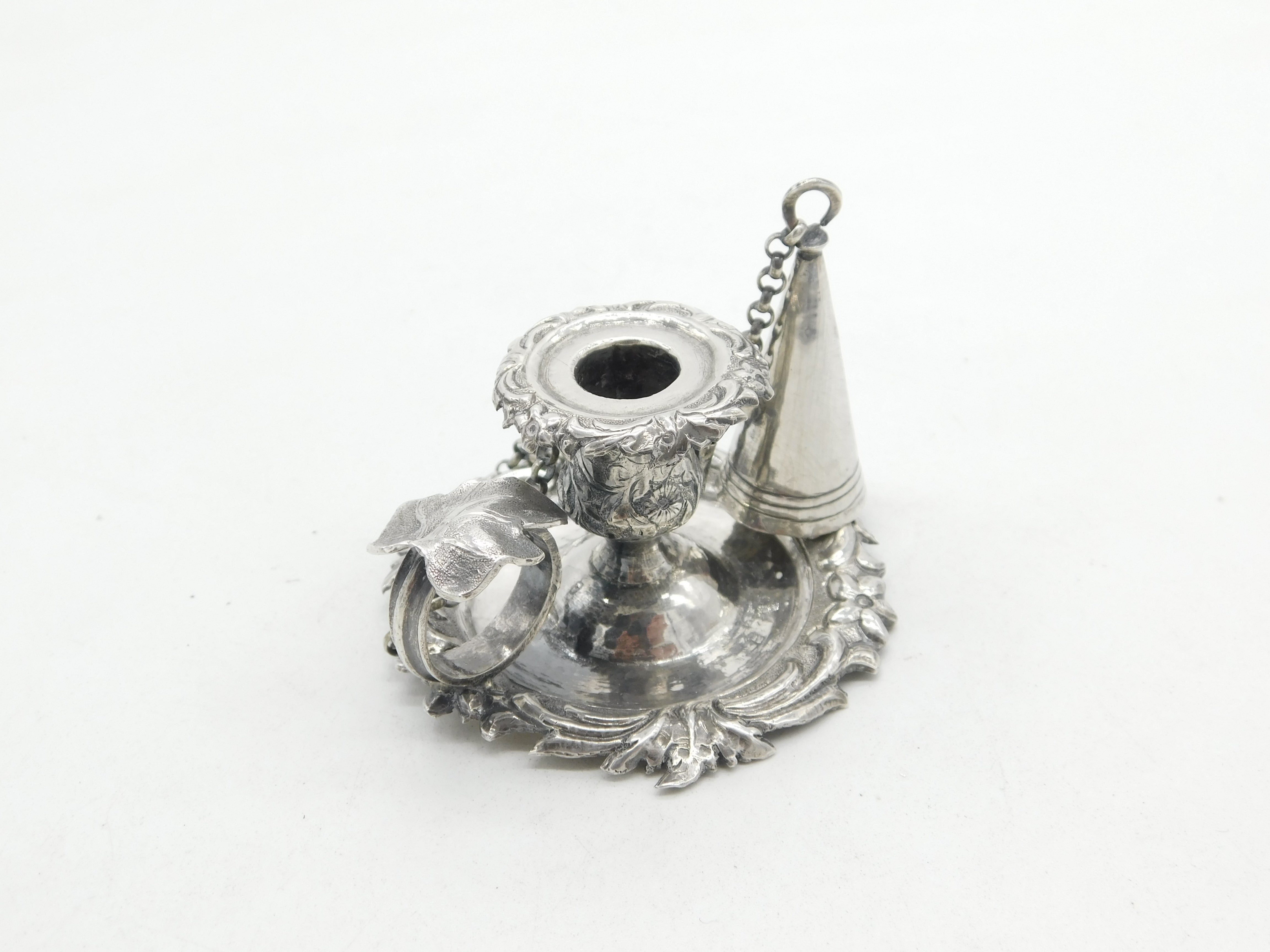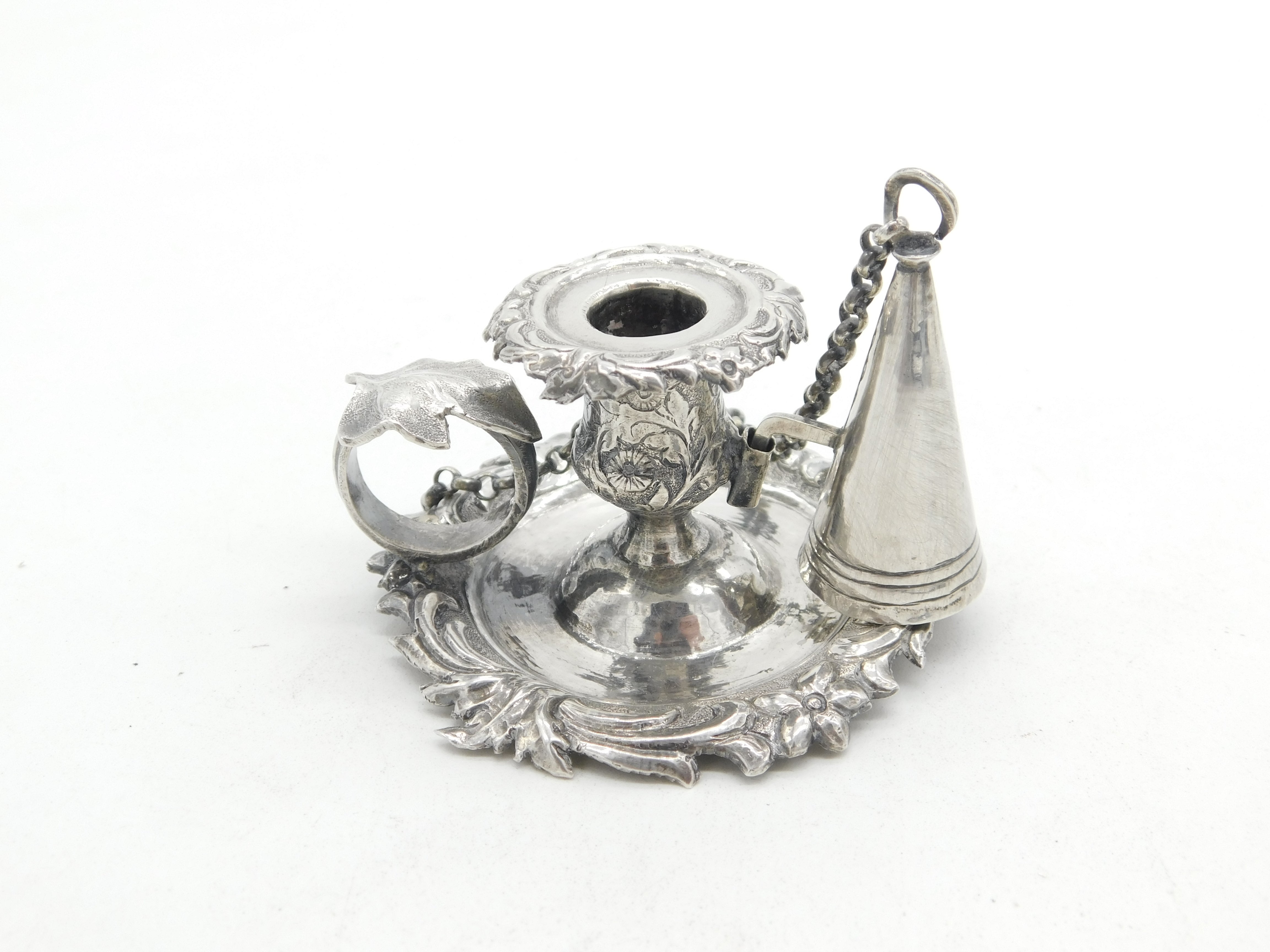 Victorian Sterling Silver Art Nouveau Leaf Pattern Chamberstick c1880 Antique