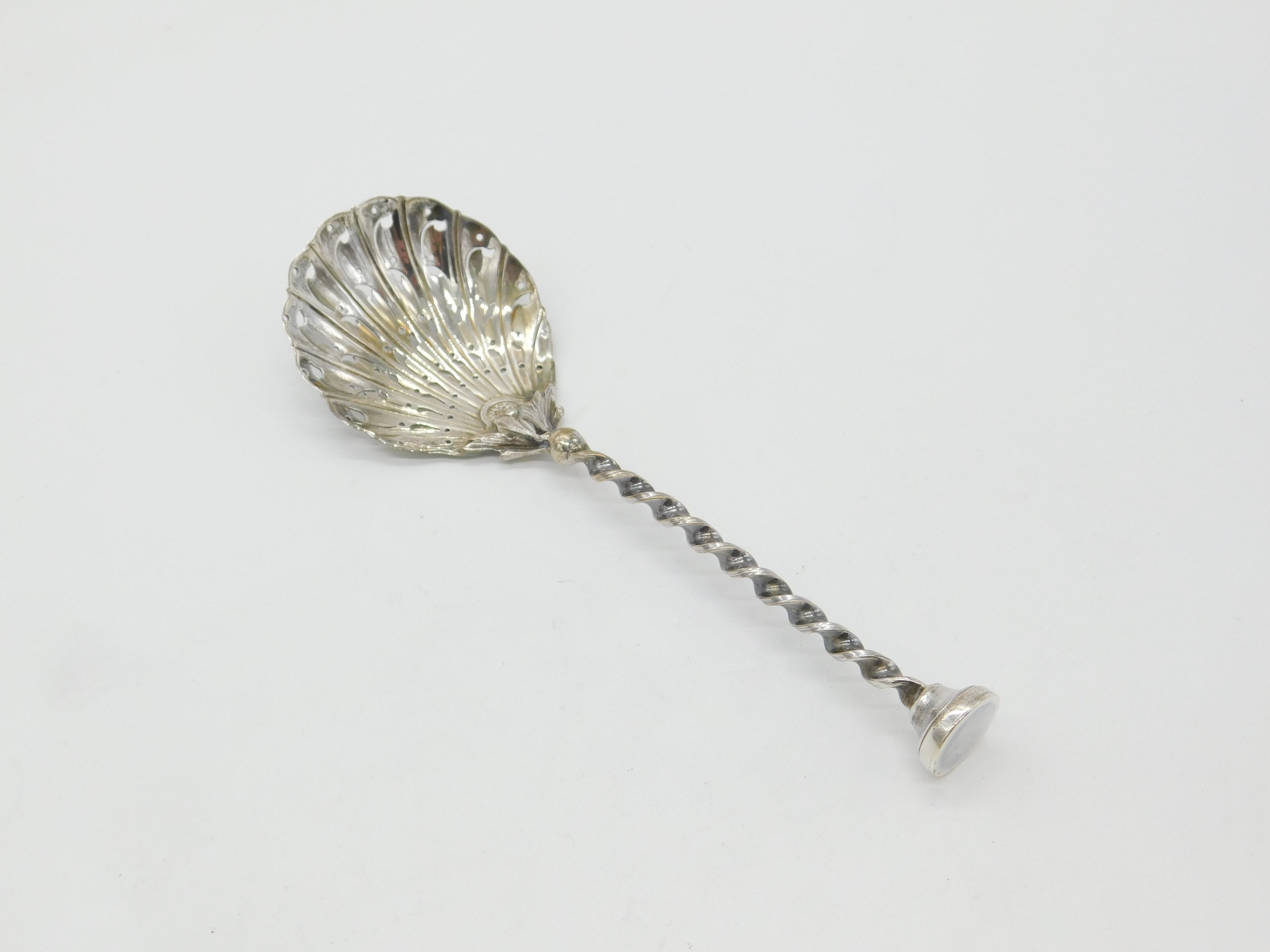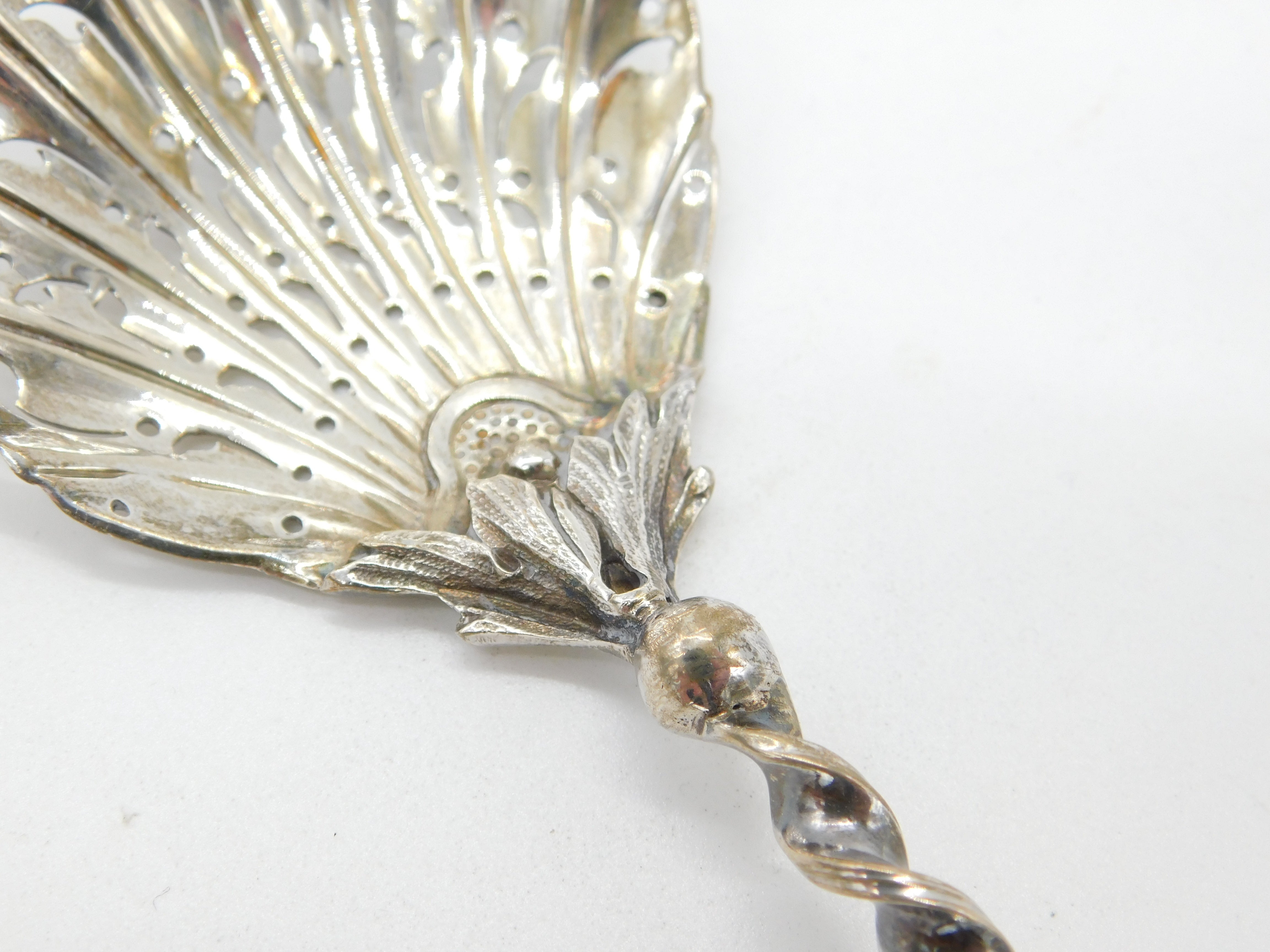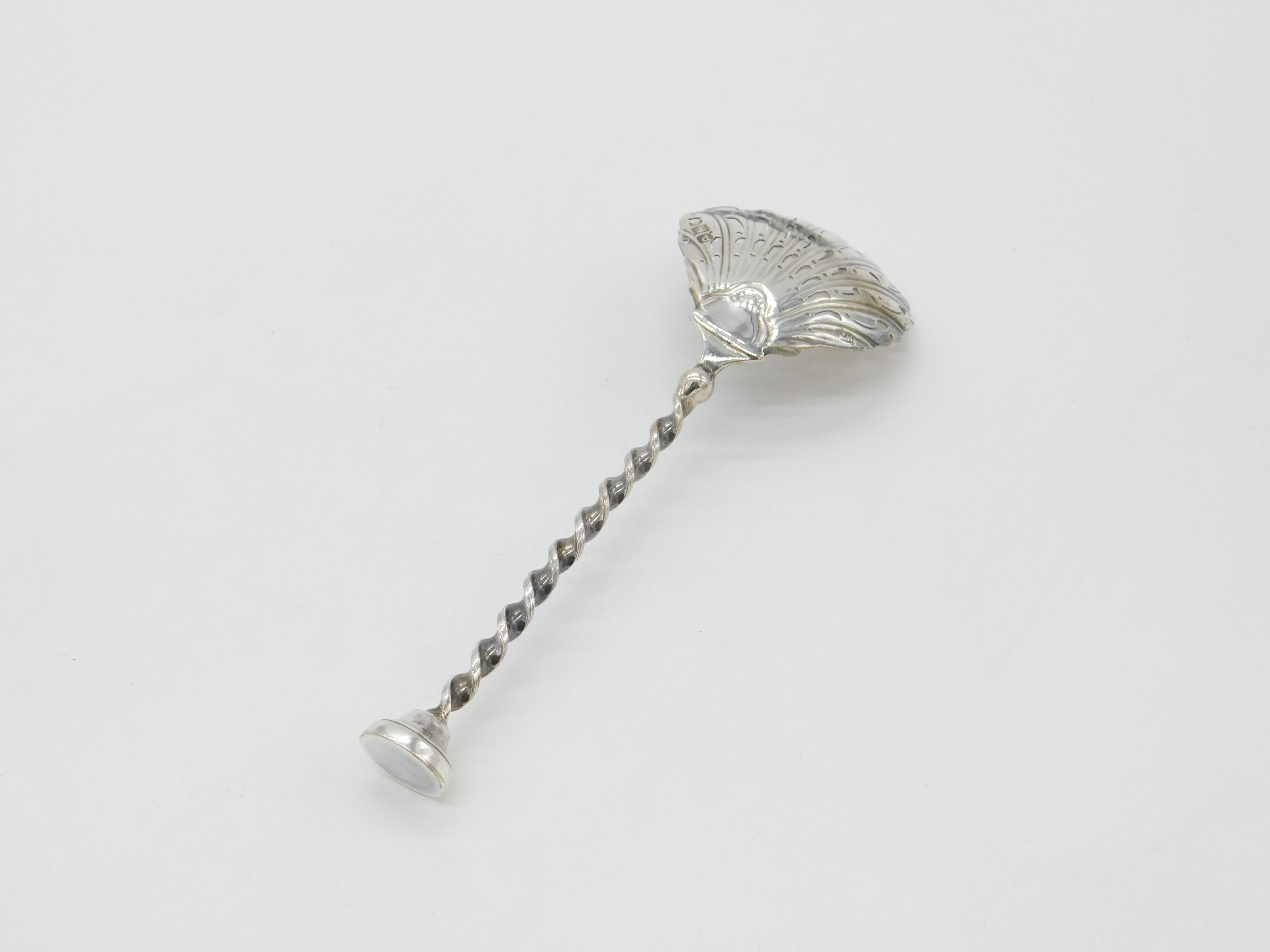 Details: A fantastic and wonderfully designed antique Victorian sterling silver large caster spoon with shell bowl, twisted stem and sugar crusher terminal hallmarked London 1899 by Mappin & Webb. A fine art nouveau example. This is a wonderful item that would make a perfect gift or addition to any collection. The BOX pictured is for PRESENTATION ONLY and is NOT included in the listings but used to frame the pictures unless specifically stated otherwise.