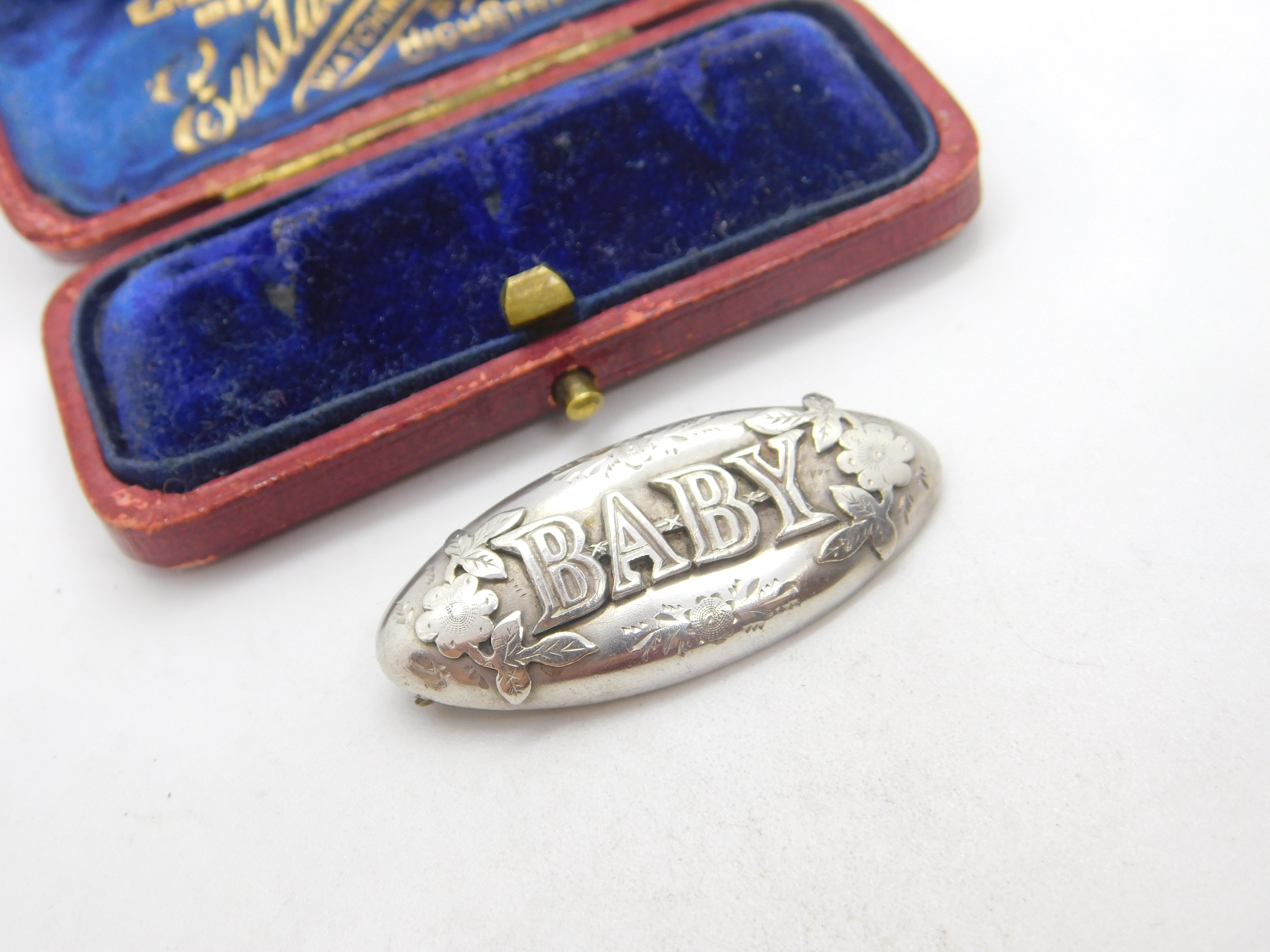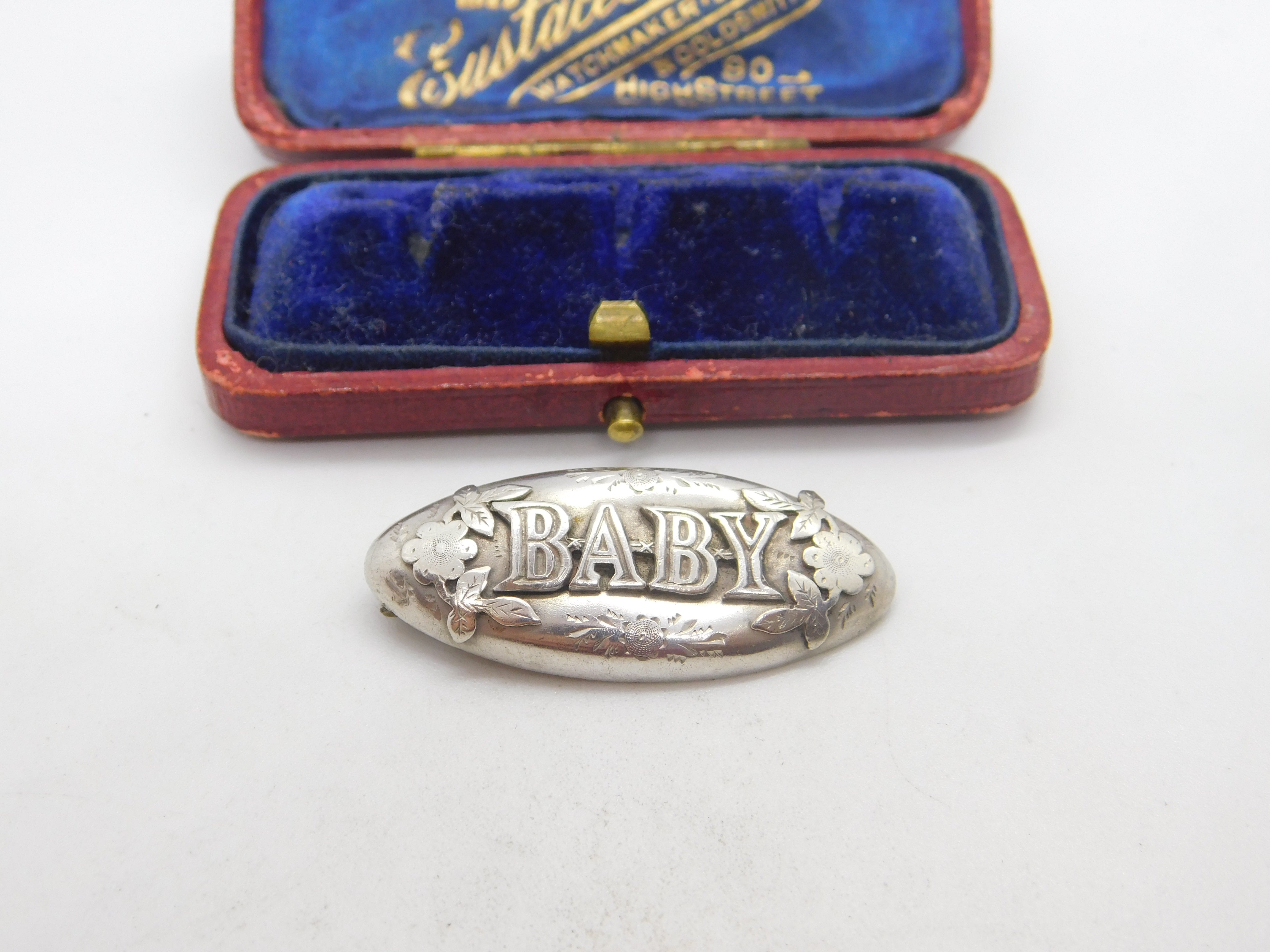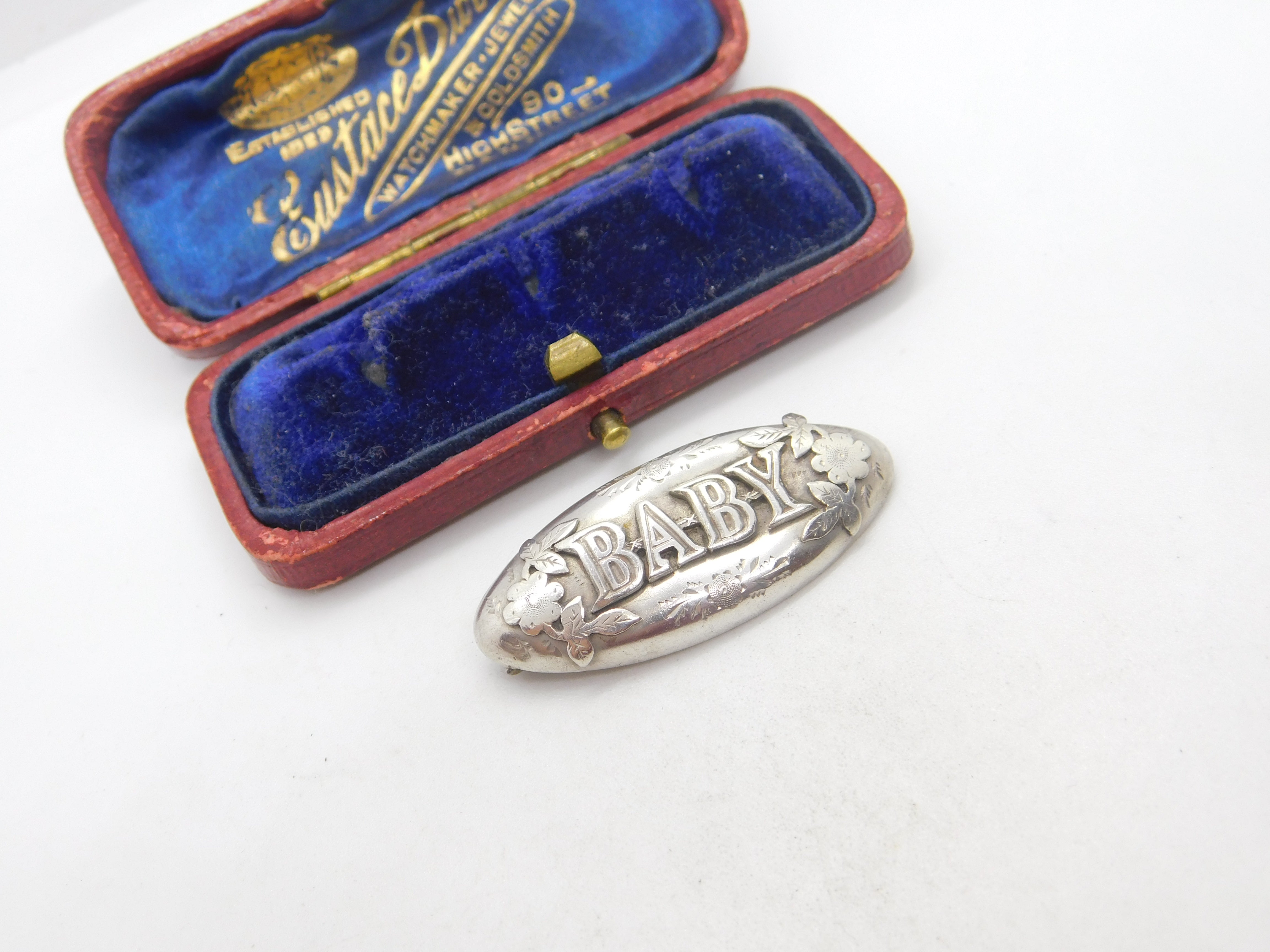 Victorian Sterling Silver 'Baby' Christening Brooch 1876 Birmingham Antique