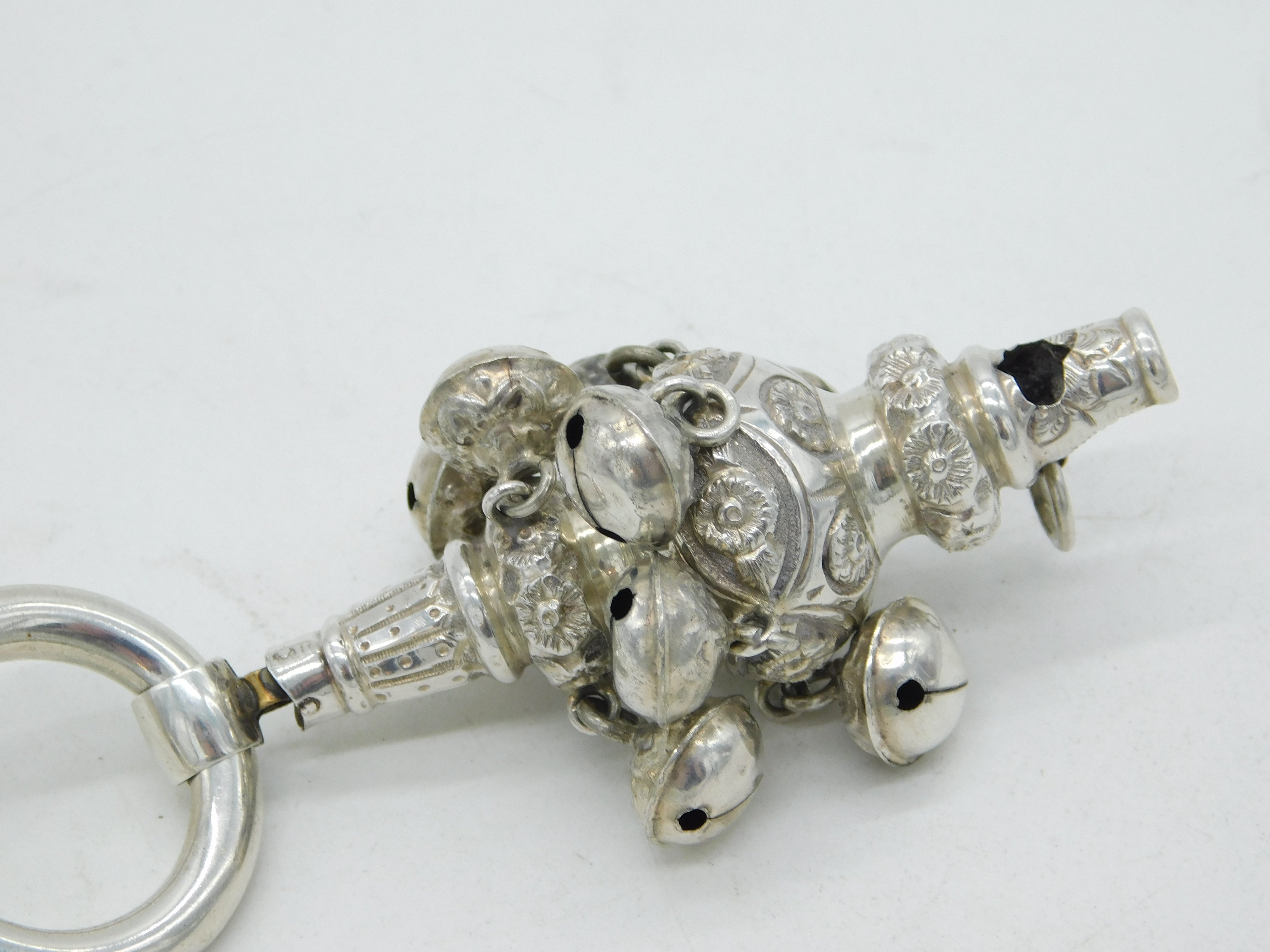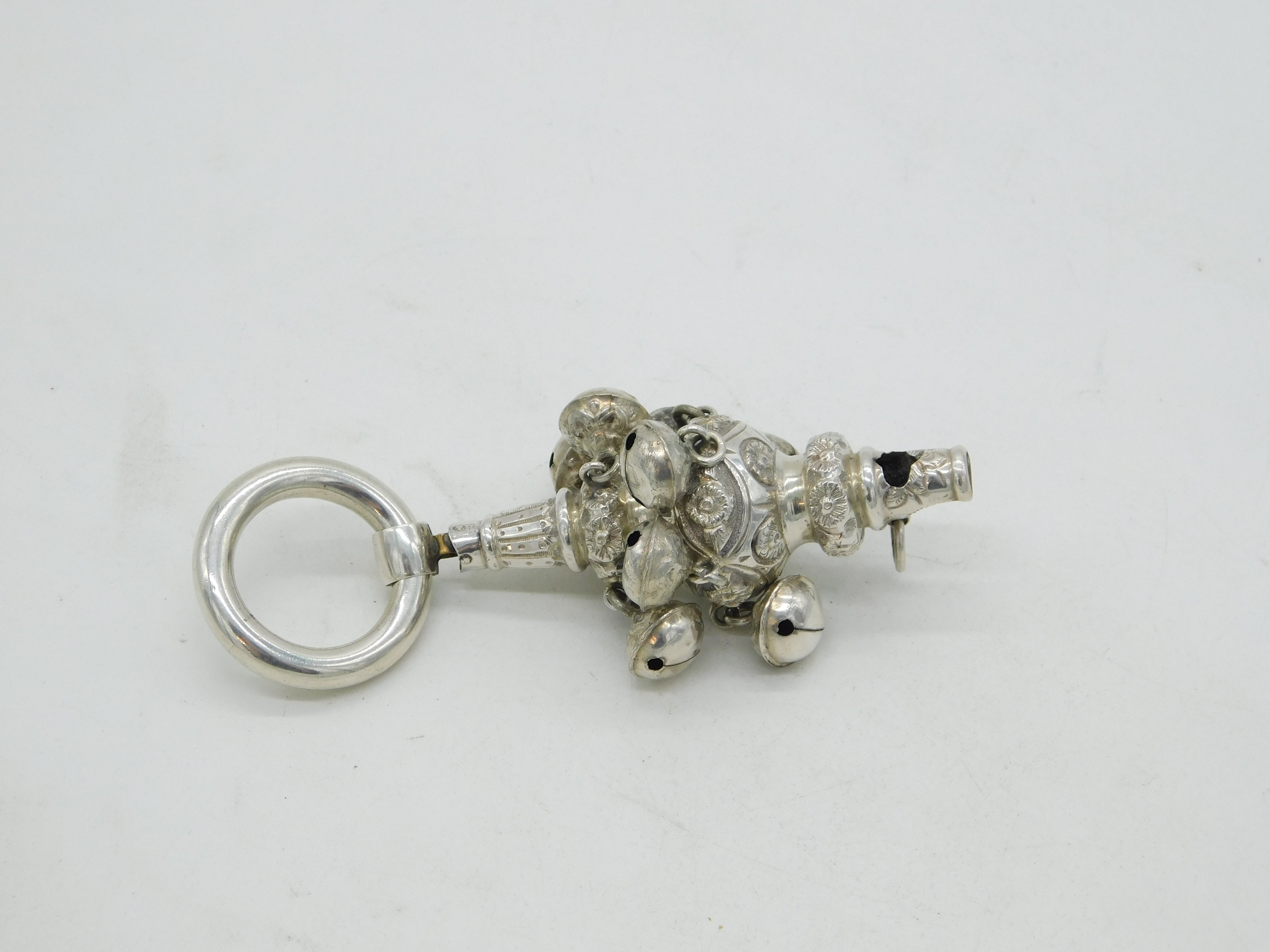 Victorian Sterling Silver Baby Rattle & Teether Antique 1857 Birmingham
