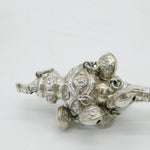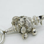 Details: A fantastic and wonderfully designed antique Victorian sterling silver floral pattern baby rattle and teether with charming detailing throughout hallmarked Birmingham 1857 around the bottom edge, eight bells and nice condition. This is a wonderful item that would make a perfect gift or addition to any collection. The BOX pictured is for PRESENTATION ONLY and is NOT included in the listings but used to frame the pictures unless specifically stated otherwise.